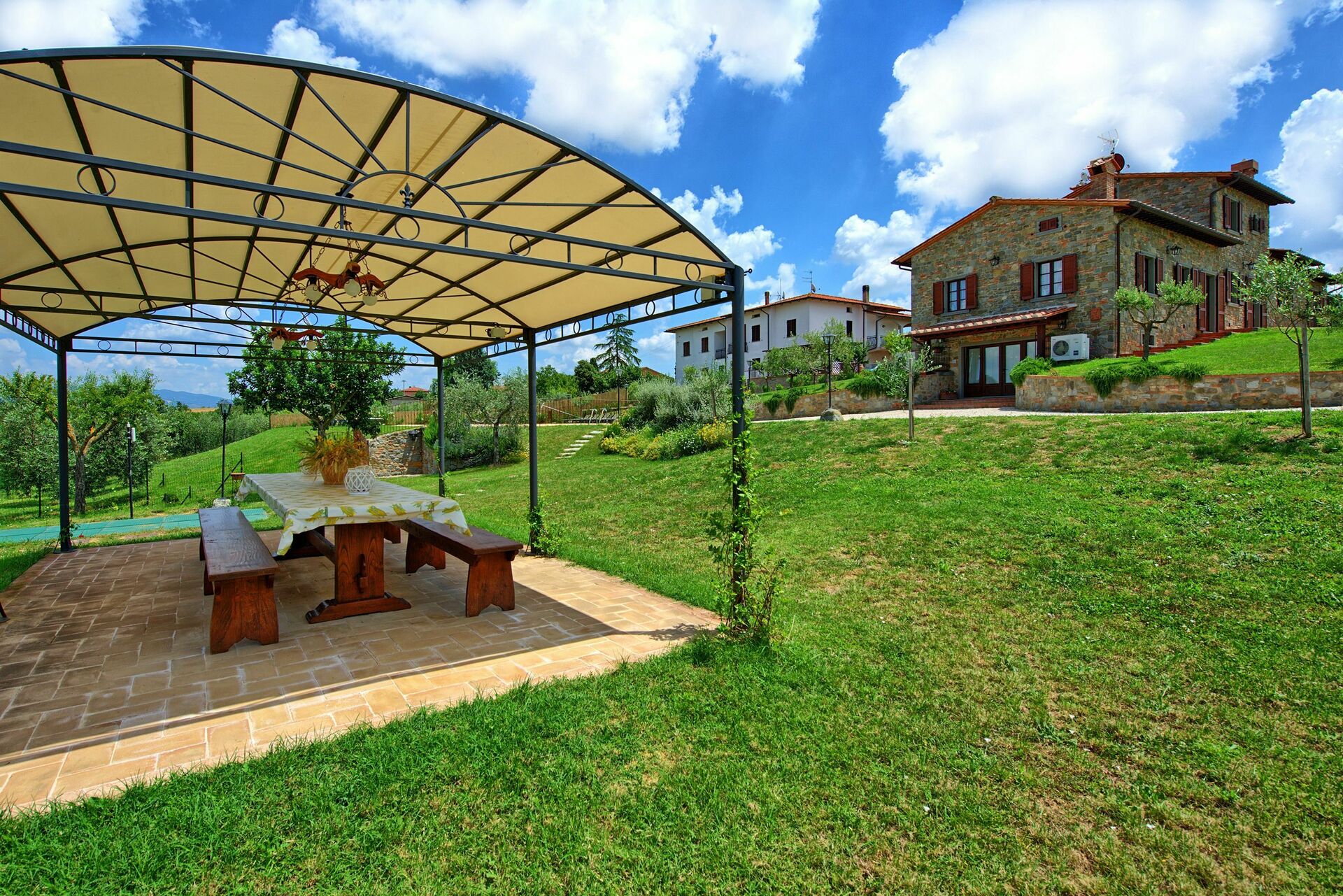 Casa molto bella, adatta a gruppi numerosi: consente di condividere momenti insieme (cucina molto grande, divani e tavolo enorme) mantenendo comunque la propria privacy, ogni due stanze vi è un bagno dedicato! Host molto ospitale e sempre disponibile abitando a pochi metri di distanza. Giardino enorme e ben tenuto in cui è possibile grigliare con un tavolo molto ampio disponibile lì accanto sotto una veranda. A 10 minuti da Cortona, consiglio vivamente!