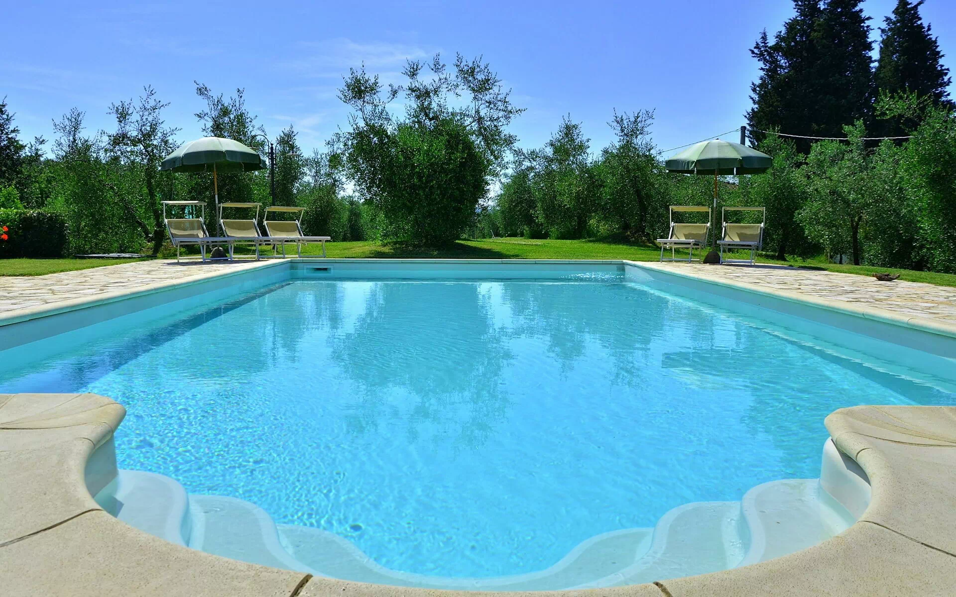 - oliveraies (20.000m2) avec piscine privée (10x5m – prof.: 1,50m – ouverte du 01/05 au 30/09)