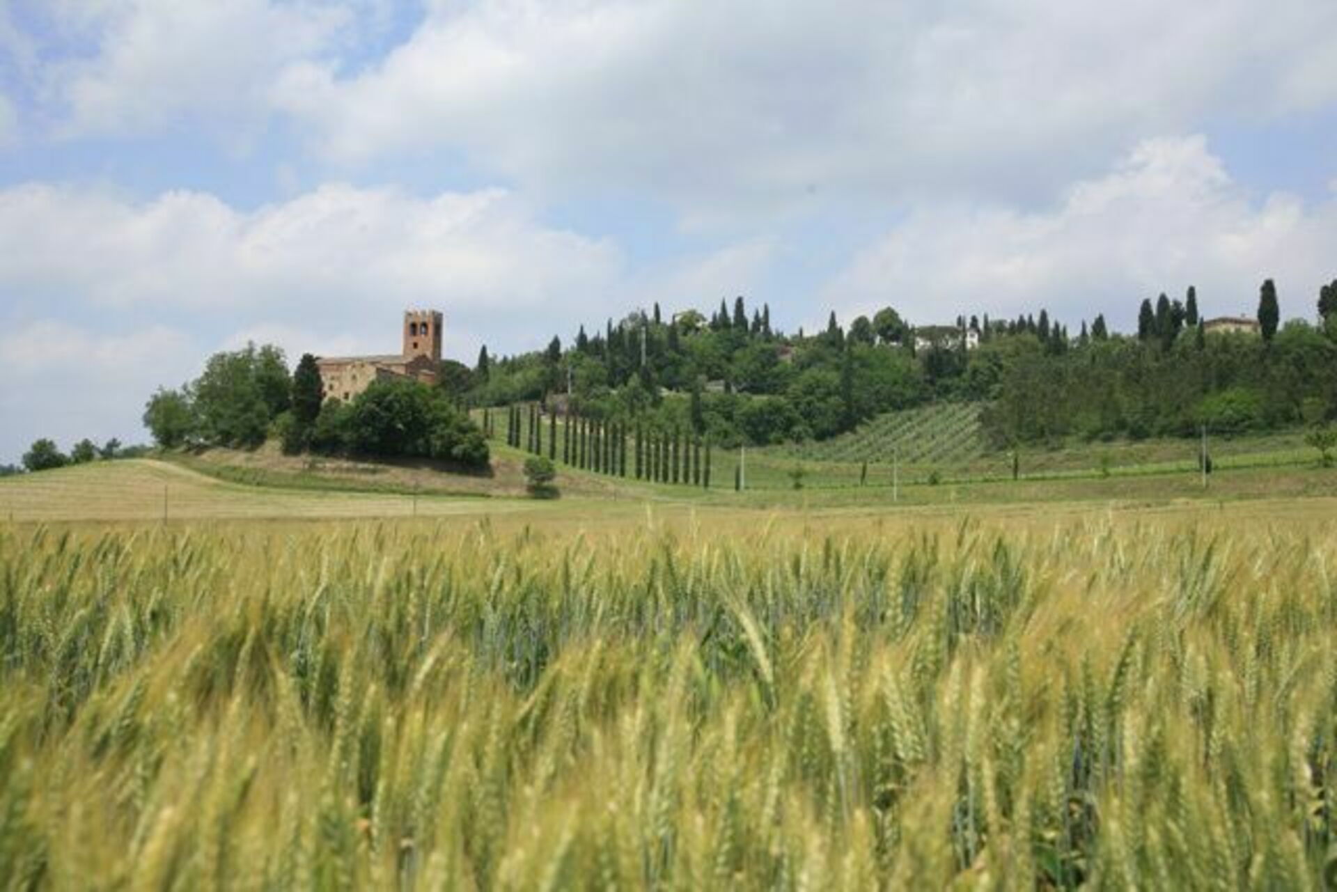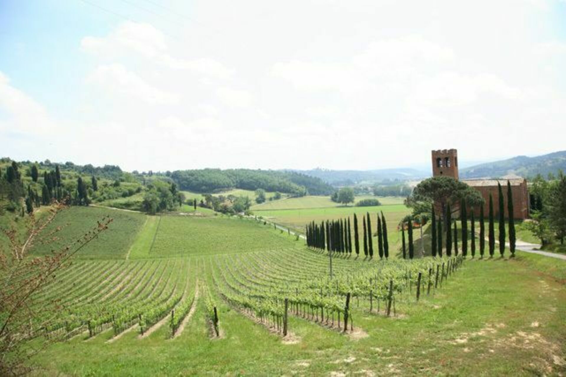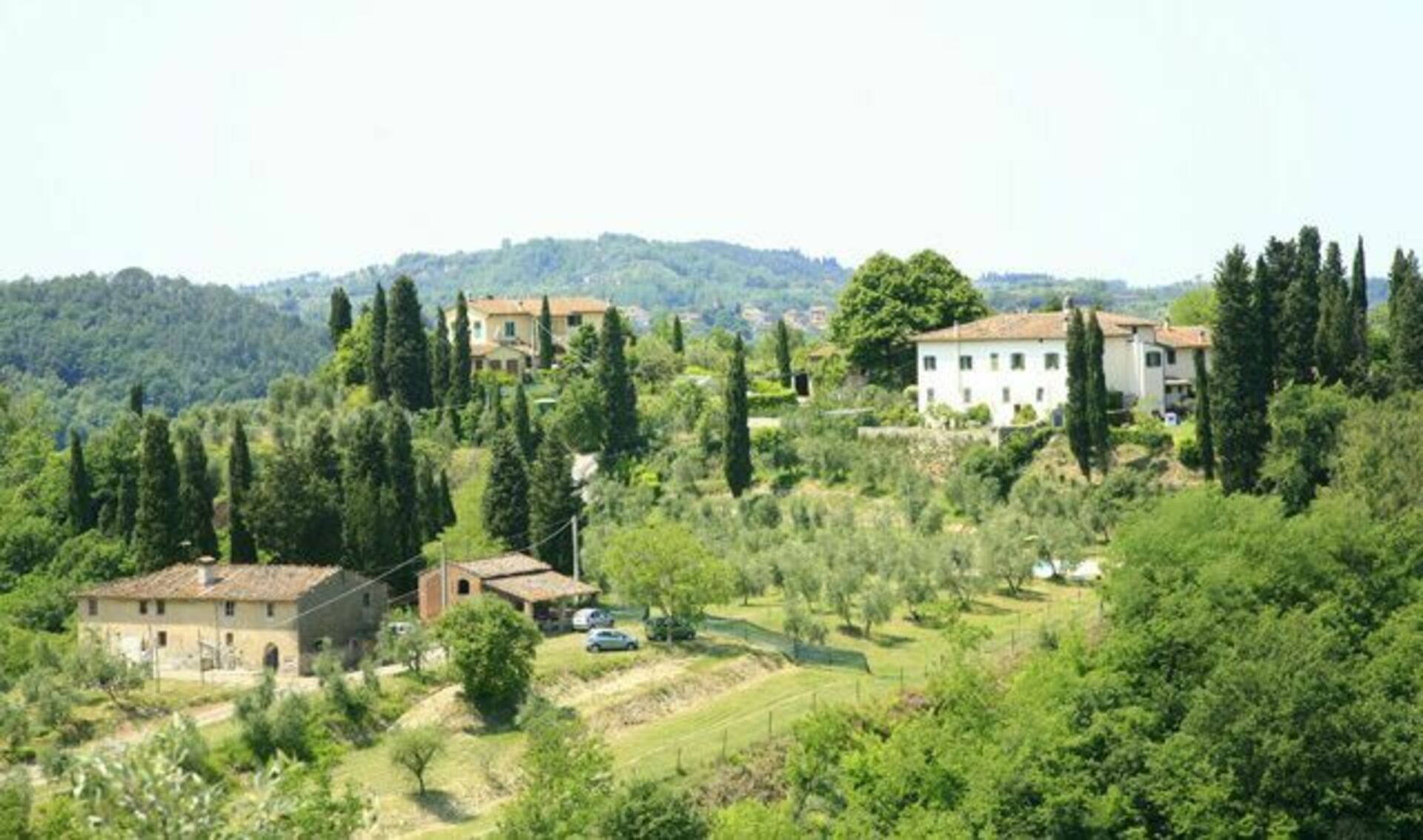 La propriété jouit d’une position dominante au sommet d’une colline, dans un paysage typiquement toscan et caractérisé par des étendues de bois, oliveraies et vignobles.