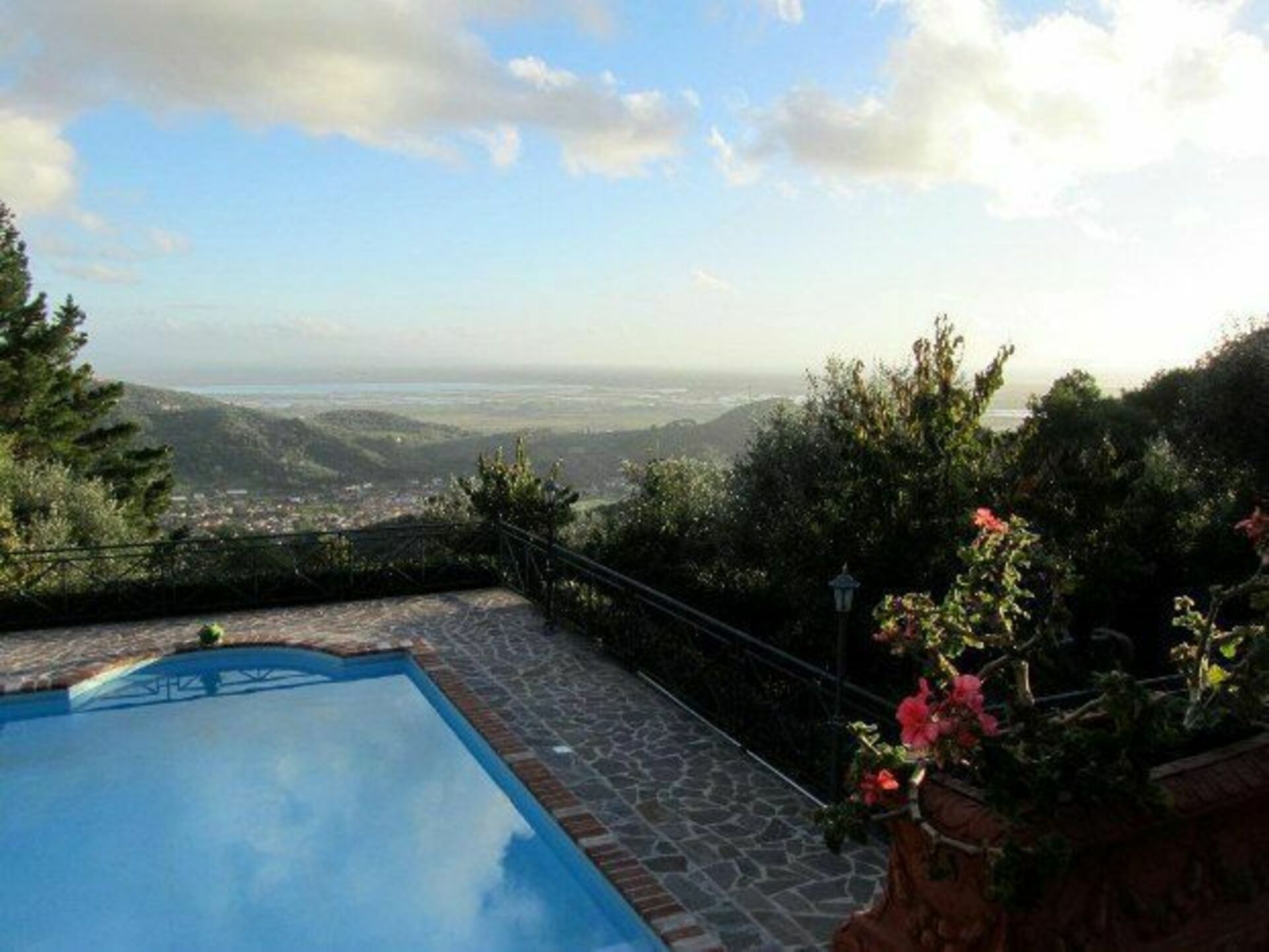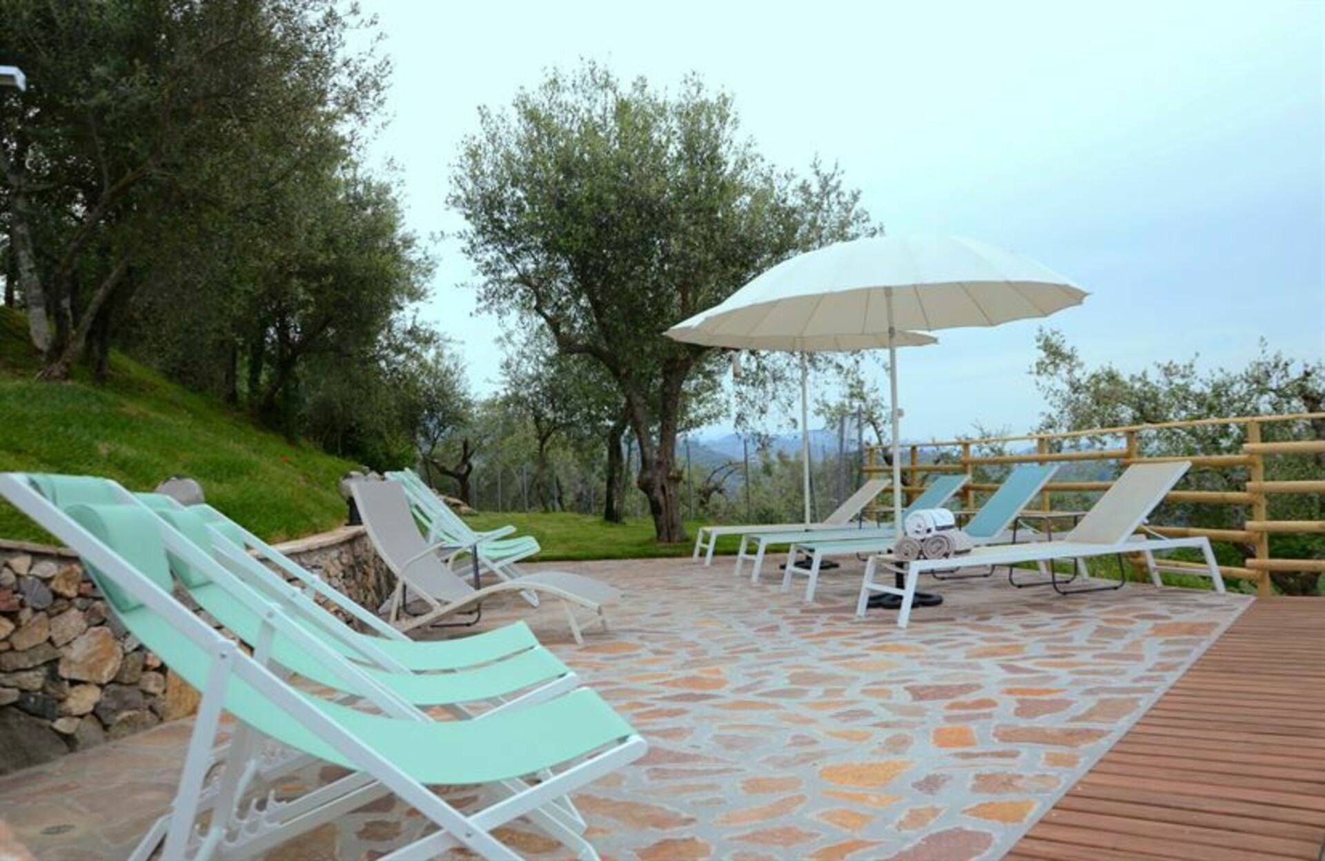 Tout autour, des oliviers bordés par une rivière. Vue magnifique sur la mer.
