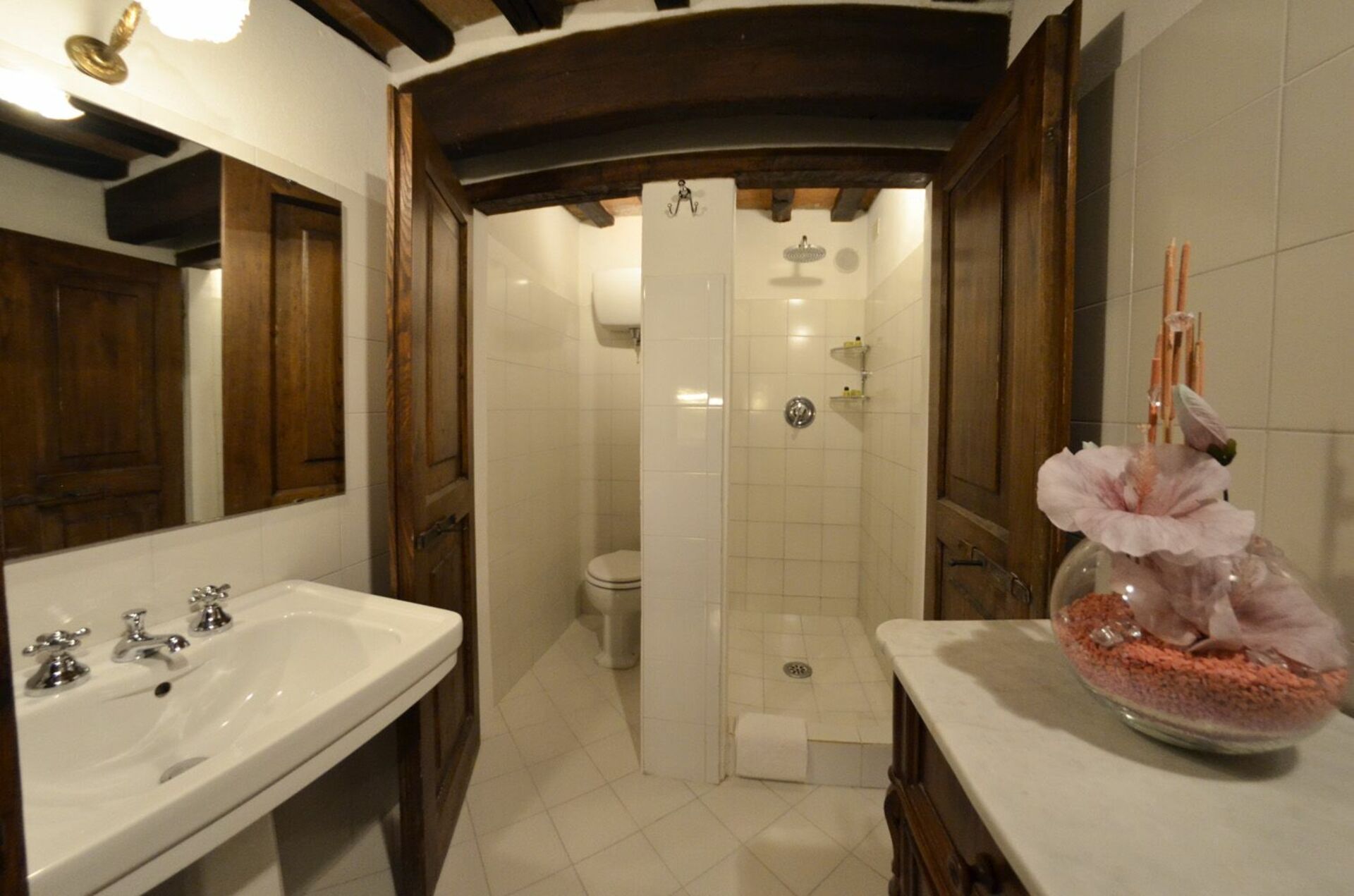 Rez-de-chaussée : séjour avec coin repas et kitchenette, chambre avec lit double et lit simple, 2 salles de bains avec douche.