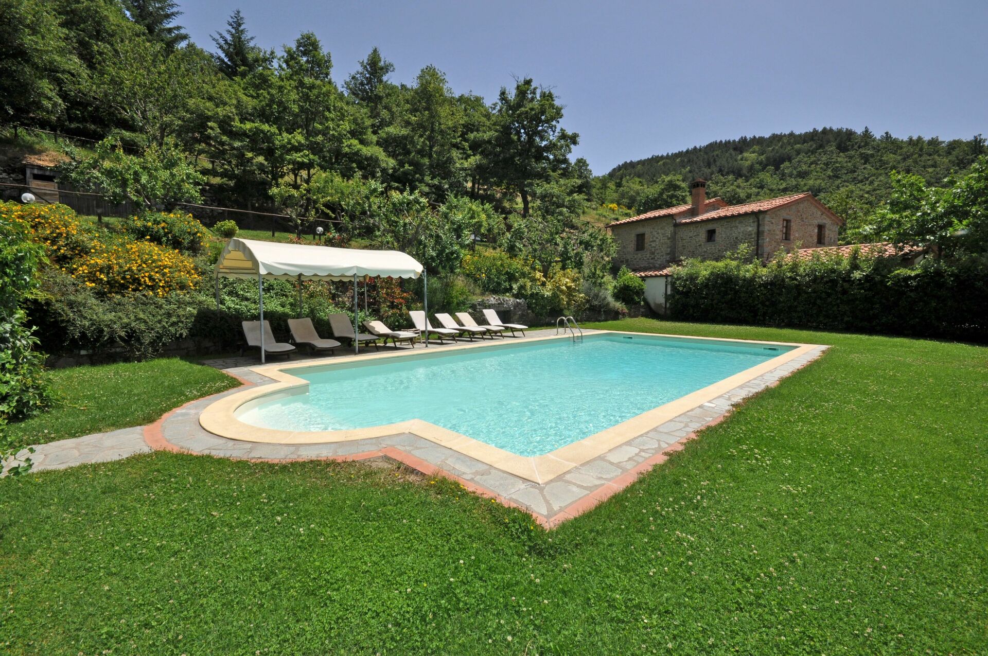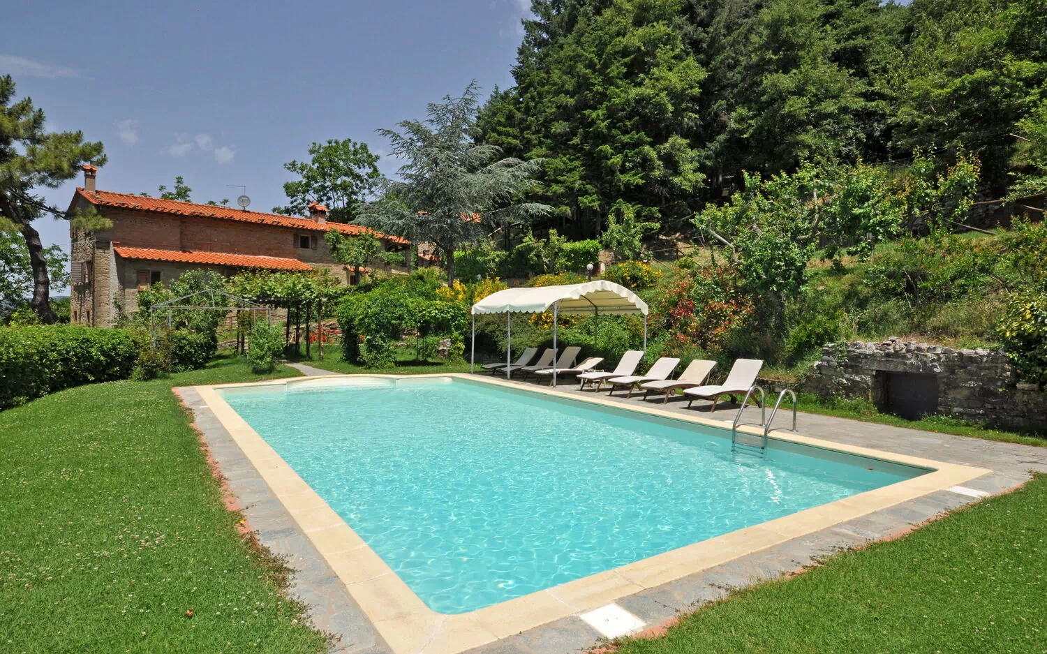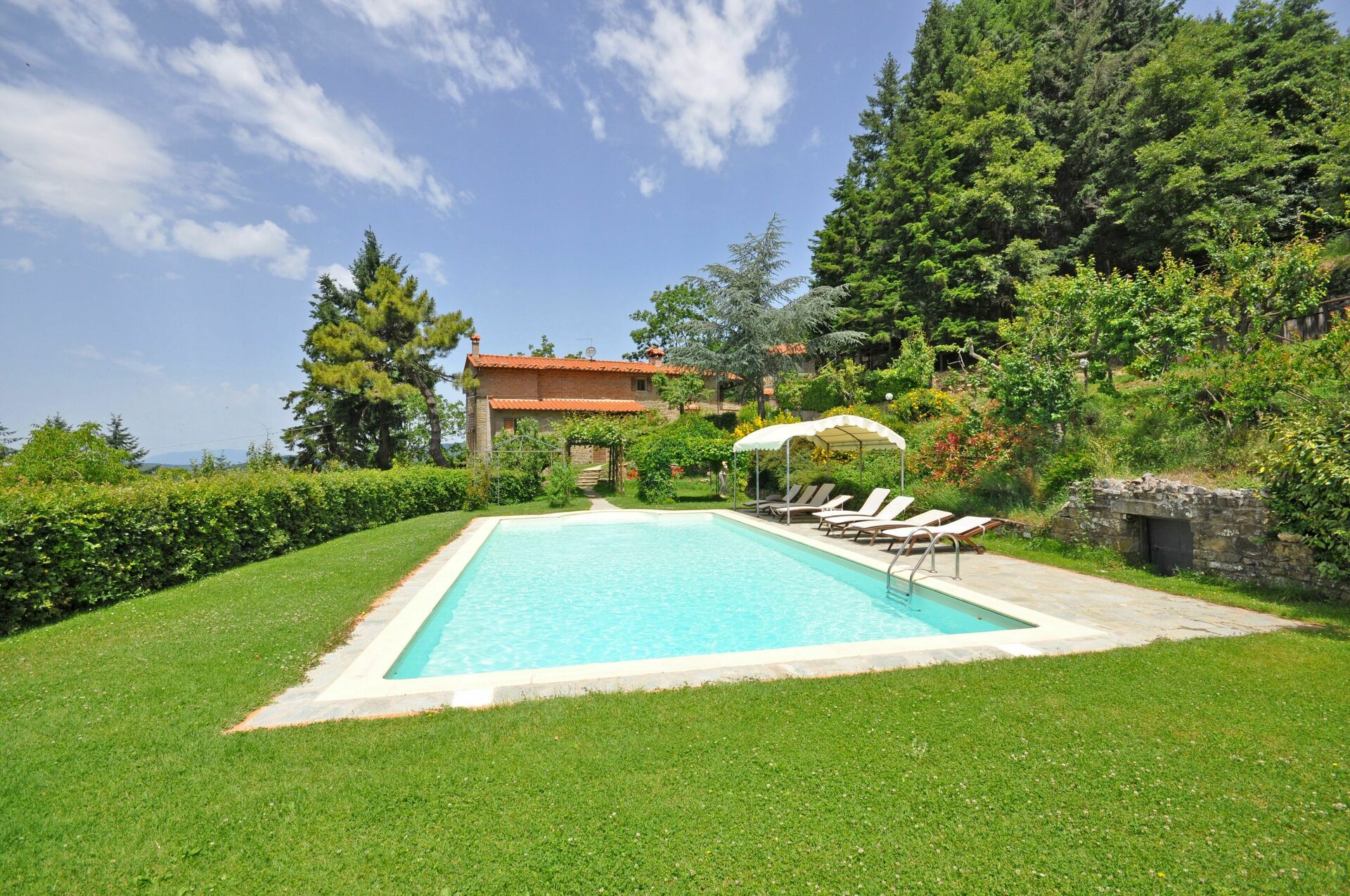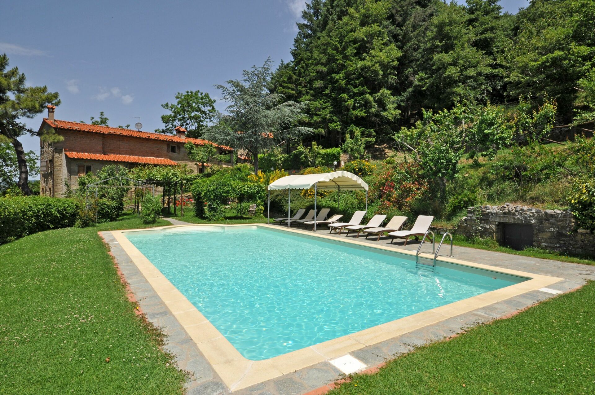 La maison qui date du XVIIIème siècle, a été récemment restructurée et transformée en une accueillante maison de campagne. Même si les caractéristiques de l’architecture d’origine ont été conservées, les intérieurs sont de style moderne. L’ameublement est très confortable. A l’extérieur jardin avec piscine privée et pavillon dans le bois à environ 20m.