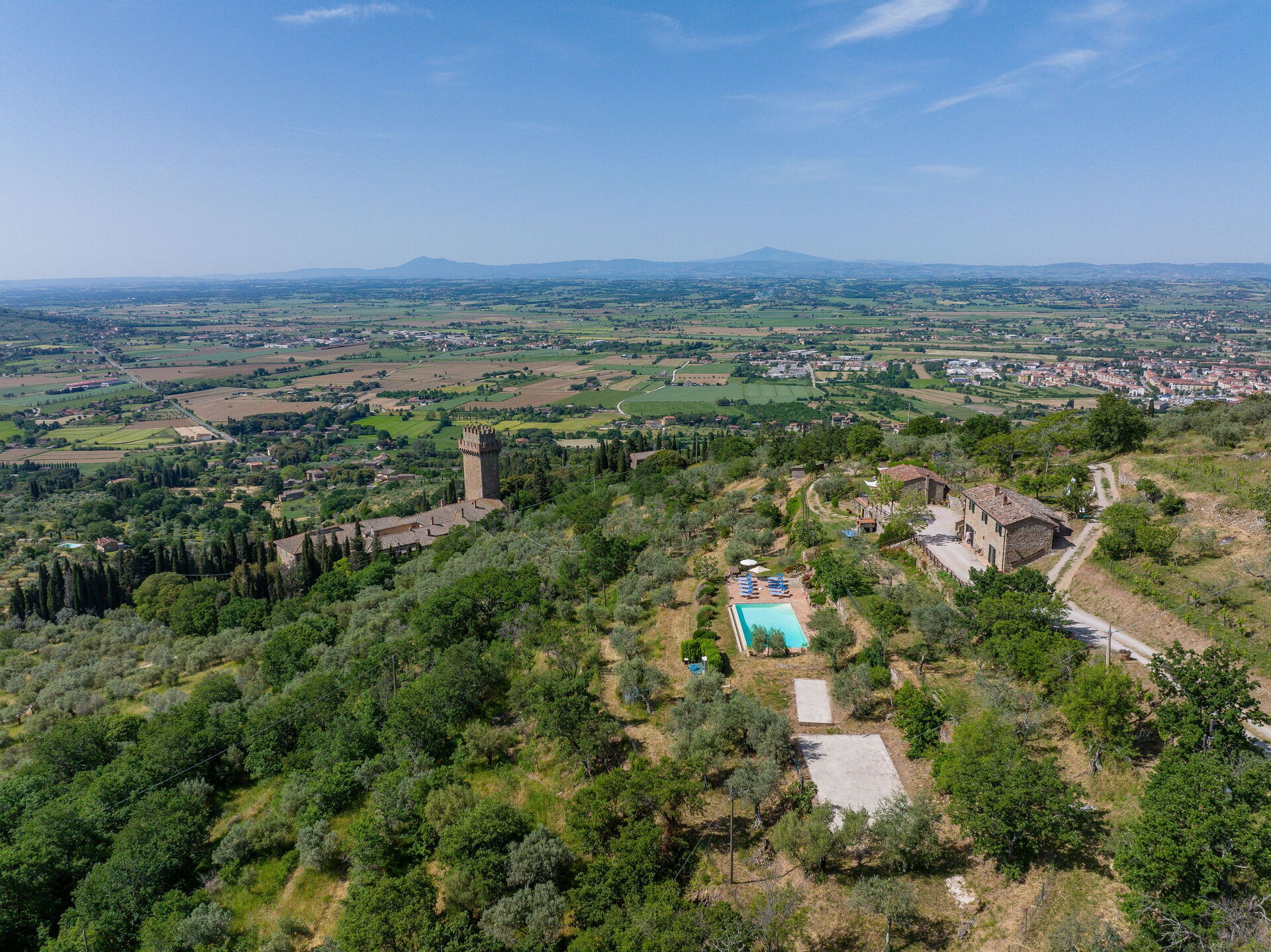 Distances: Cortona (commerces en tout genre) à seulement 1,5 km; Lac Trasimène à 22 km, Arezzo à 33 km, Pérouse à 50 km, Sienne à 78 km, Florence (aéroport) à 131 km.
