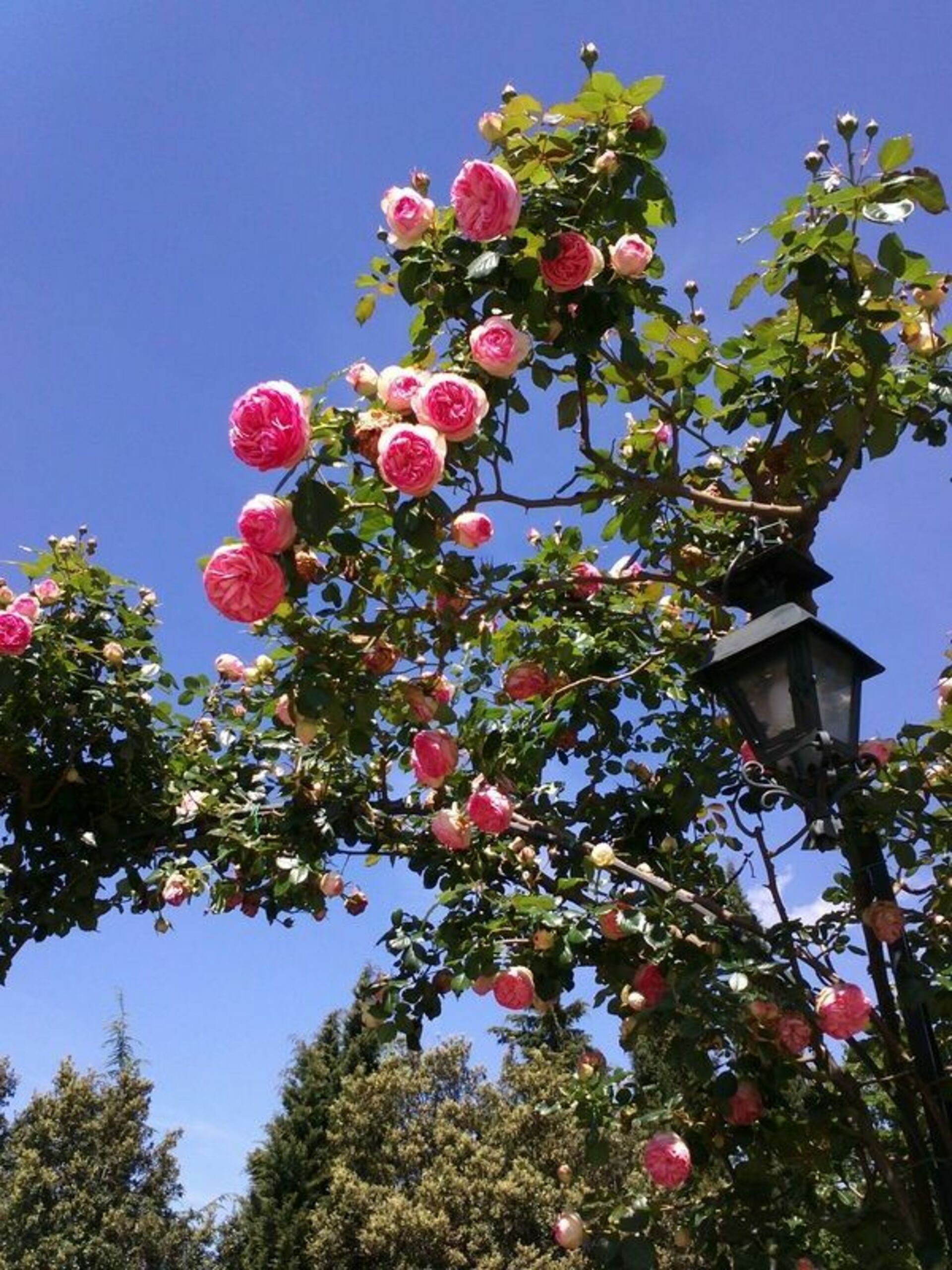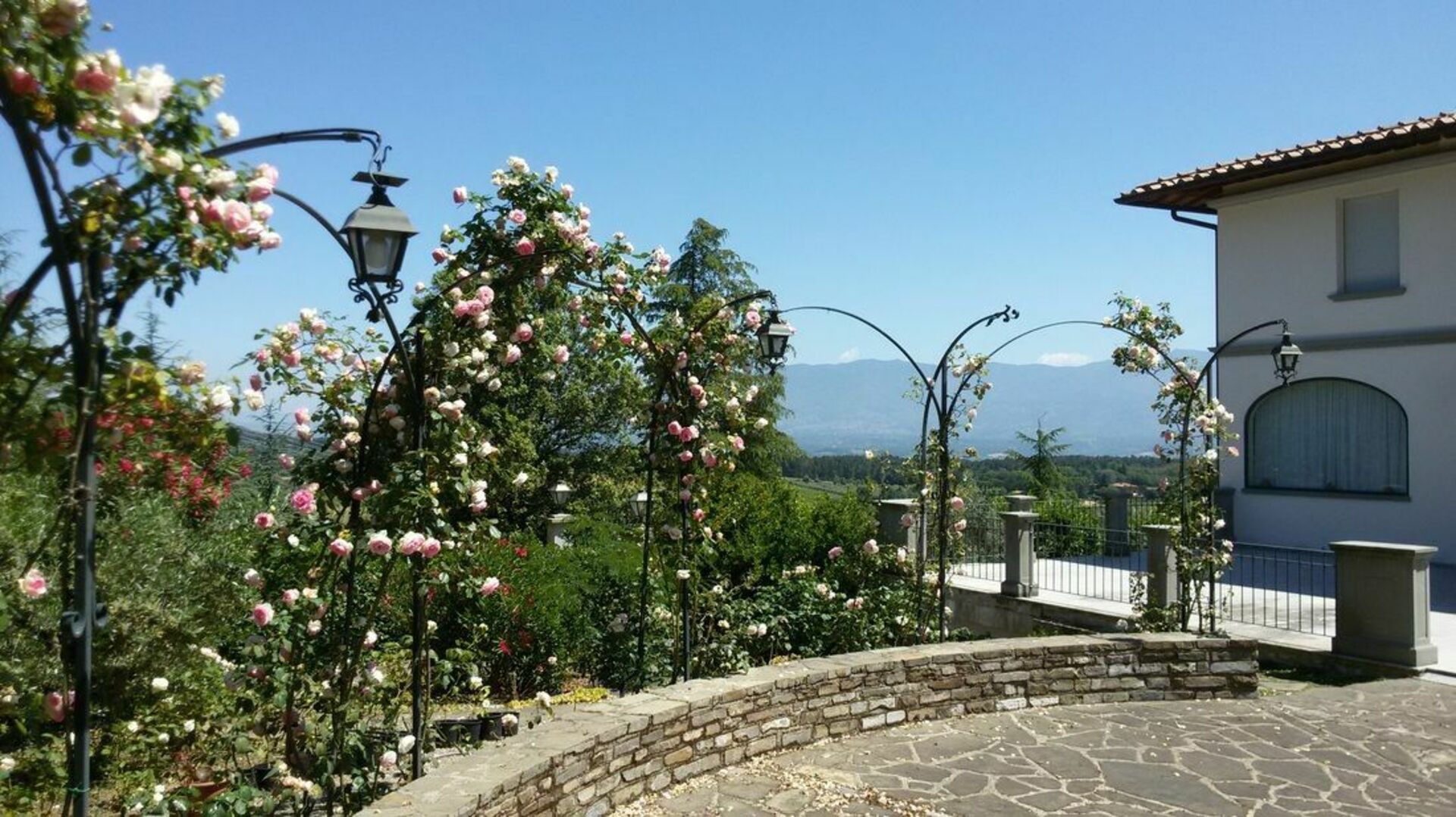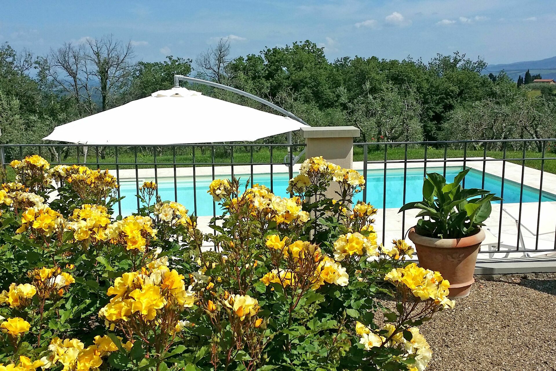 Un jardin riche en plantes et roses caractérise cette villa avec piscine privée en location dans le Chianti.