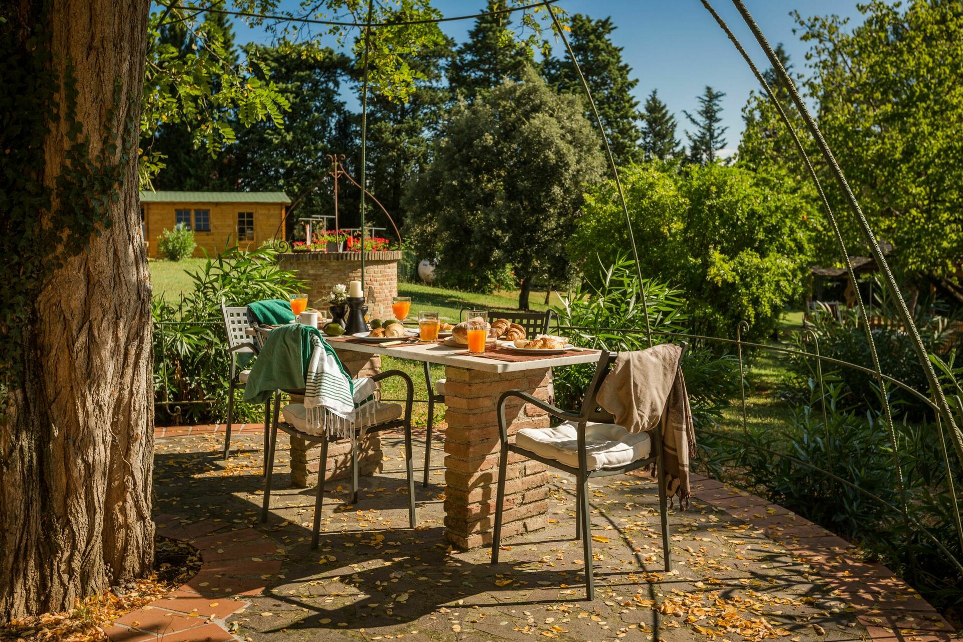 Pavillon privé équipé avec table et chaises.