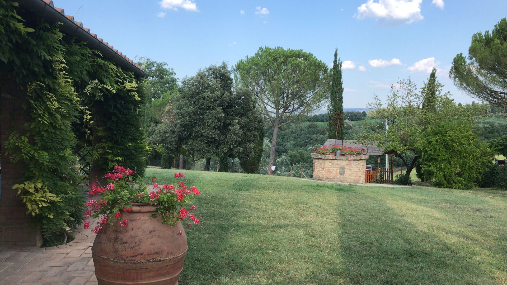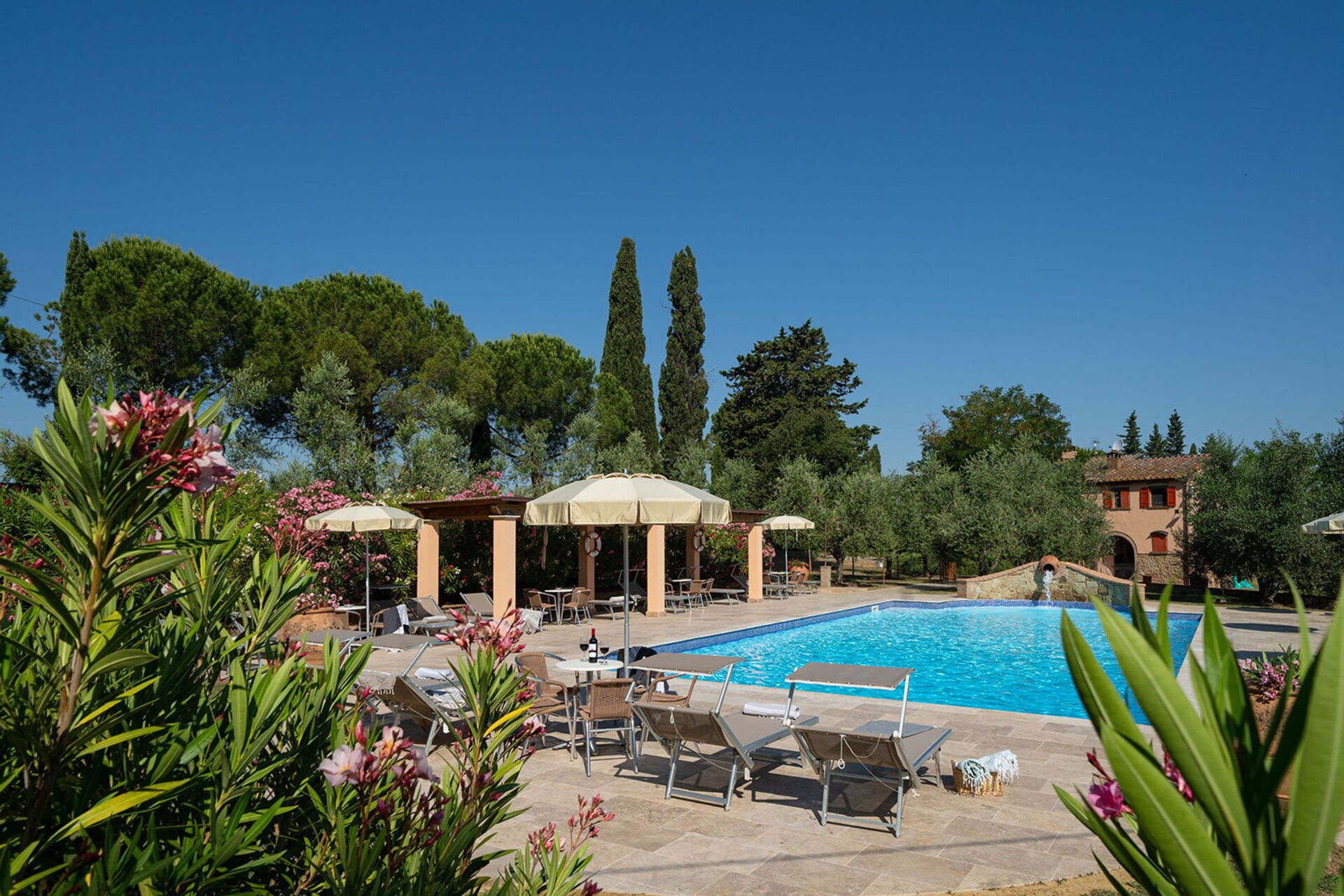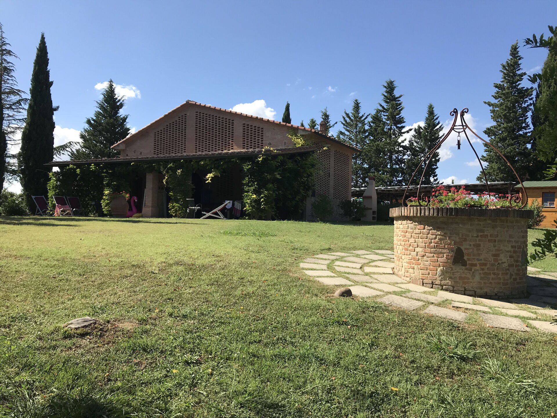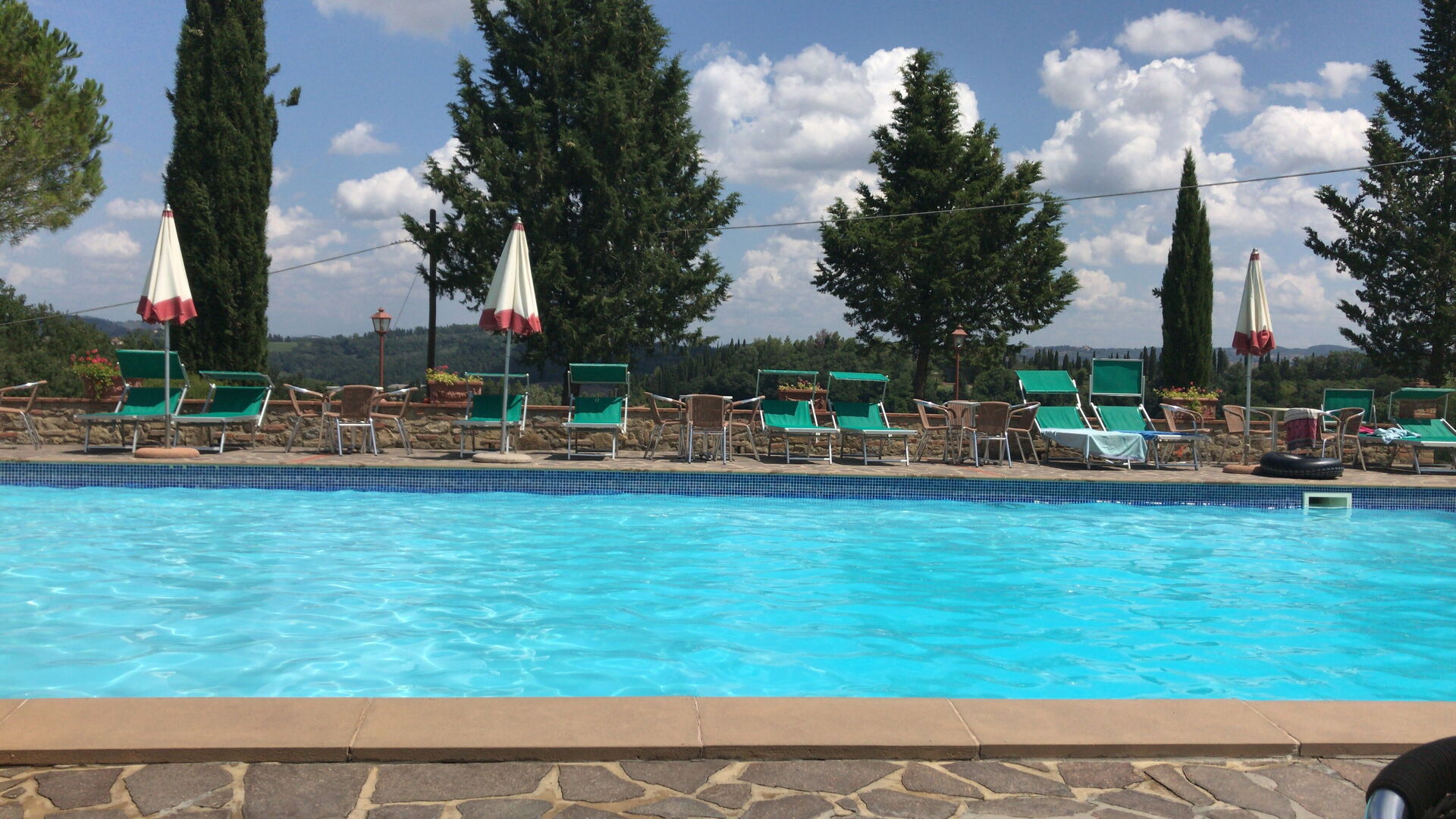 The holiday was excellent. We particularly asked for a wheelchair accessible apartment and our's was up to our requirements. Sadly the beds were too high for my husband to transfer onto but with the help of the manager we were able to use the bedsettee. Other than this the apartments, pool and surrounding area was absolutely wonderful. We had a superb meal at the restaurant down the lane and we enjoyed sightseeing in not only the nearby hilltop villages but also San Gimignarno, Pisa and Florence. One week really wasn't long enough and we all hope to visit our apartment at this lovely complex again but next time for longer! Our thanks to the management for our Italian idyll!