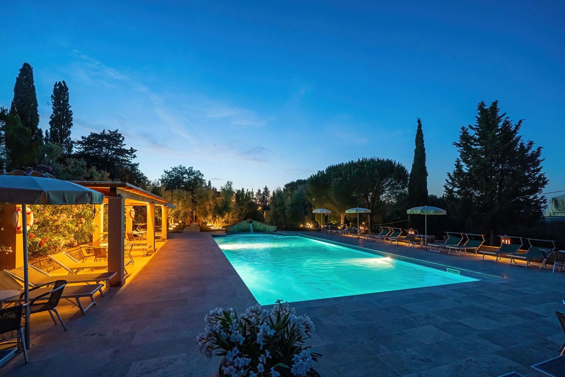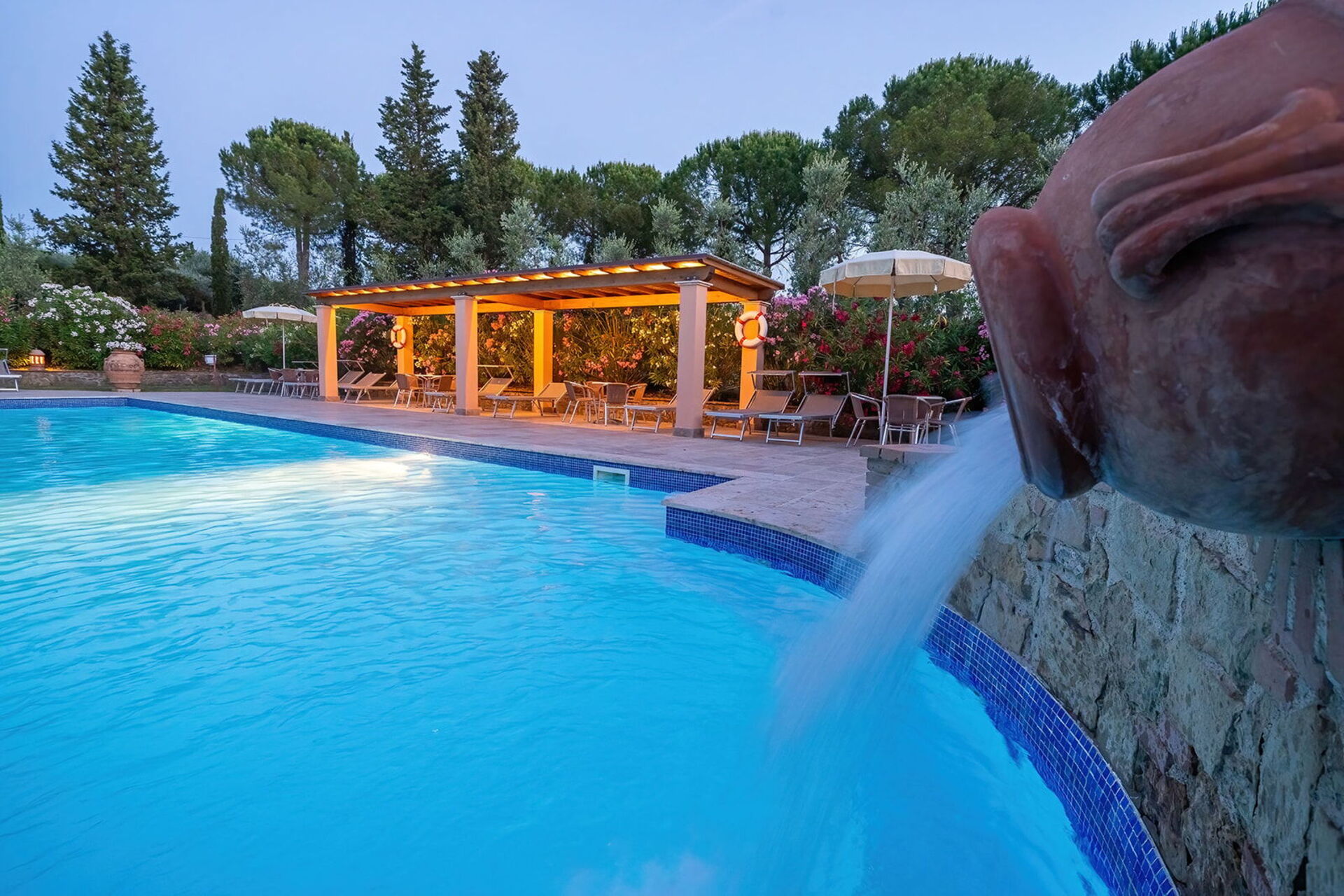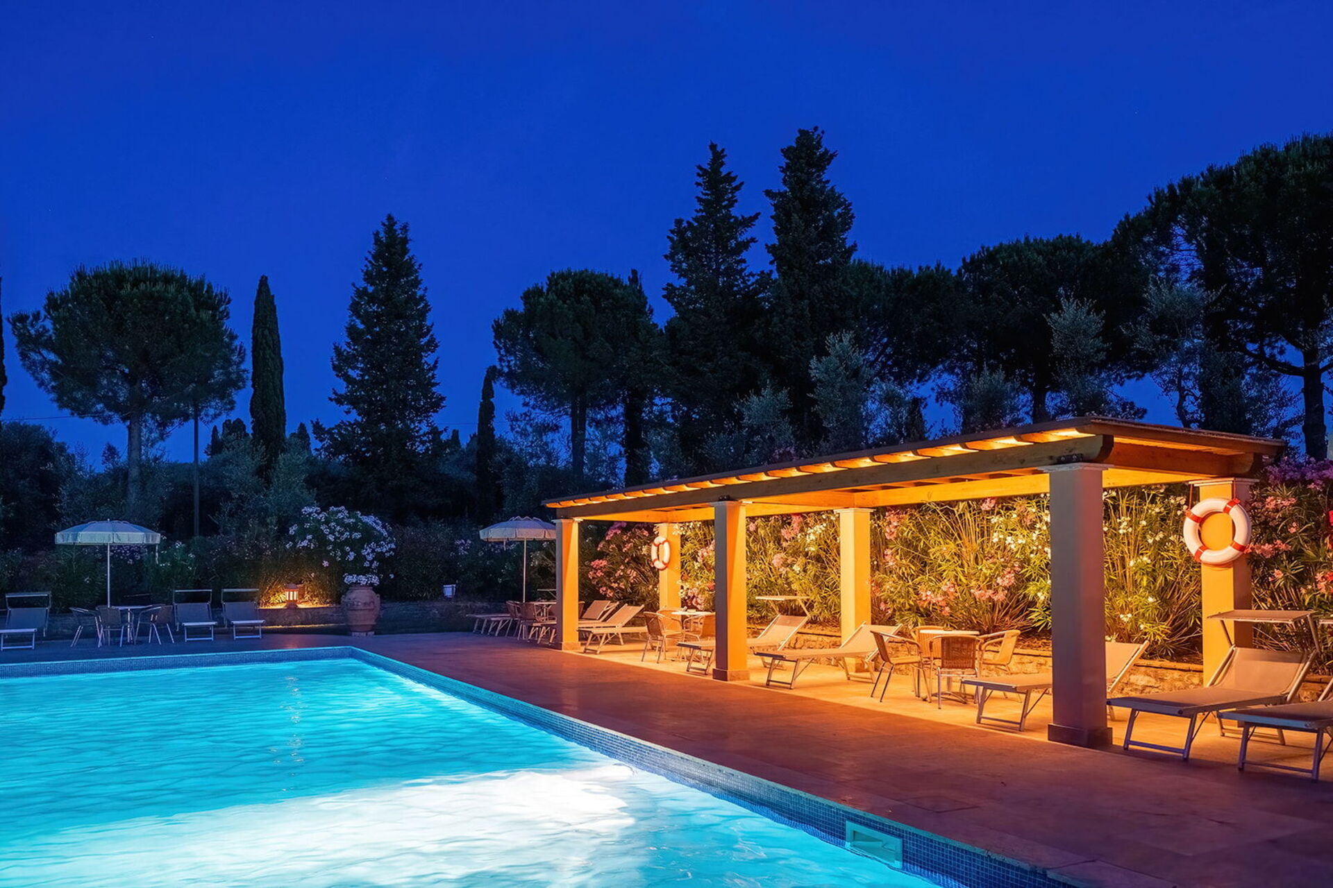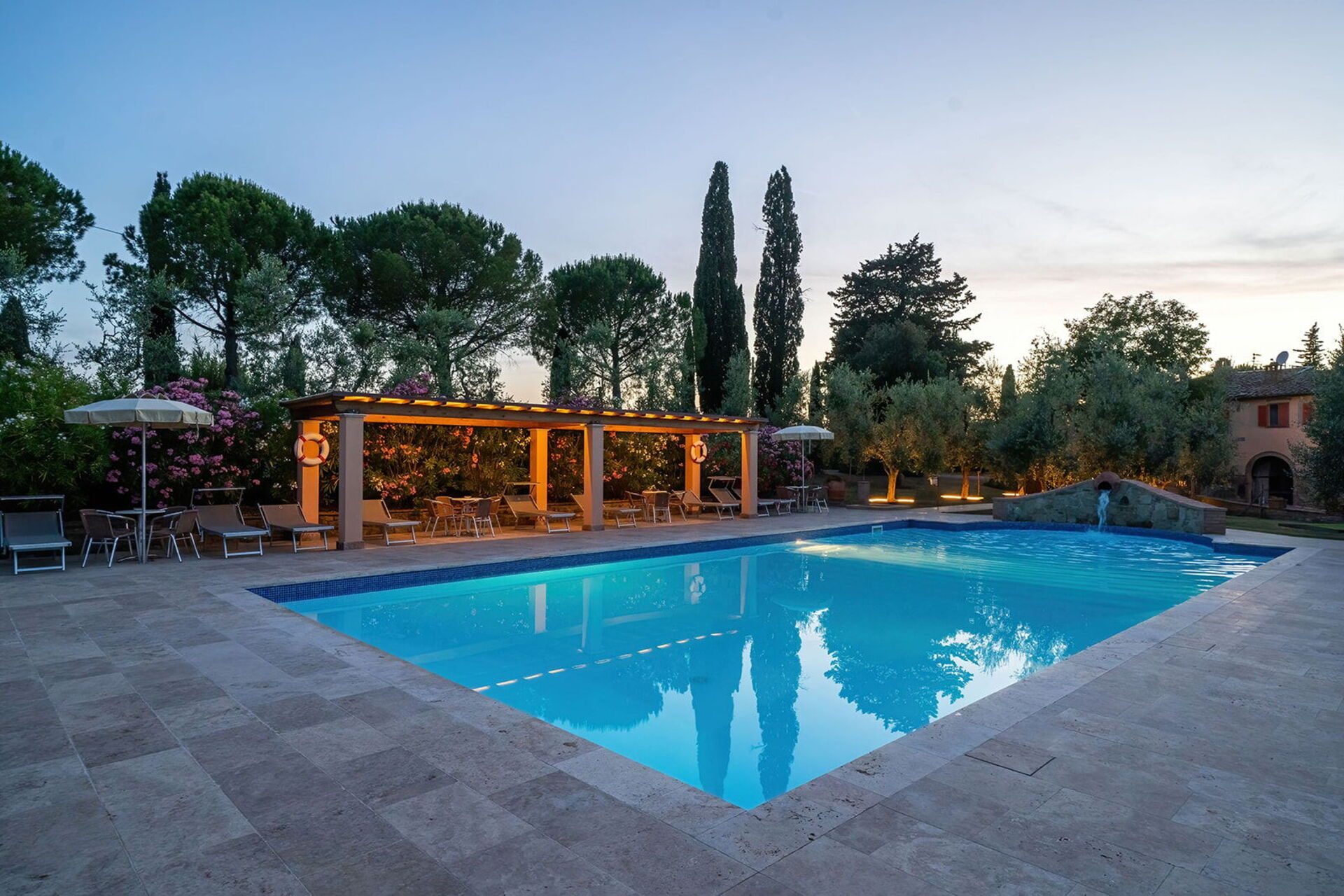 The holiday was excellent. We particularly asked for a wheelchair accessible apartment and our's was up to our requirements. Sadly the beds were too high for my husband to transfer onto but with the help of the manager we were able to use the bedsettee. Other than this the apartments, pool and surrounding area was absolutely wonderful. We had a superb meal at the restaurant down the lane and we enjoyed sightseeing in not only the nearby hilltop villages but also San Gimignarno, Pisa and Florence. One week really wasn't long enough and we all hope to visit our apartment at this lovely complex again but next time for longer! Our thanks to the management for our Italian idyll!