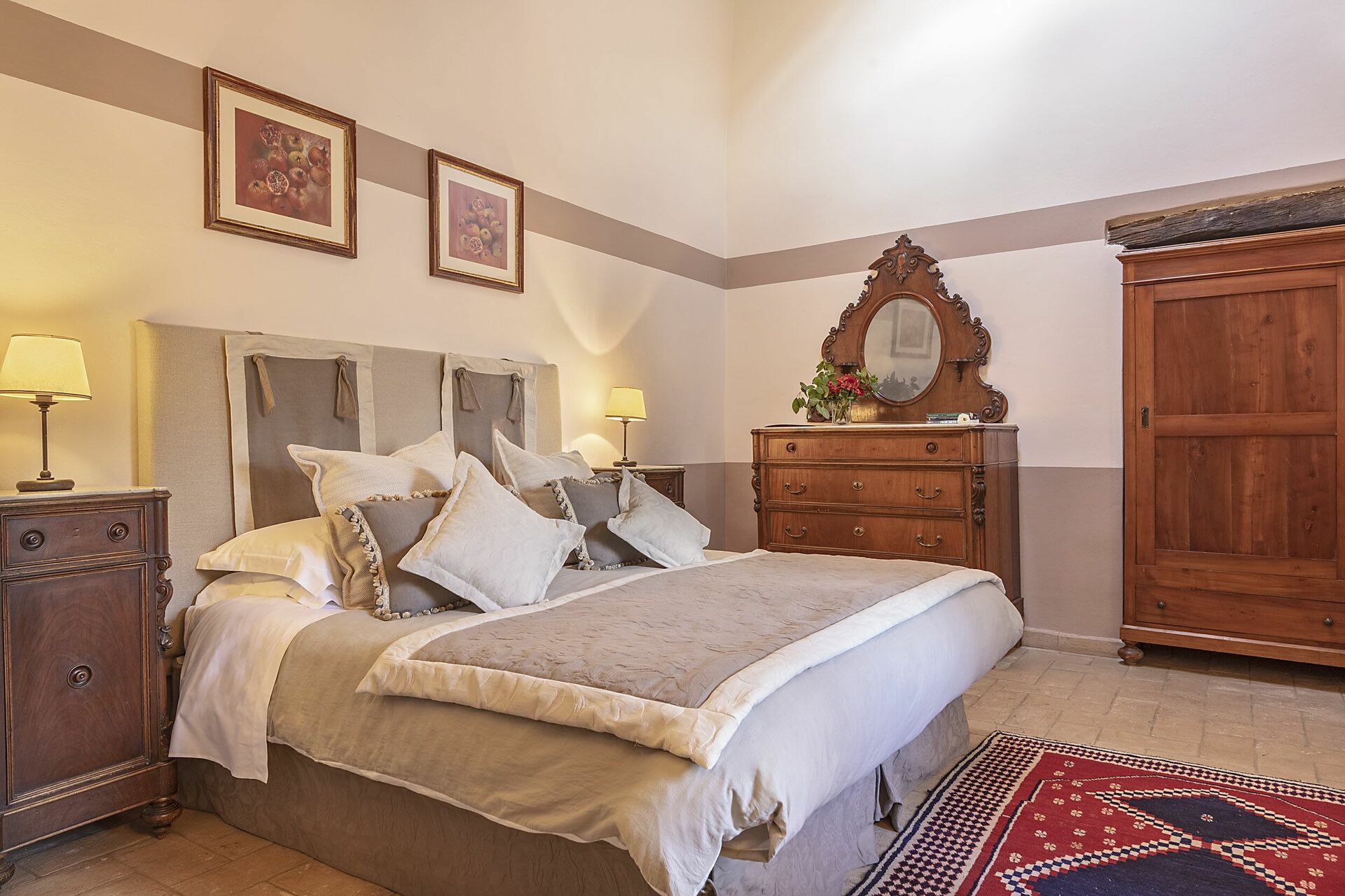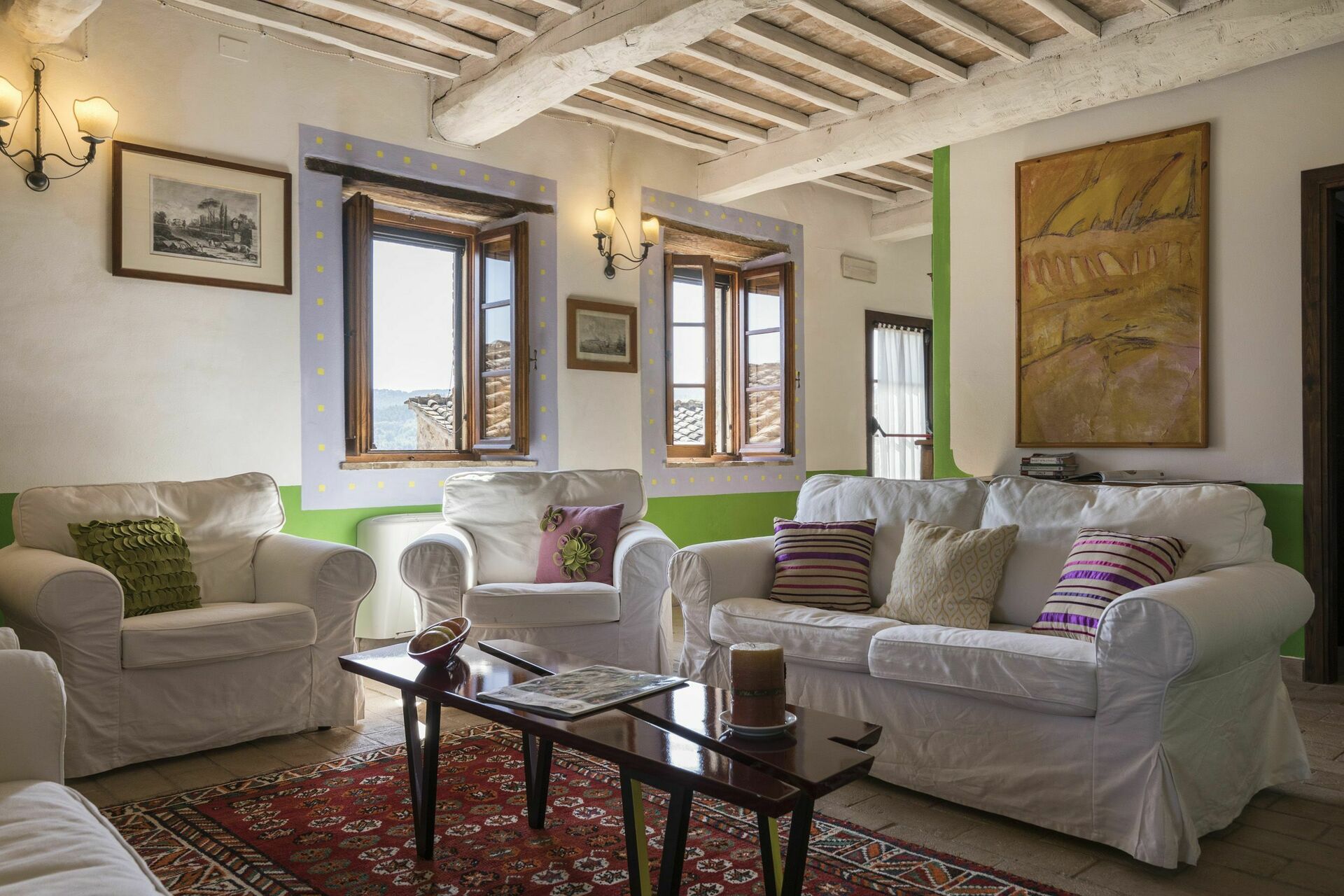 La villa a été restructurée avec goût et soin et transformée en une splendide villa de campagne pouvant héberger jusqu’à 27 personnes. Les intérieurs sont très confortables avec quelques meubles d’époque.