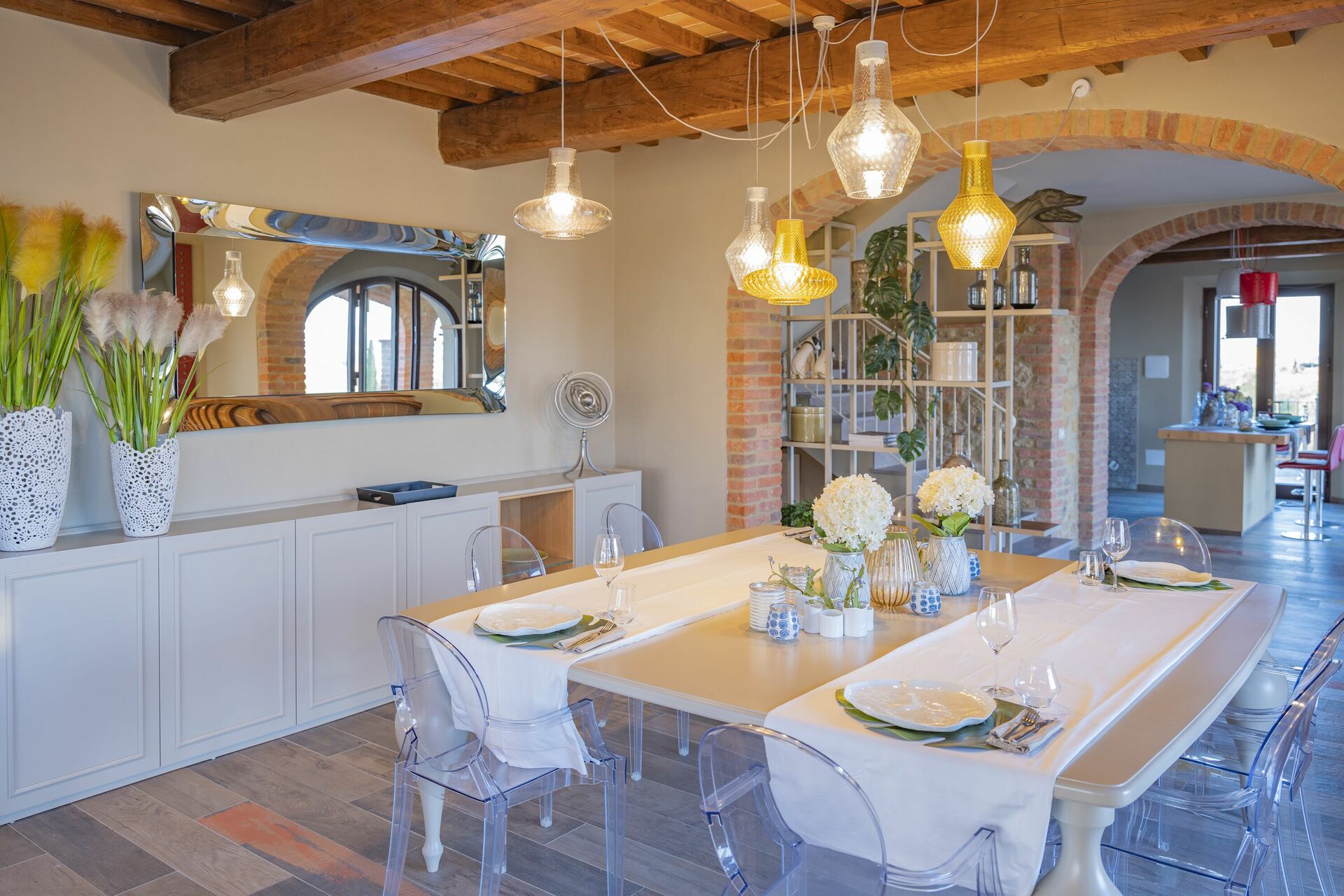 A l'intérieur, la villa a un ameublement exclusif, moderne et raffiné ; à l'extérieur il y a des espaces pour s'amuser et se divertir, comme la grande piscine avec solarium, une belle zone de barbecue et un four à bois, un brasero pour le feu et de grands espaces verts.