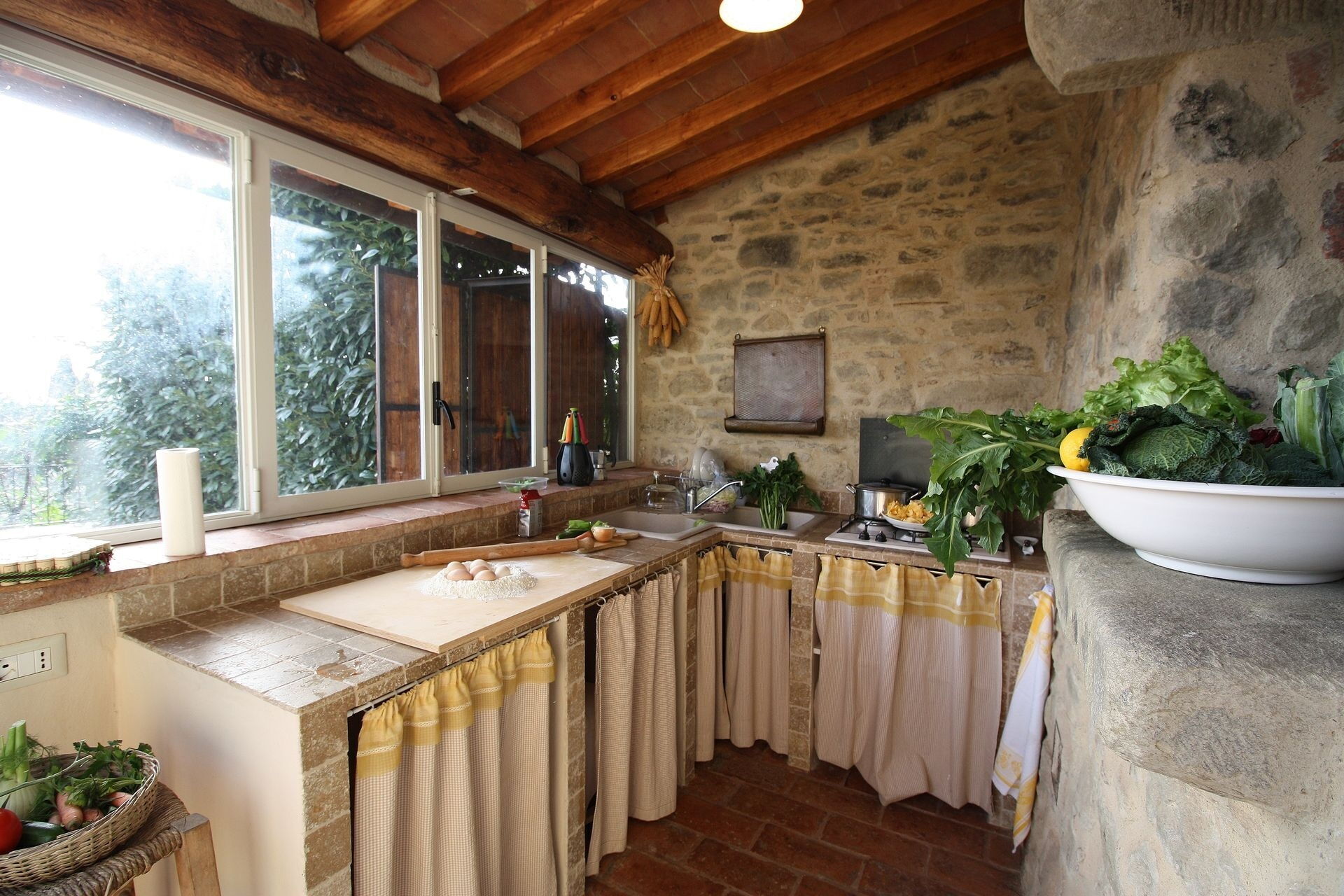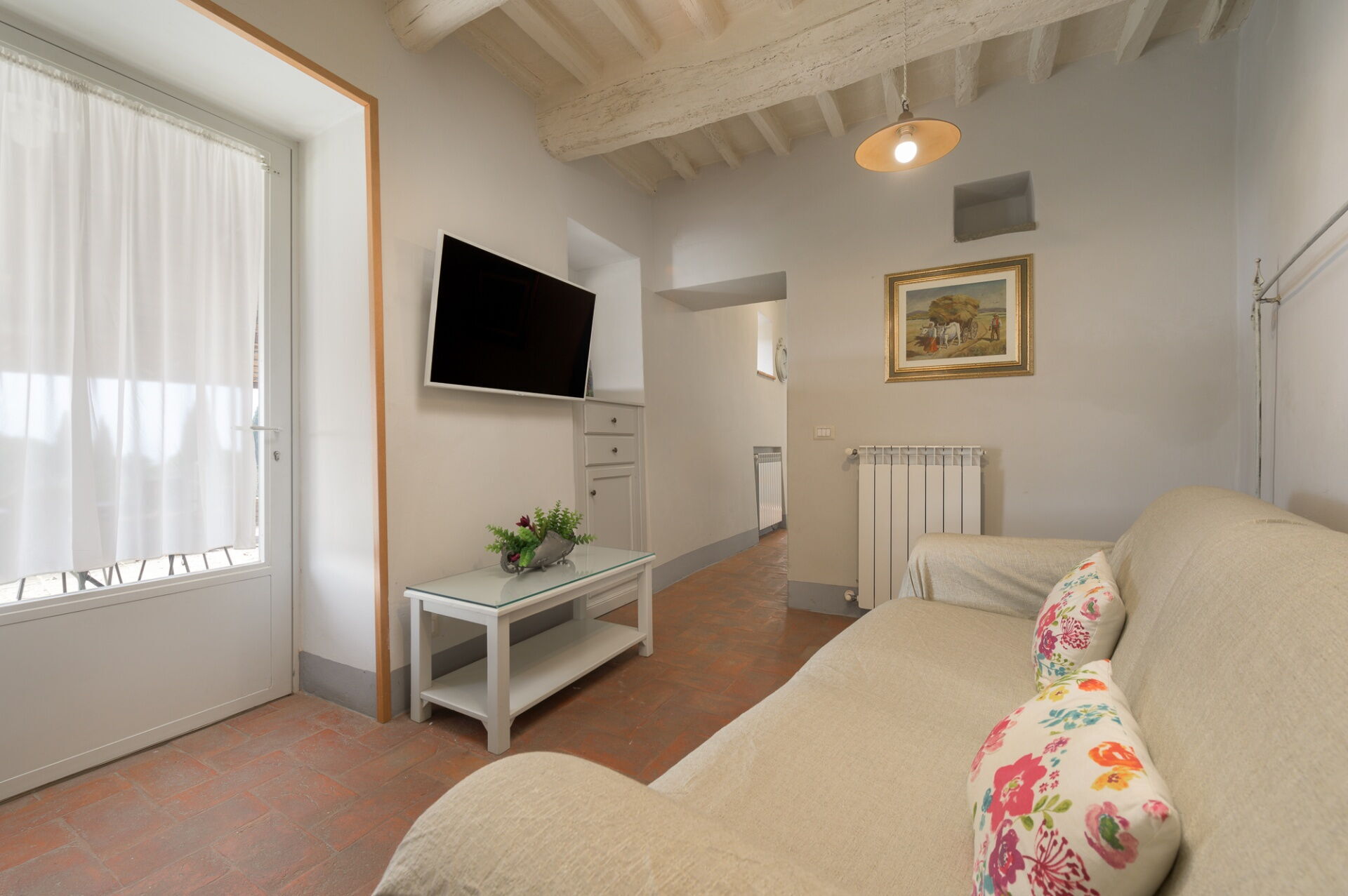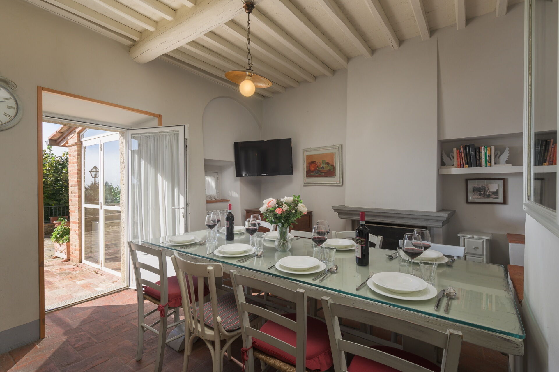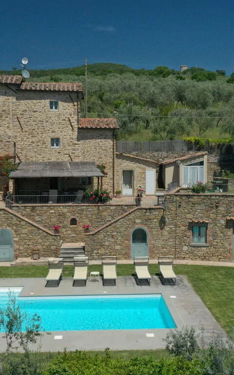 À l’extérieur la villa dispose d’un grand jardin bien entretenu et d’une splendide piscine privée équipée de transats: c’est l’endroit idéal pour se détendre au soleil ou se rafraîchir pendant les chaudes journées estivales tout en admirant le magnifique paysage toscan.