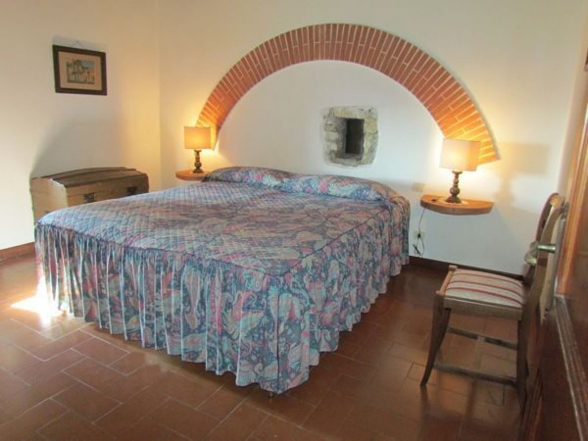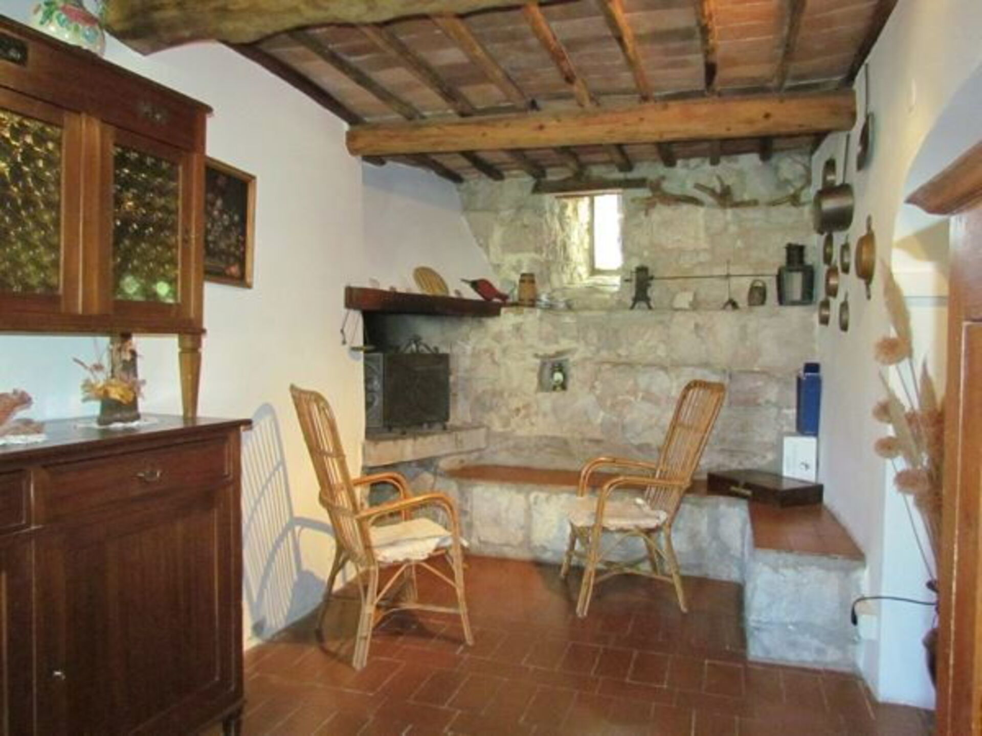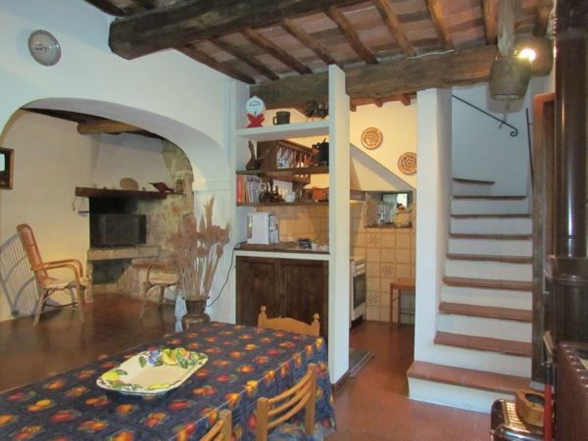 This former tower part of a characteristic fort is situated on the top of a Chianti hill with fantastic views of the vineyards. Separate entrance from the private garden with a small cool cypress wood. The communal fort courtyard (lawn) can be accessed from the kitchen and living room.
