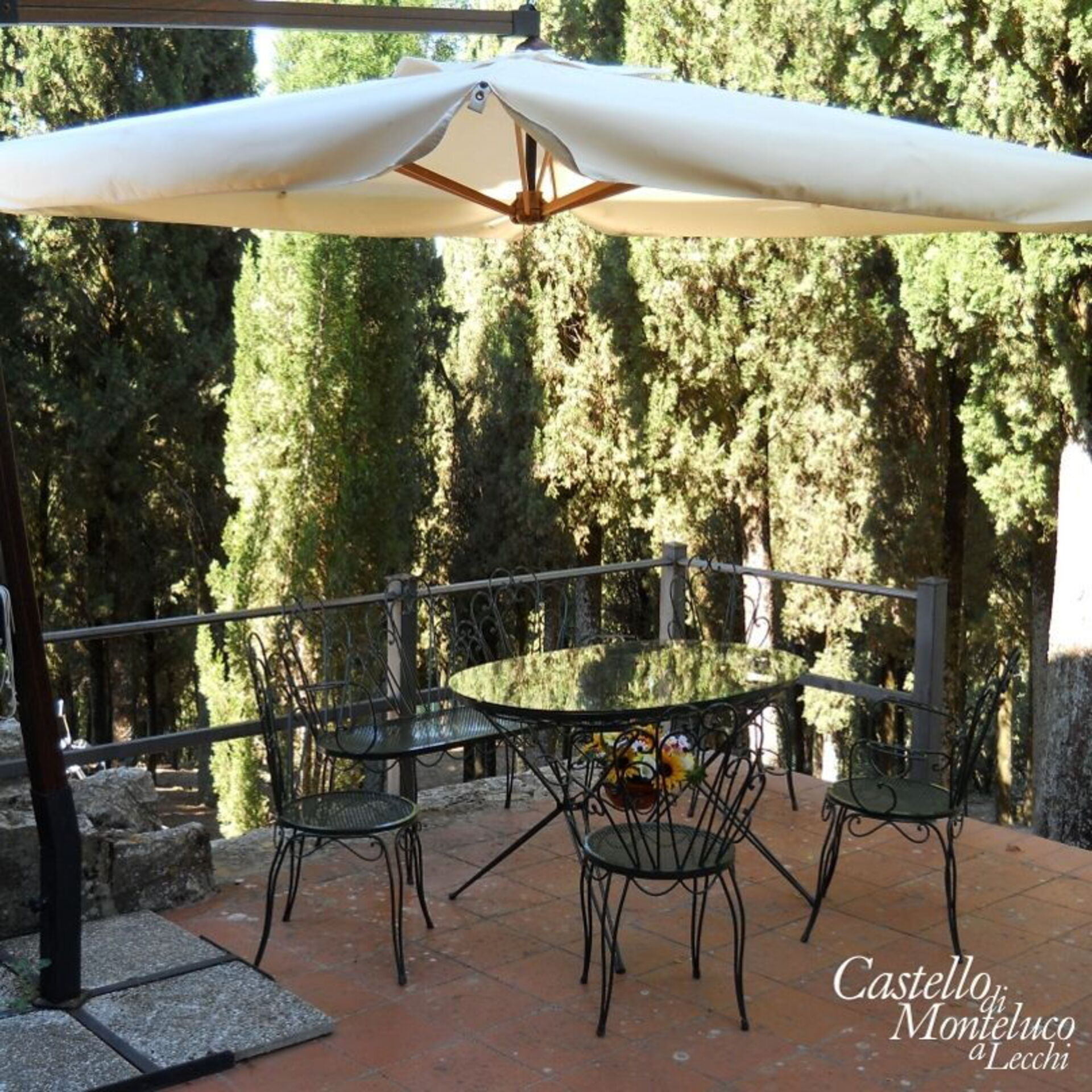 The private swimming-pool (5mt x 10mt, depth from 1.20 to 2.00 mt) with a shady gazebo just below the castle walls watch the hills of Chianti and Siena from a unique location, exposed the sun throughout the day and is private only for guests. Open from 01 June to 28 September.