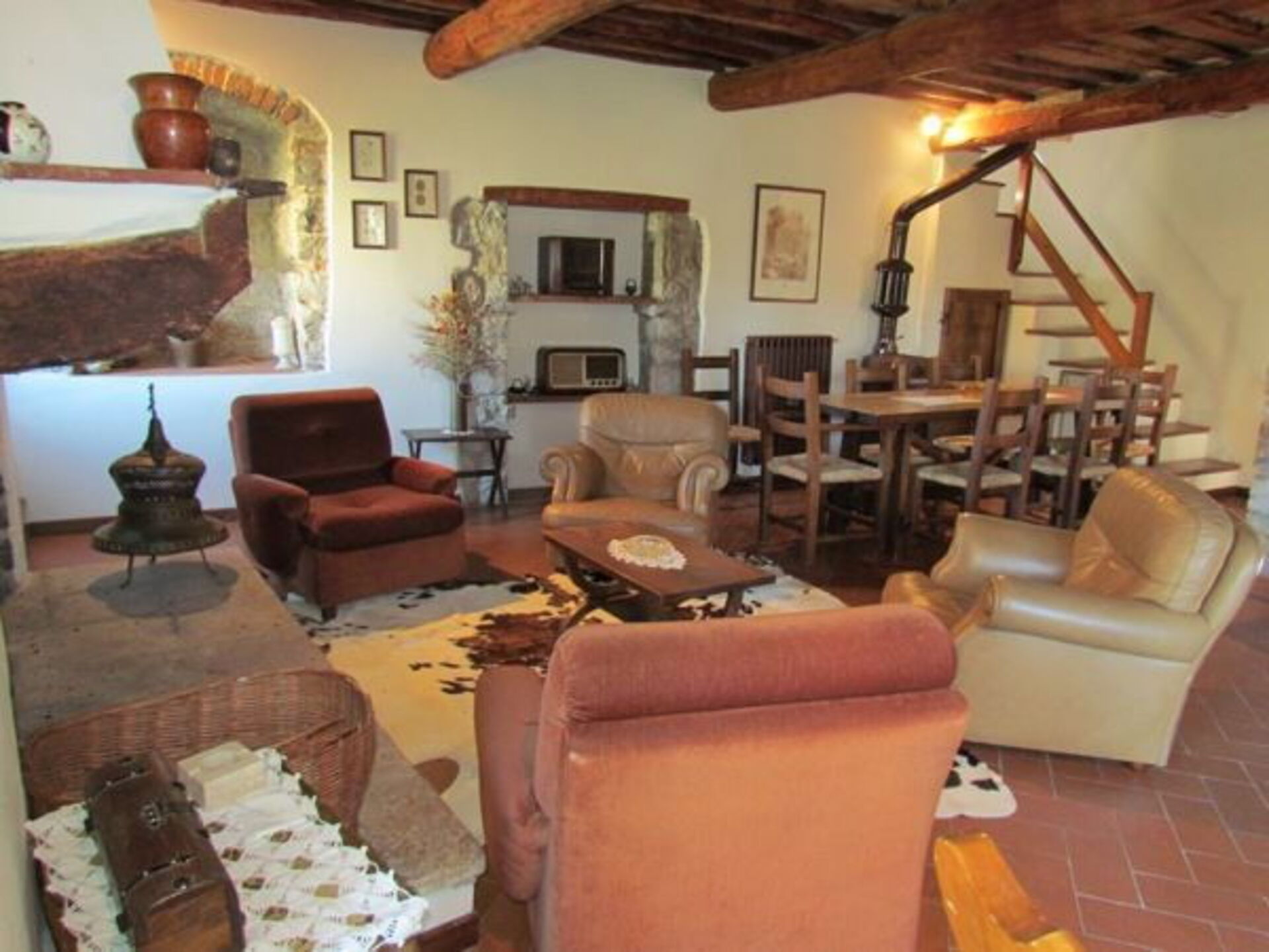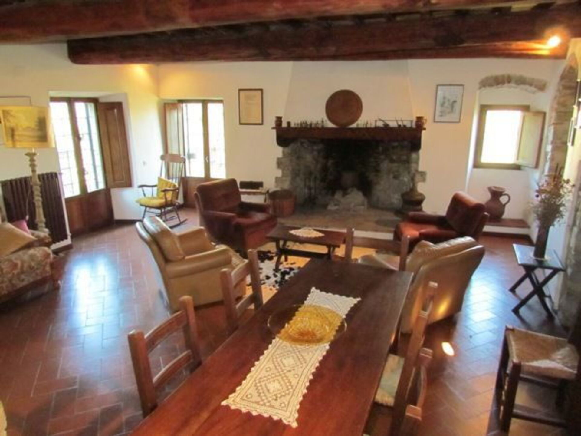 Open spacious and bright living room. Big central old fireplace. TV/DVD.