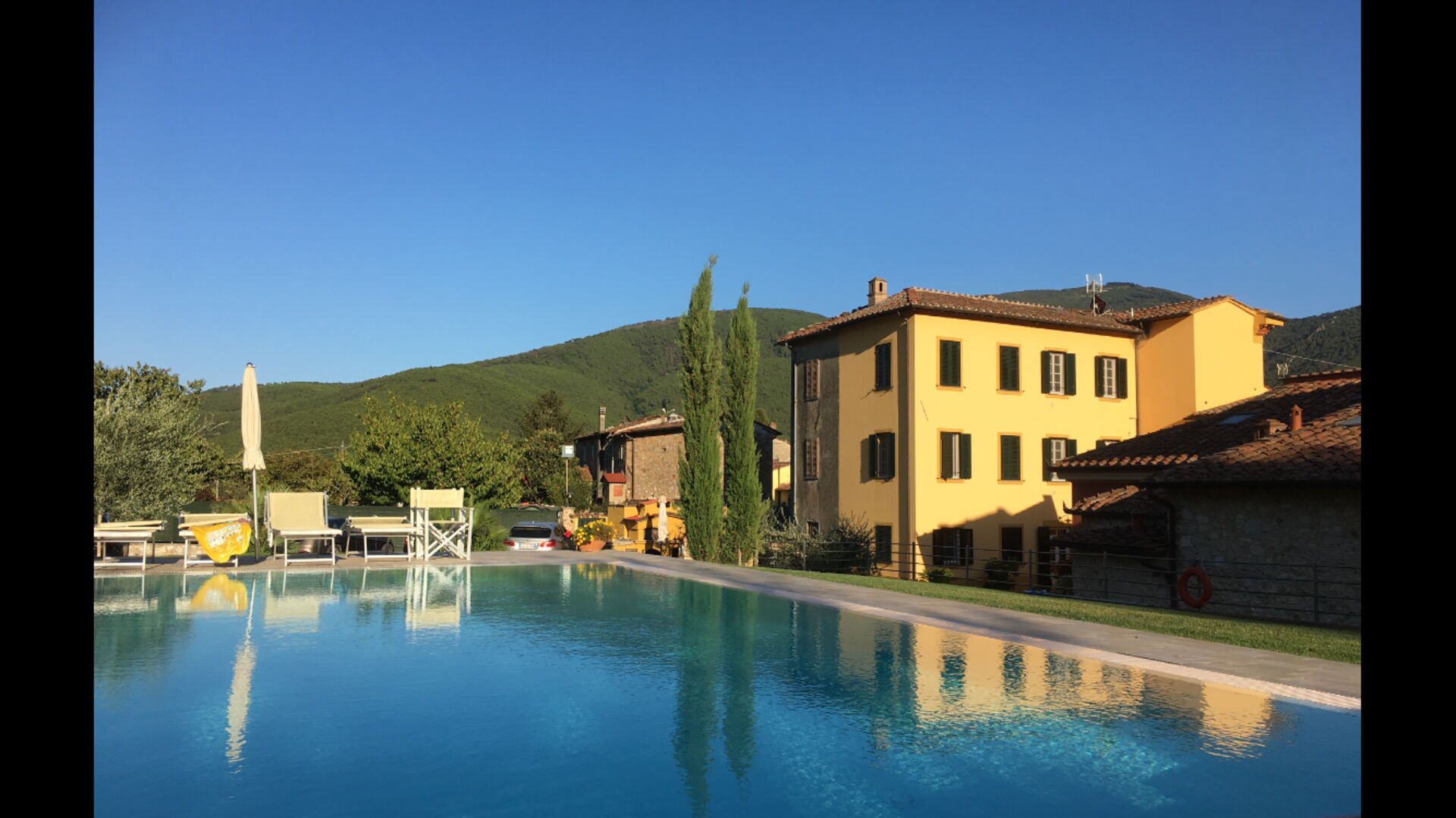 Ottima location tra Lucca e Siena . Appartamento molto curato e dotato di piscina privata con ottimo rapporto qualità/ prezzo . Proprietari disponibili e gentili . Mancano però prodotti da bagno e alcuni utensili da cucina.
