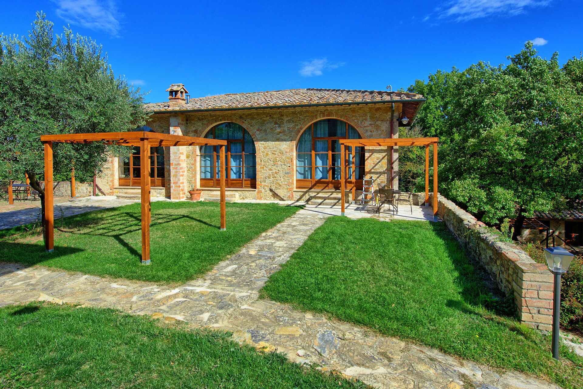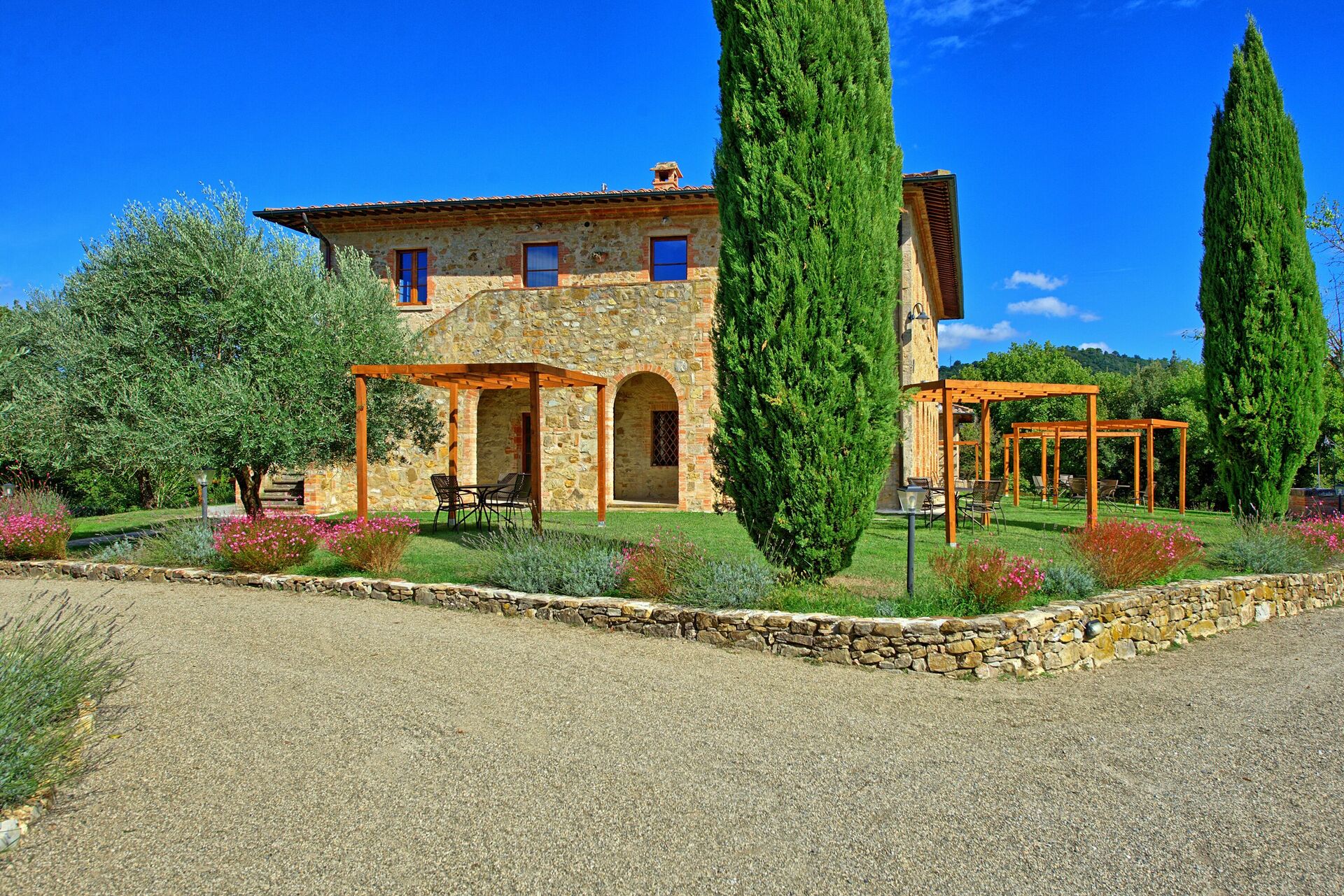 Distances: Pievescola avec des magasins d'alimentation à 3 km, Casole d'Elsa avec toutes sortes de magasins à 15 km, Sienne à 25 km, Monteriggioni à 25 km, la ville médiévale de San Gimignano à 30 km, Montalcino à 65 km, Florence à 70 km, Pienza à 75 km. La côte toscane (Cecina, Bibbona, San Vincenzo ou Follonica) est à environ 70 km.