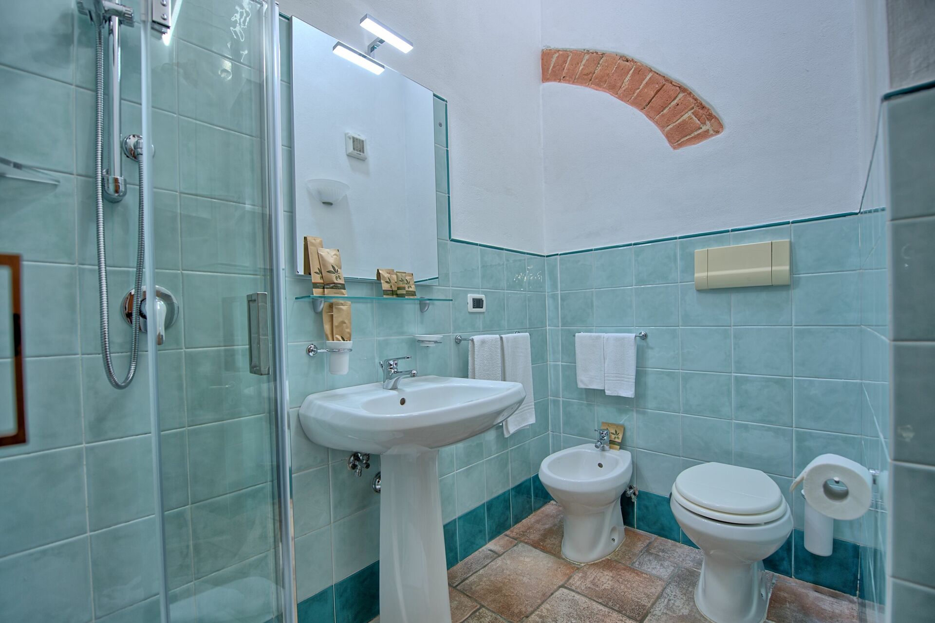 Premier étage: chambre double, salle de bain avec douche, chambre à coucher avec un lit simple.