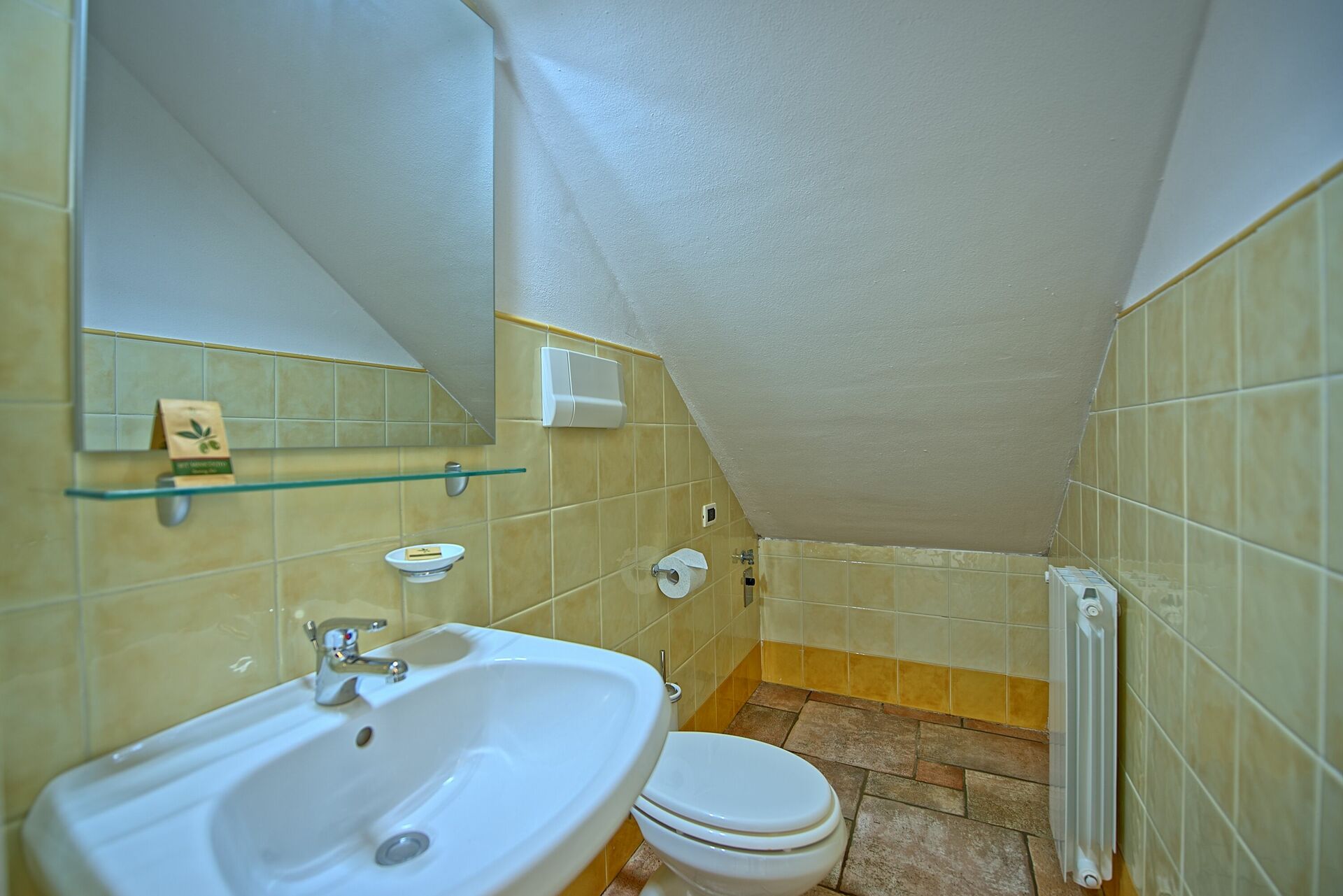 Rez-de-chaussée: entrée au salon (TV) avec cheminée, coin repas et coin cuisine (congélateur, micro-ondes, lave-vaisselle), WC, chambre avec un lit simple et accès à l'extérieur, chambre double avec accès à l'extérieur, salle de bain avec douche .
