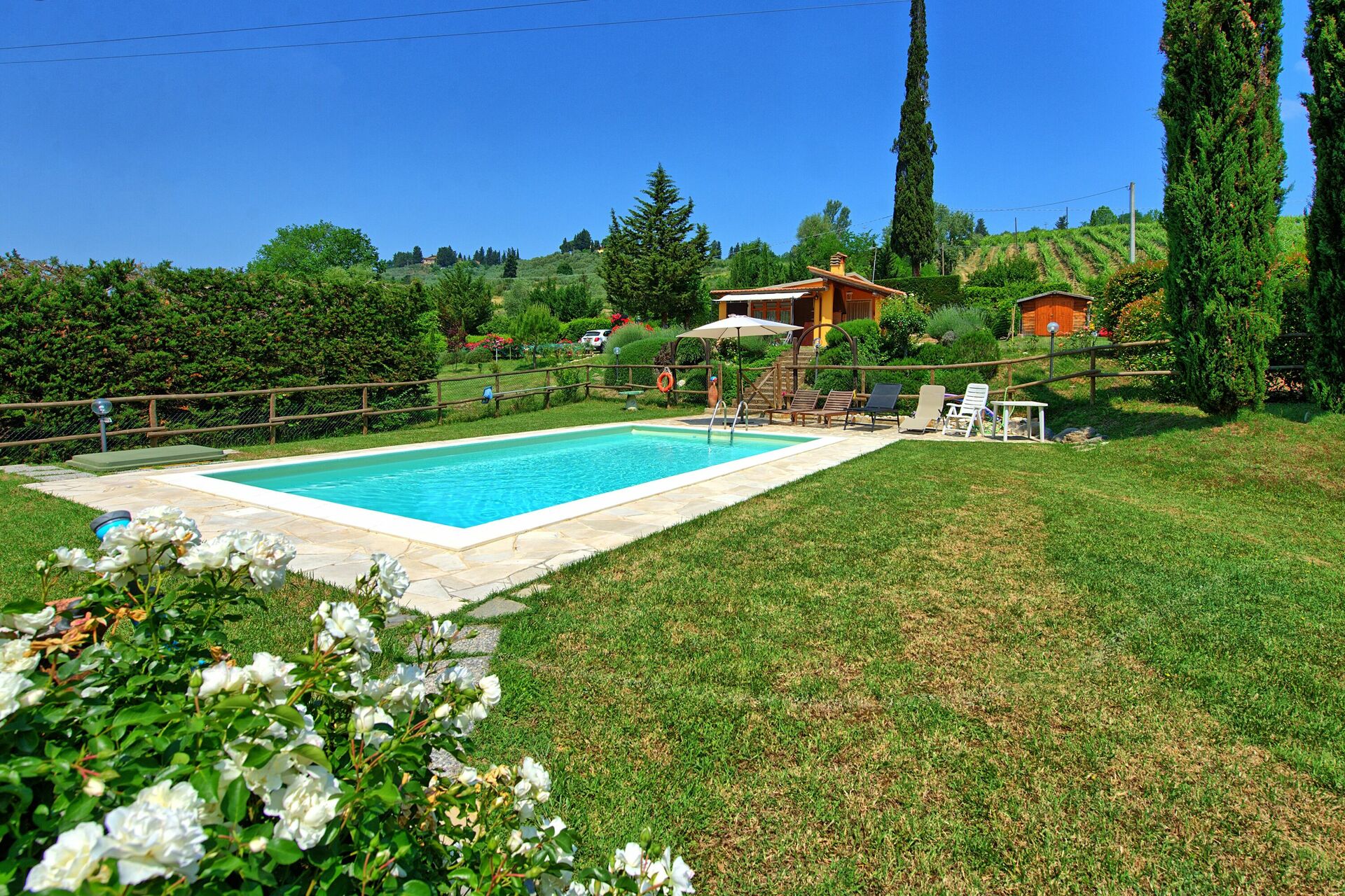 Distances: Certaldo avec magasins variés et gare ferroviaire à 6km, San Gimignano à 20km, Empoli à 32km, Florence à 36km, Volterra à 44km, Sienne à 54km, Cecina avec plages à environ 90km, la région du Chianti Classico à 20km, Pise à 90km, Lucques à 105km.