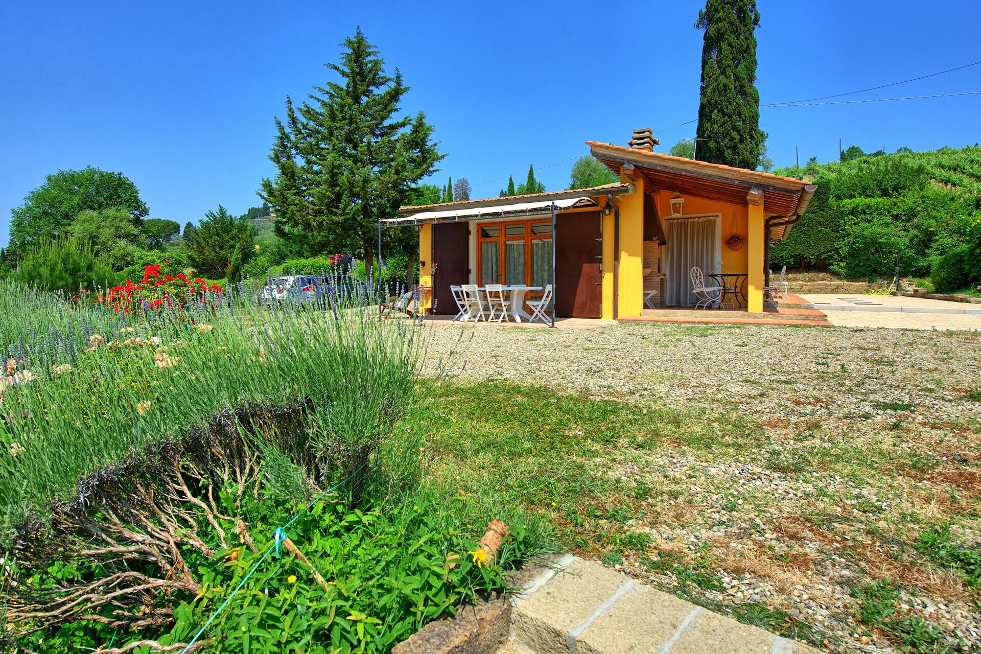 Une route secondaire qui relie Certaldo à Marcialla, passe derrière la maison.