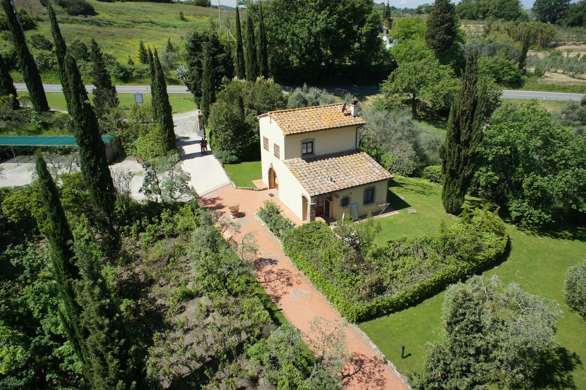 Distances: Montaione avec magasins variés à 1km, Gambassi à 10km, San Gimignano à 22km, Volterra à 30km, Florence à 45km, Sienne à 60km, Cecina Mare (plages) à env. 70km.