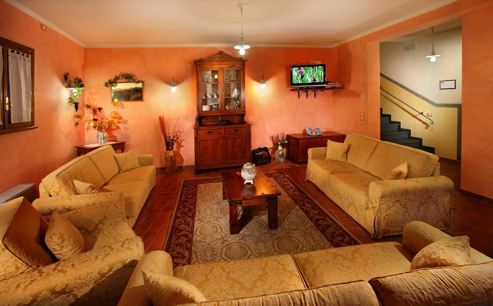Ancienne ferme complètement restructurée qui se développe sur 3 étage (surface totale : env. 600m2) et comprend : 12 chambres à coucher avec salle de bains. Les chambres sont confortables avec vue. Ameublement de style rustique toscan. Dans toutes les chambres à coucher: TV-Sat, rideaux d'occultation, air conditionné/chauffage avec thermostat. Dans tous les bains : doccia, WC, bidet, lavabo, miroir, fenêtre, allarme douche et sèche-cheveux.