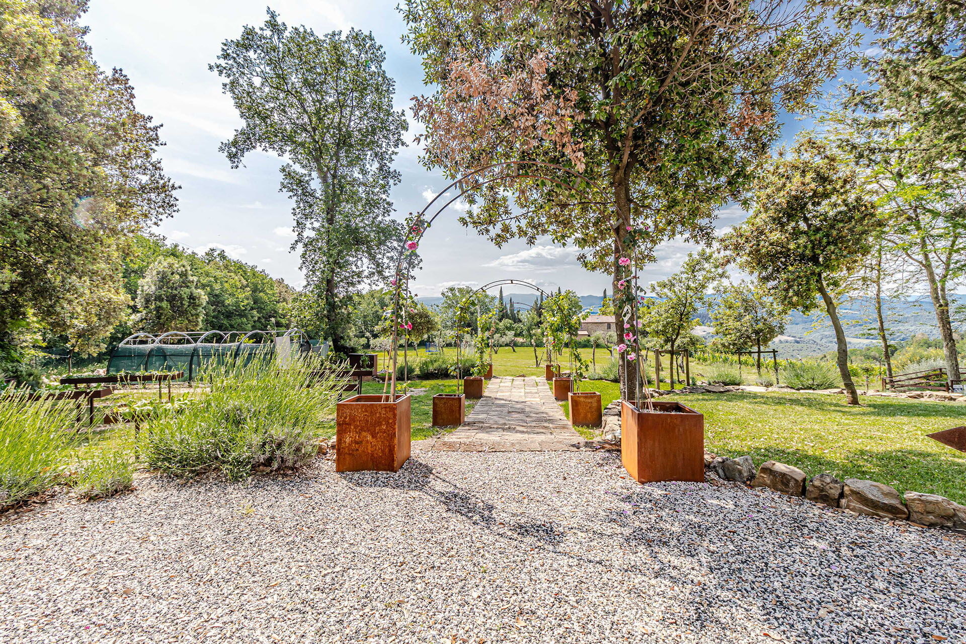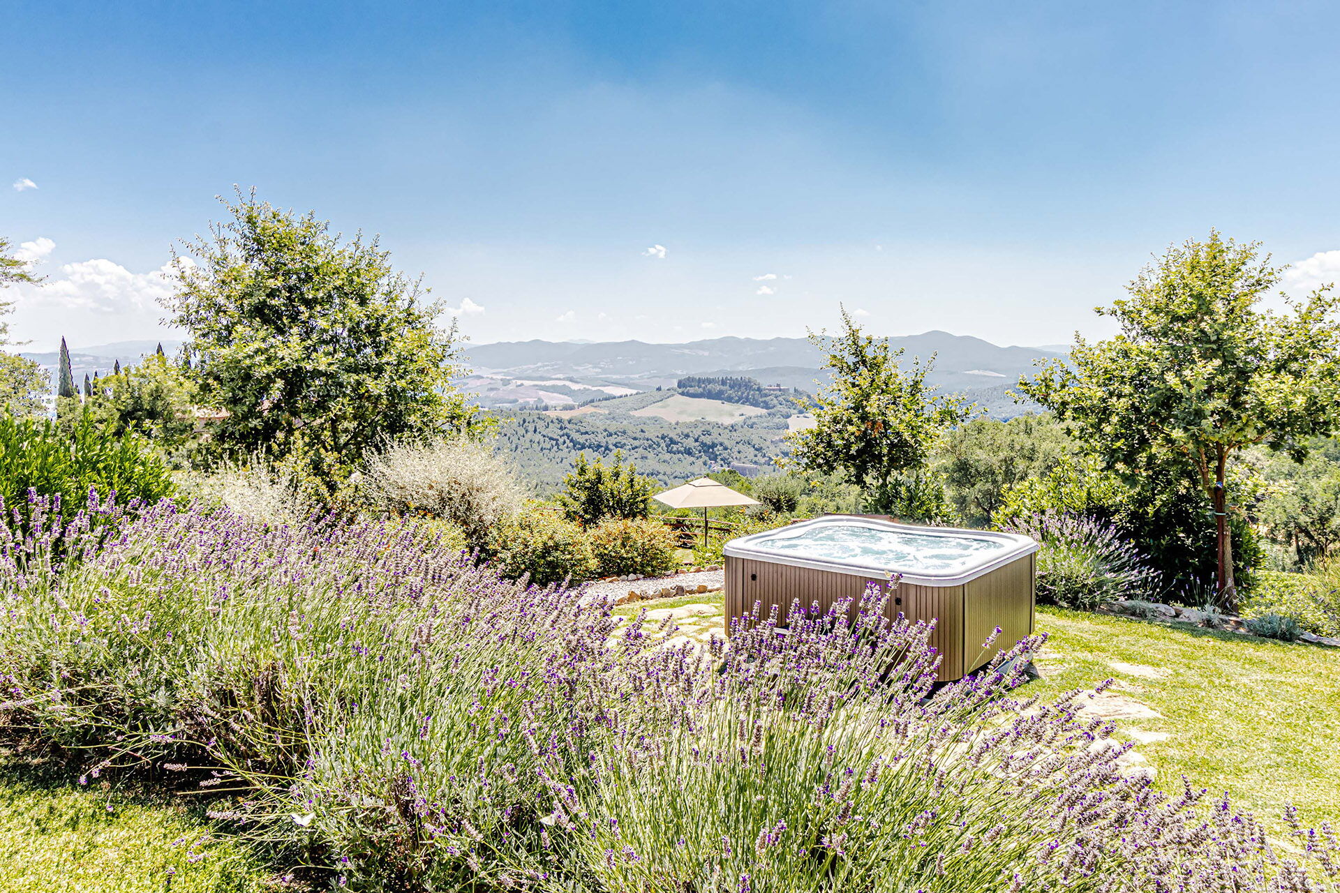 Les espaces extérieurs panoramiques offrent de nombreuses zones pour que les hôtes puissent passer un agréable séjour en famille ou entre amis: vous pourrez vous détendre au bord de la piscine, dans le bain à remous ou dans la zone du solarium, idéale pour passer des moments inoubliables sous le soleil de Toscane.