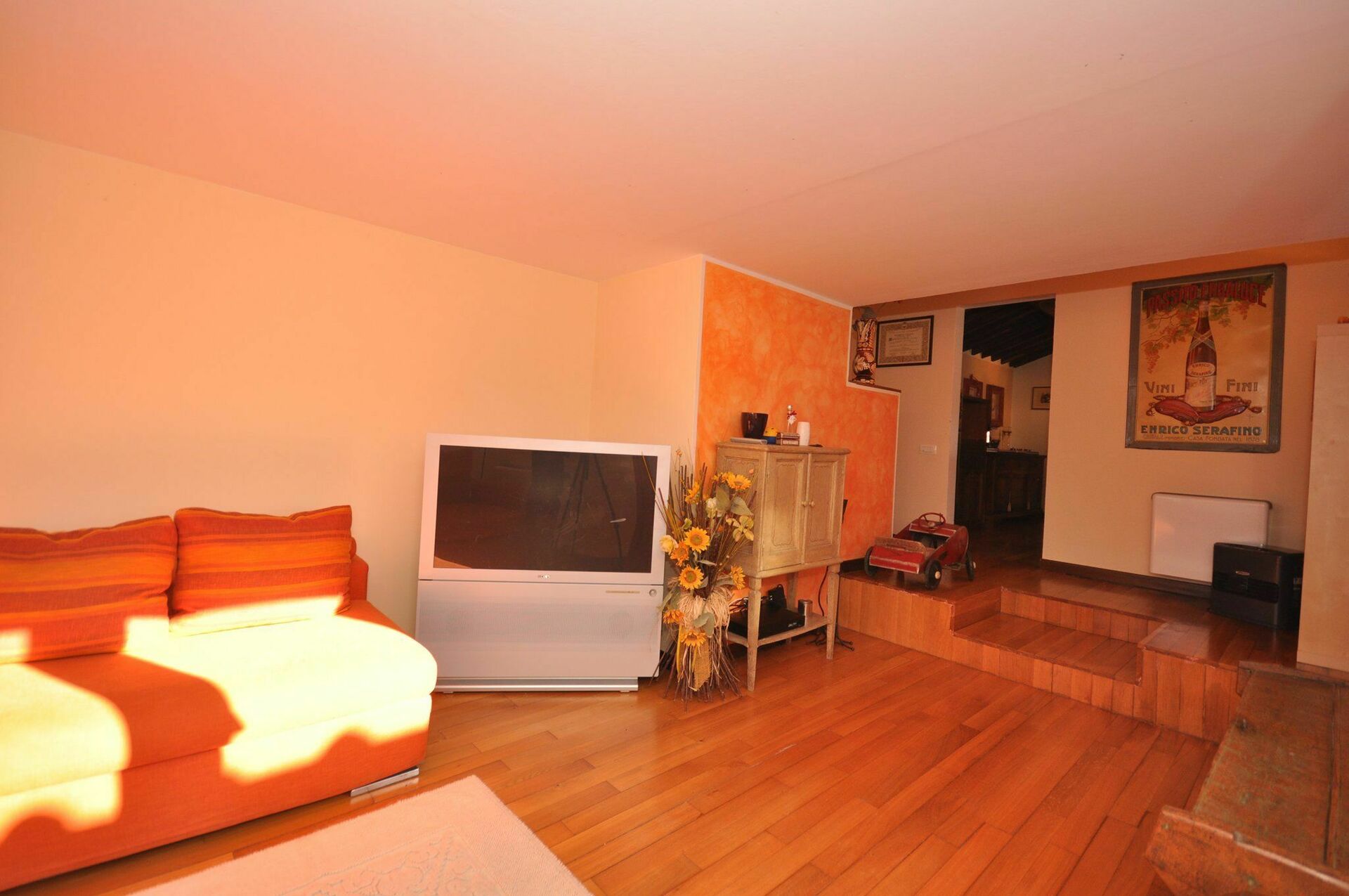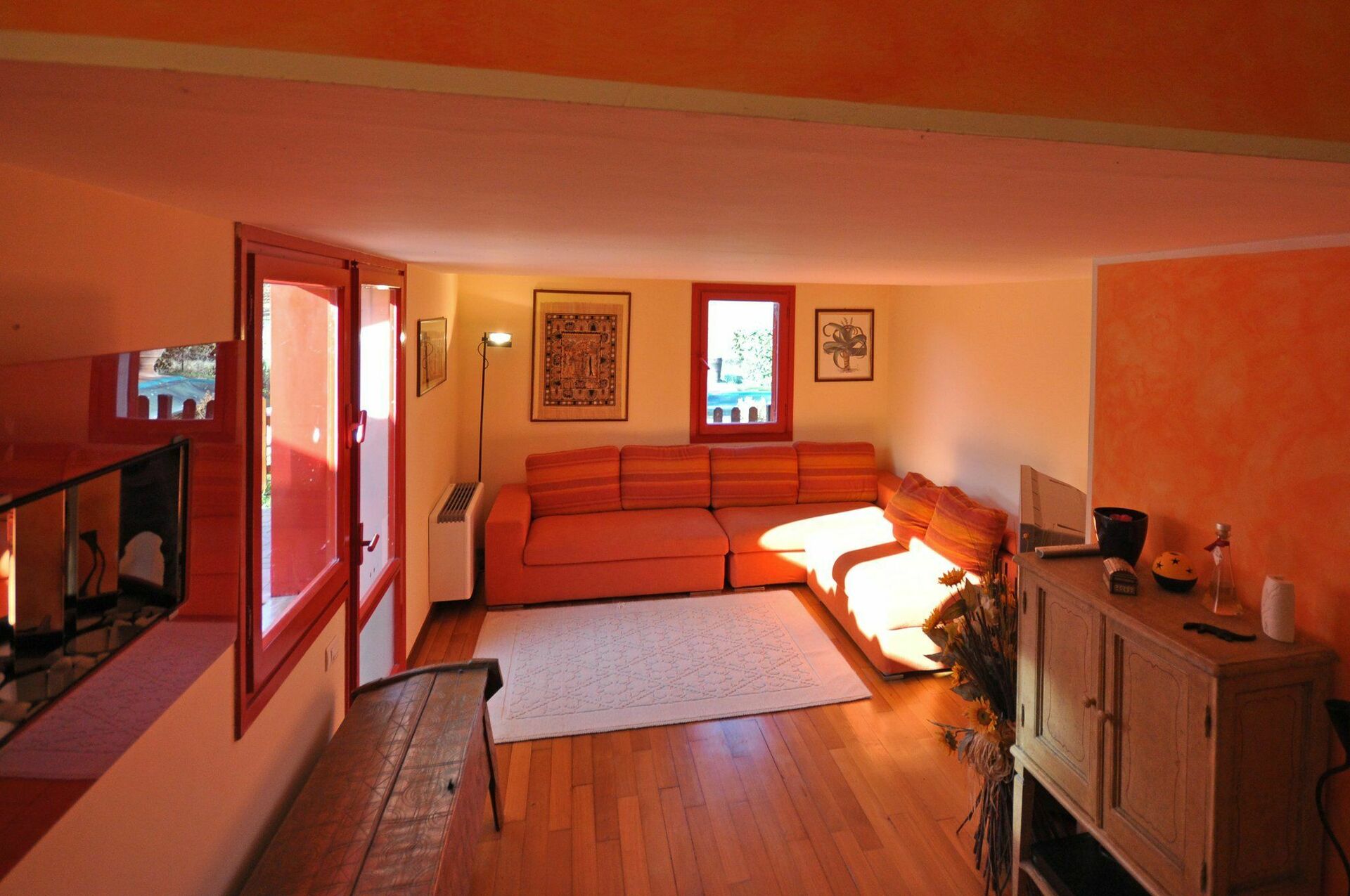 2 marches plus bas : séjour (TV-Sat) avec accès sur l’extérieur.