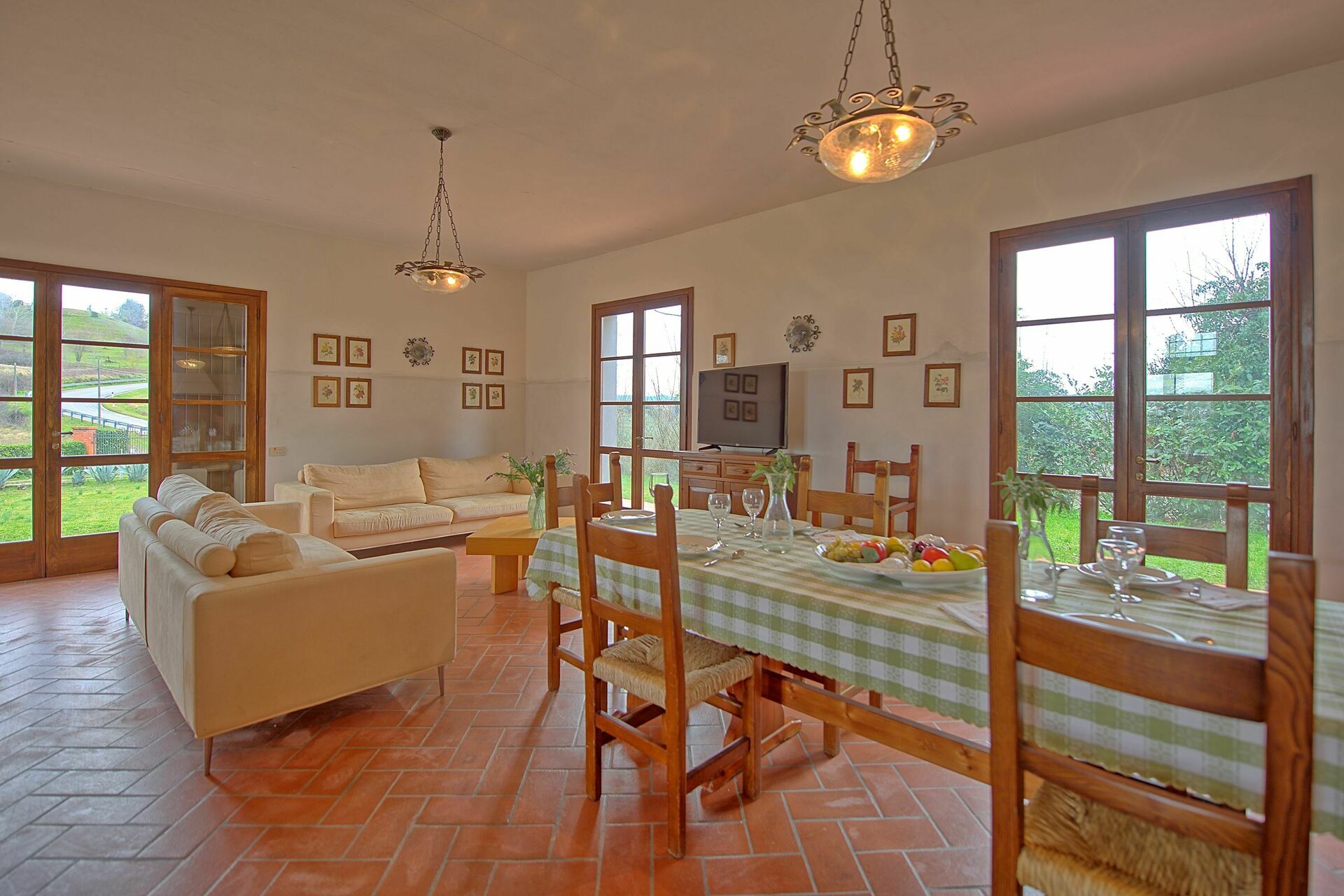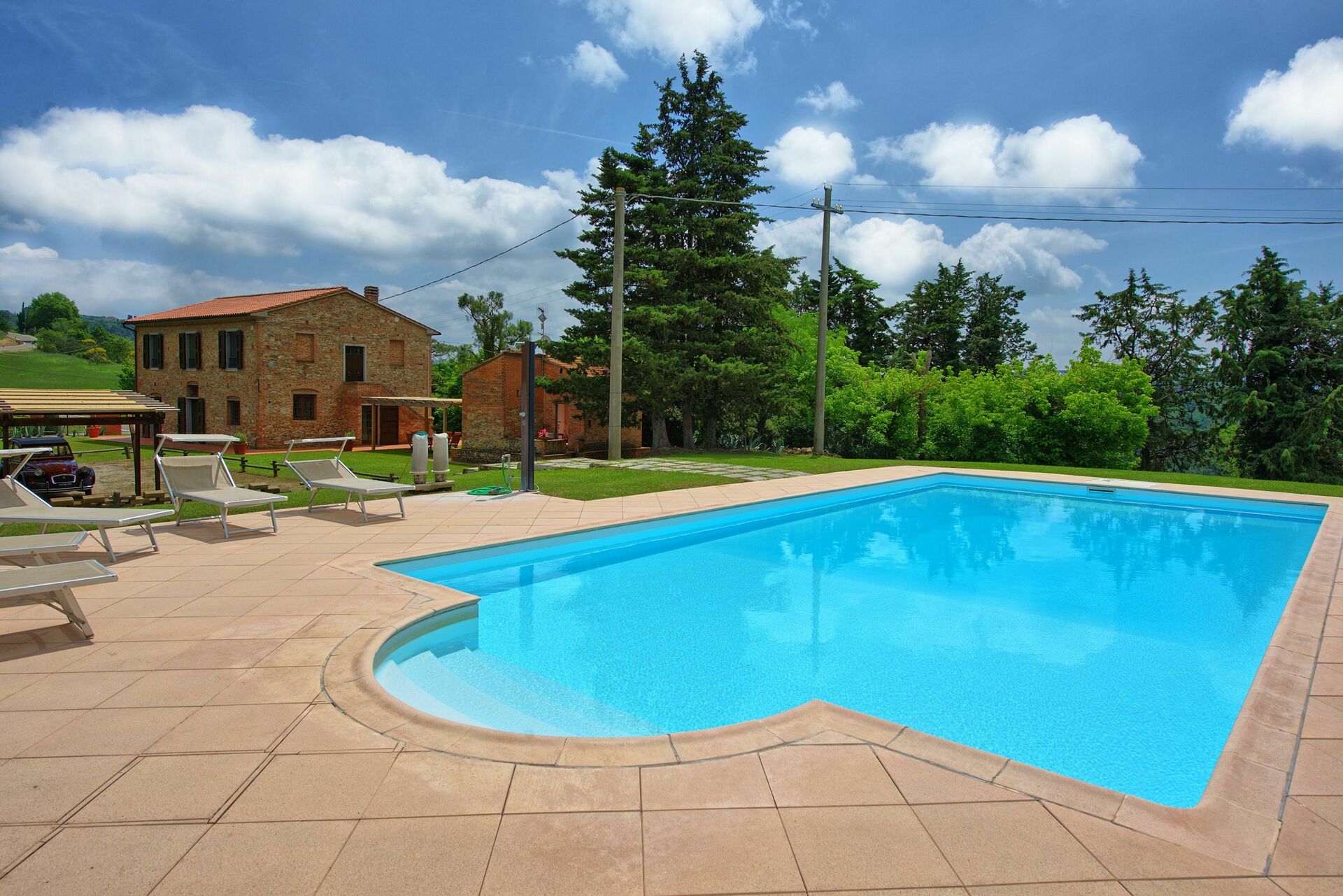 Grand jardin bien entretenu avec piscine privée. Intérieurs de style rustique toscan. La maison peut héberger confortablement 8 pers..
