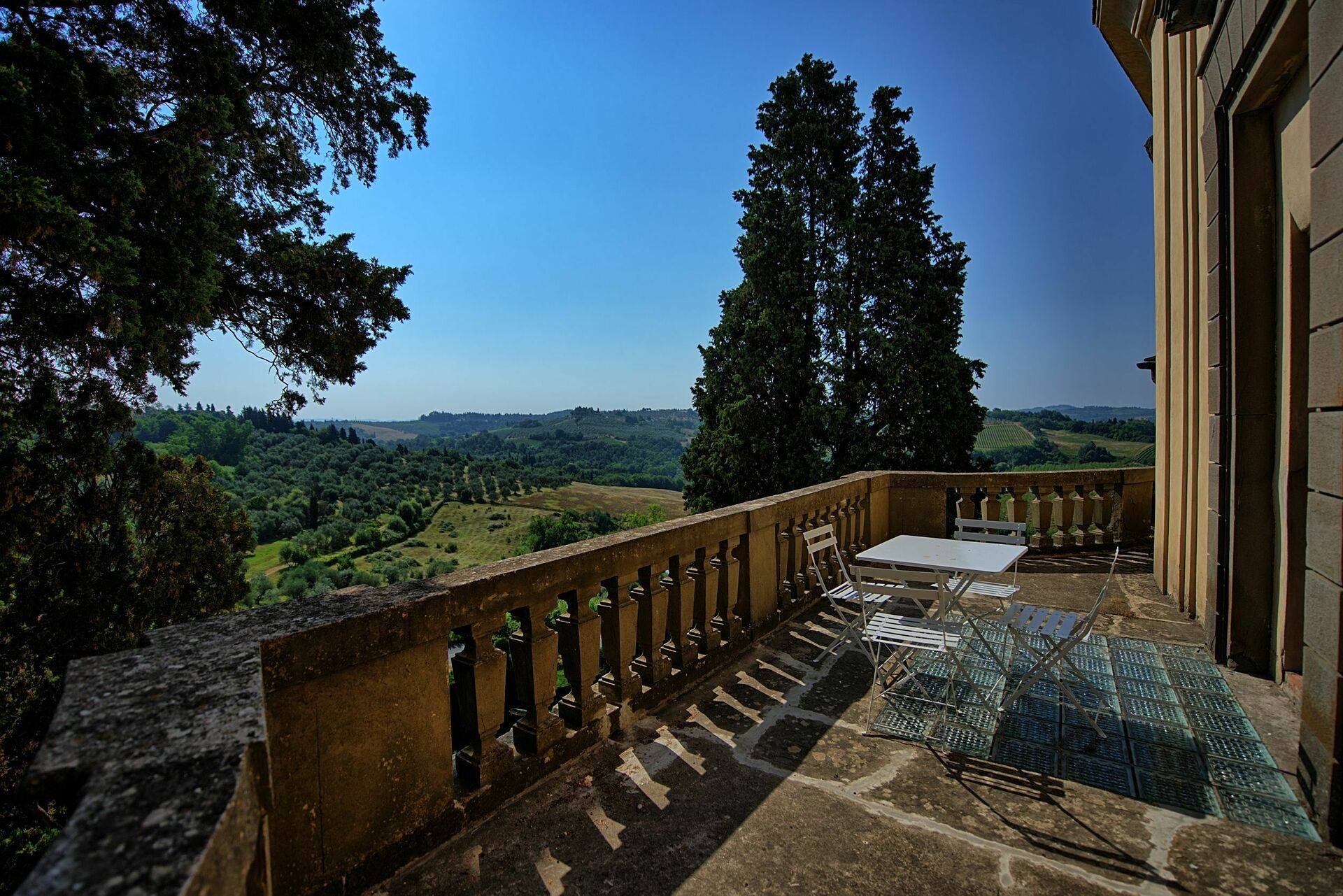 Petite et gracieuse terrasse avec belle vue sur la campagne environnante.
