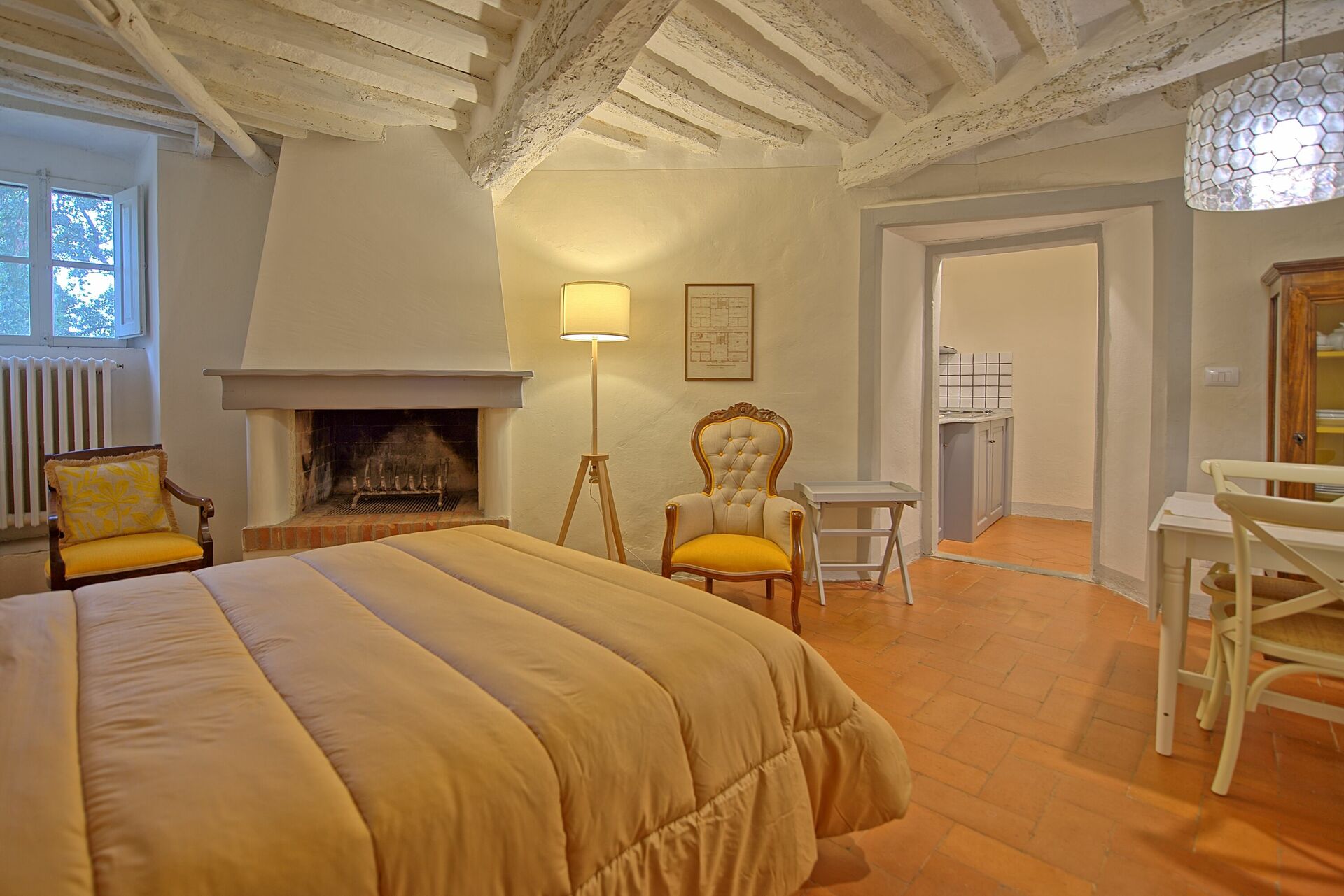 A circa 20/30 min d’auto da Firenze, 45 min da San Giminiano e Volterra e un’ora da Siena, quest’alloggio permette di godere delle bellezze Toscane nella più totale tranquillità, circondati dal paesaggio e dalla bellezza di questo castello. L’appartamento è molto ben arredato e confortevole.