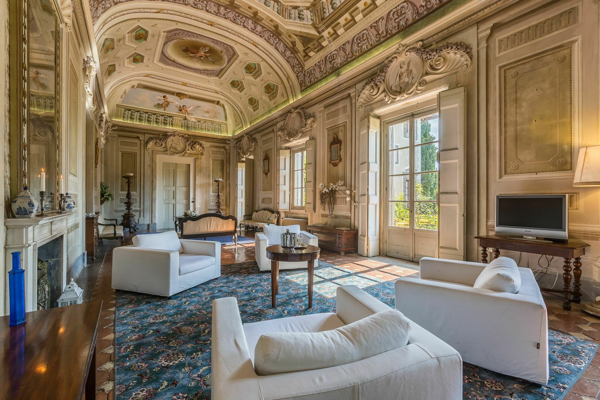 The Galleria appartment is huge, there is really no way to prepare yourself for the size of the living room/ball room. It occupies an entire wing of the castle. The team on site were very nice and accommodating. The castle is old and needs some more TLC . You can really tell the building is very very old. However the facilities are nice. Getting in there the only thing missing was the butler.... With an apartment this big you need one. The living room is 24 meters from one end to the other. Add 10-11m more before you hit the front door. No AC - but fans do the trick to keep you cool at night.