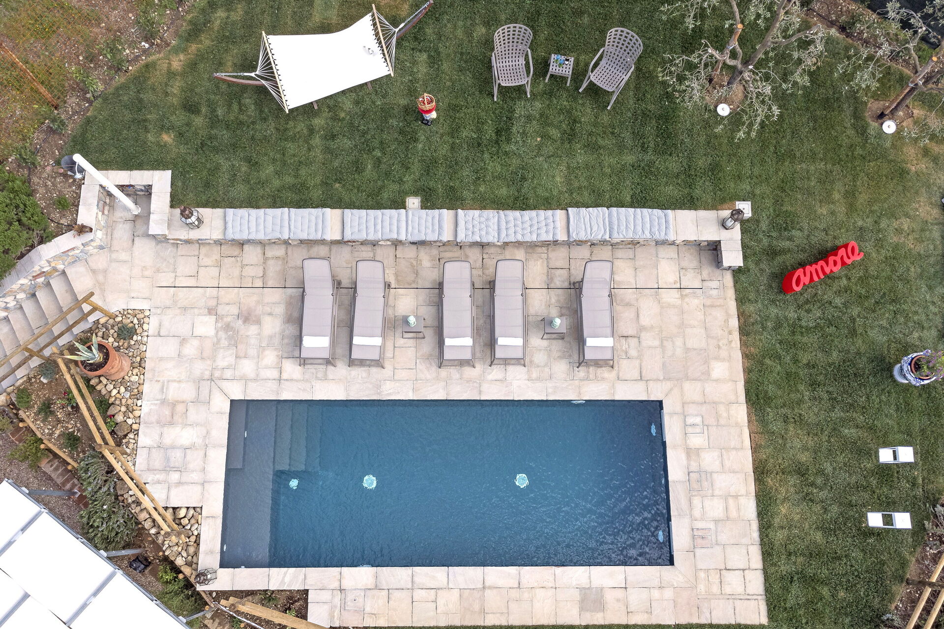 - piscine privée panoramique avec zone d'hydromassage (8 x 3 mètres)