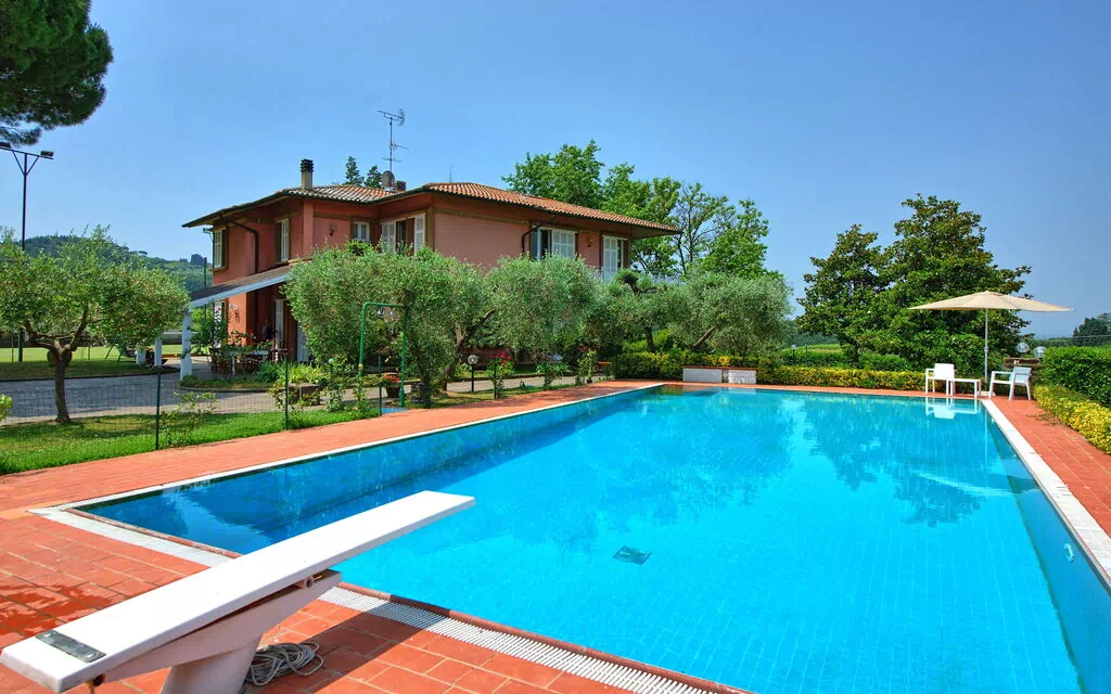 Cette belle villa à louer pour des vacances en Toscane offre le confort d’une piscine panoramique réservée à l’usage exclusif des hôtes qui pourront passer des heures de détente en profitant d’une vue suggestive sur les oliviers et les vignes dans le calme de la campagne toscane.