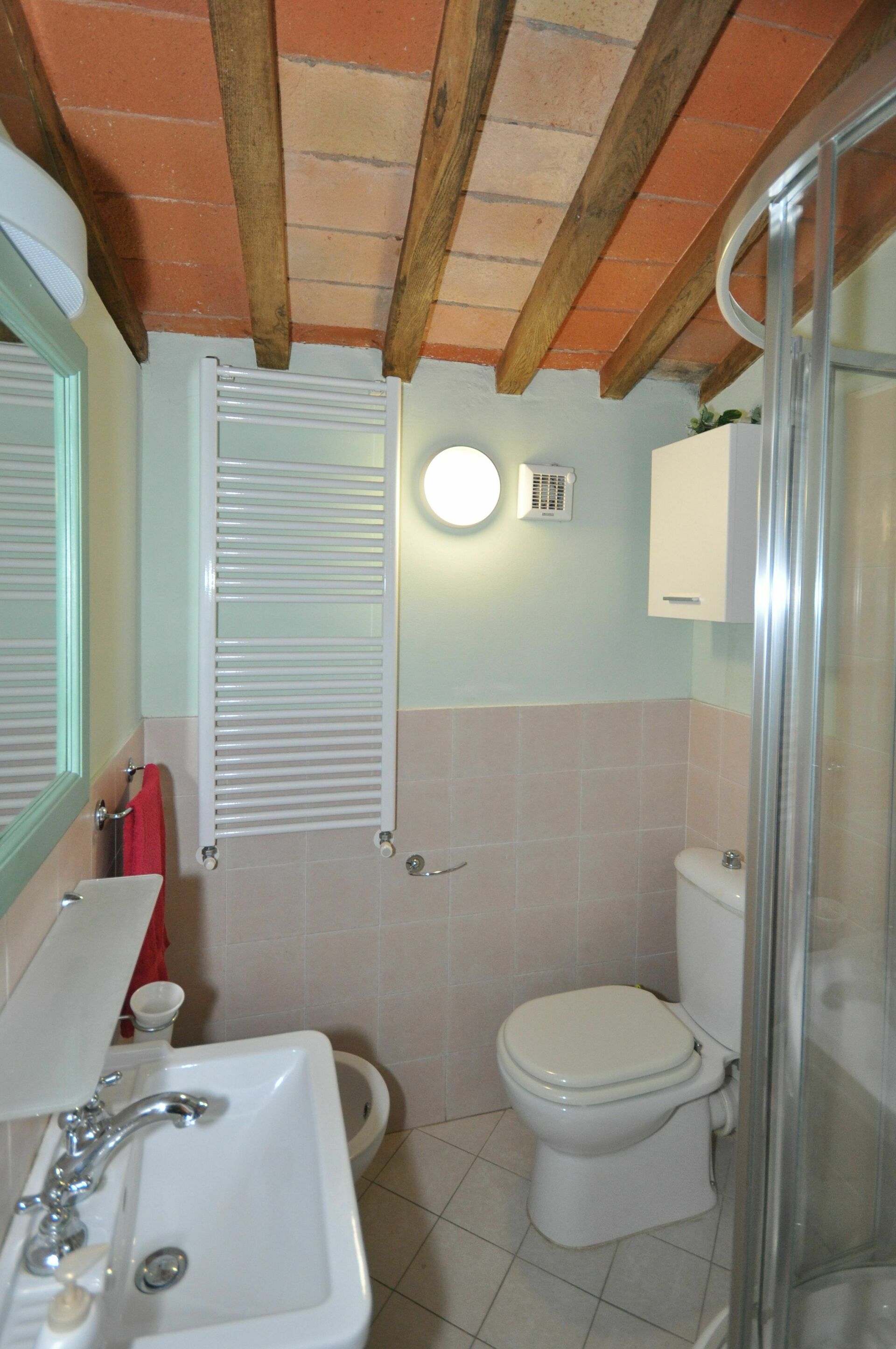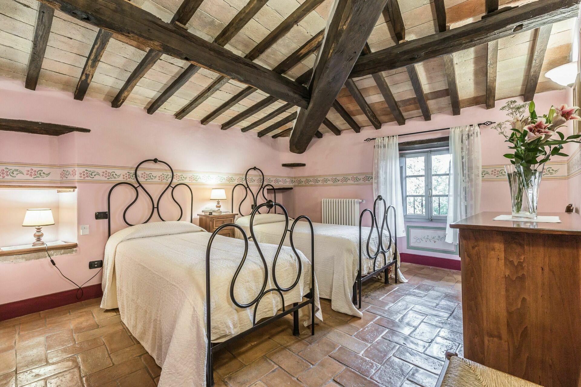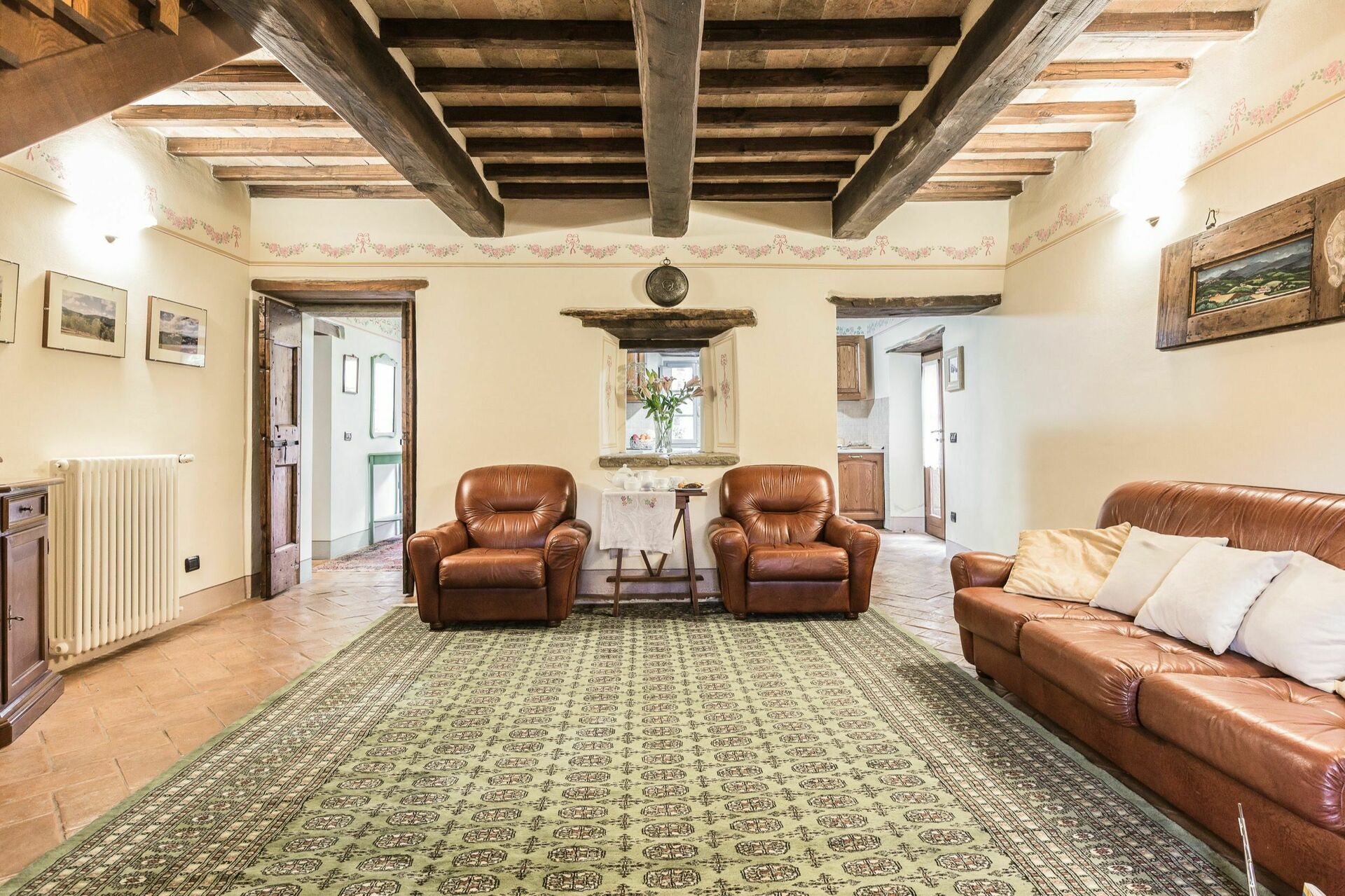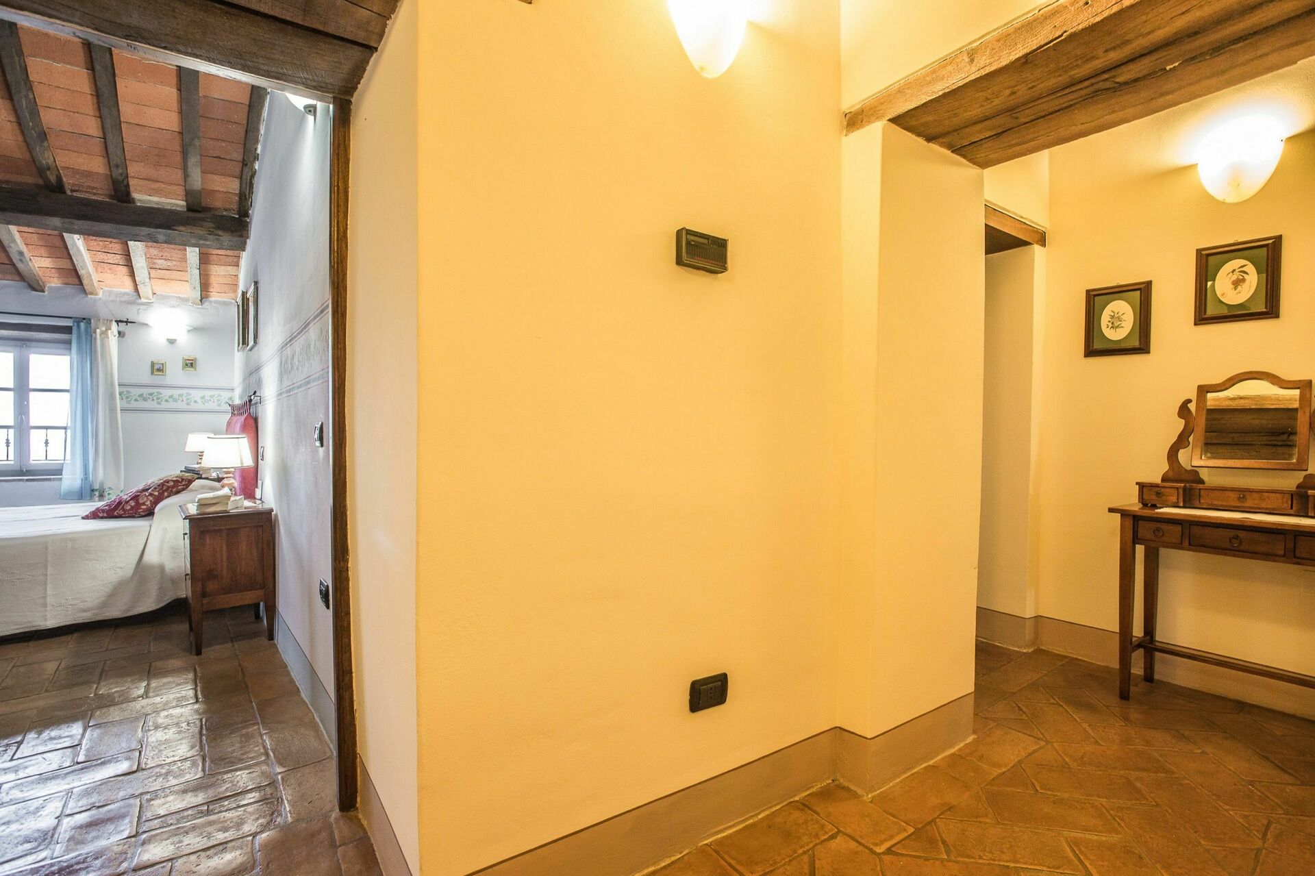 Le charme et les caractéristiques de l’architecture d’origine ainsi que les anciens matériaux ont été sauvegardés: plafonds et planchers faits de briques en terre cuite, poutres apparentes, etc. Les portes d’origine ont été restaurées selon les techniques de l’époque. Ameublement confortable.