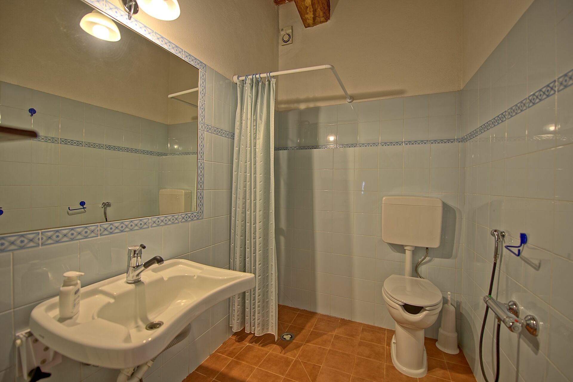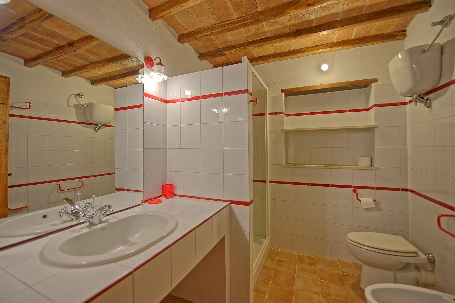 Premier étage: une chambre double avec petite salle de bains privée avec douche, une chambre double avec lit à une place supplémentaire, une chambre à deux lits, salle de bains avec douche. Les appartements Donnino 1 et 5 peuvent être communicants.