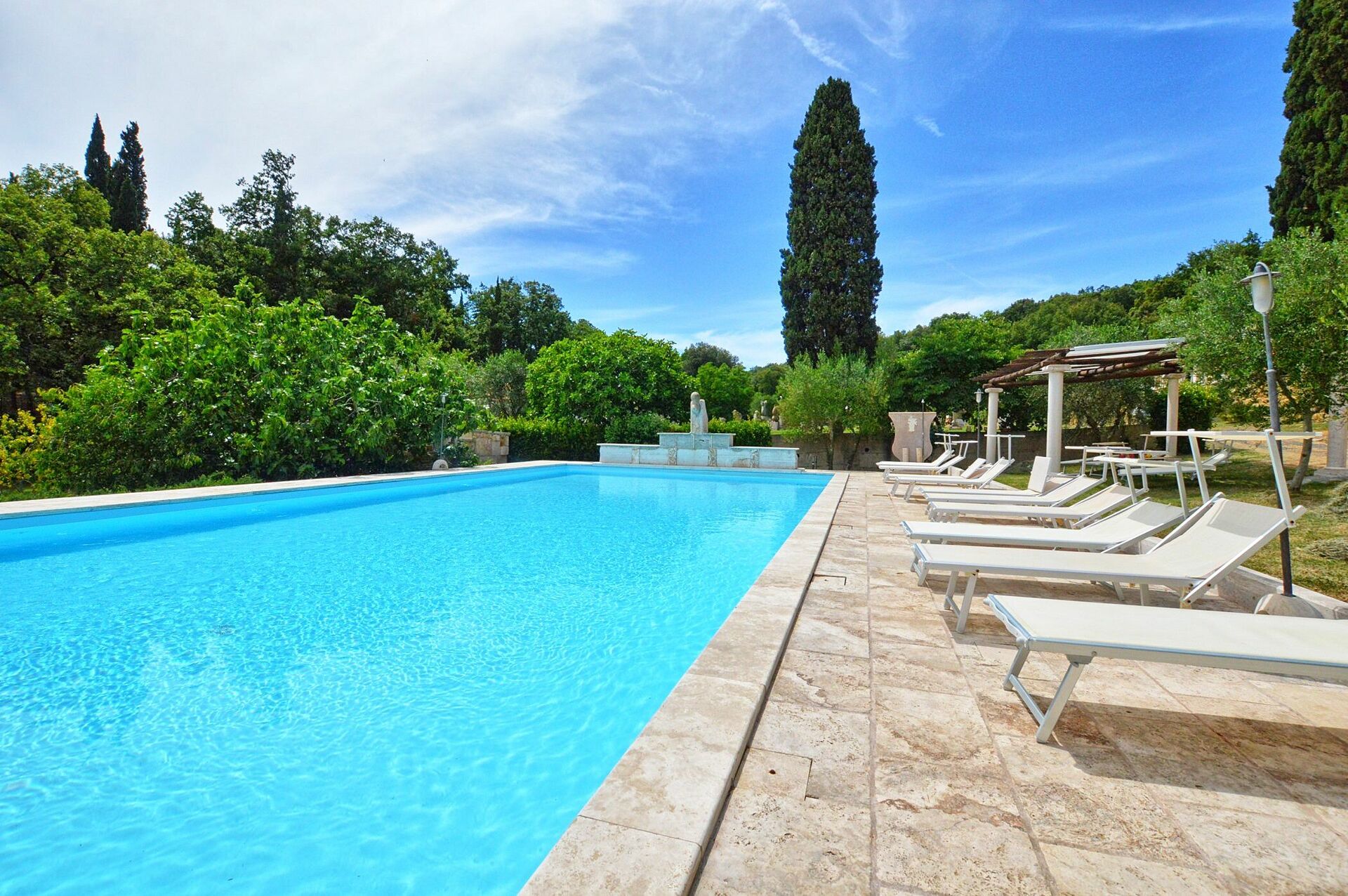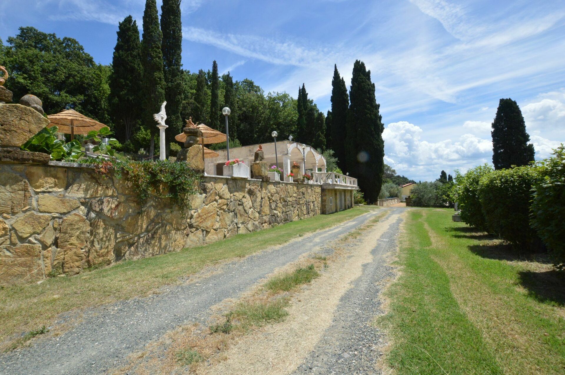 Huit logements particuliers se trouvent au sein d’un vaste domaine de 10 hectares appartenant à un célèbre sculpteur italien de renommée internationale; dans le parc de la propriété, il est possible d’admirer plusieurs de ses œuvres ainsi que son atelier. Le propriétaire réside dans la villa principale du domaine.