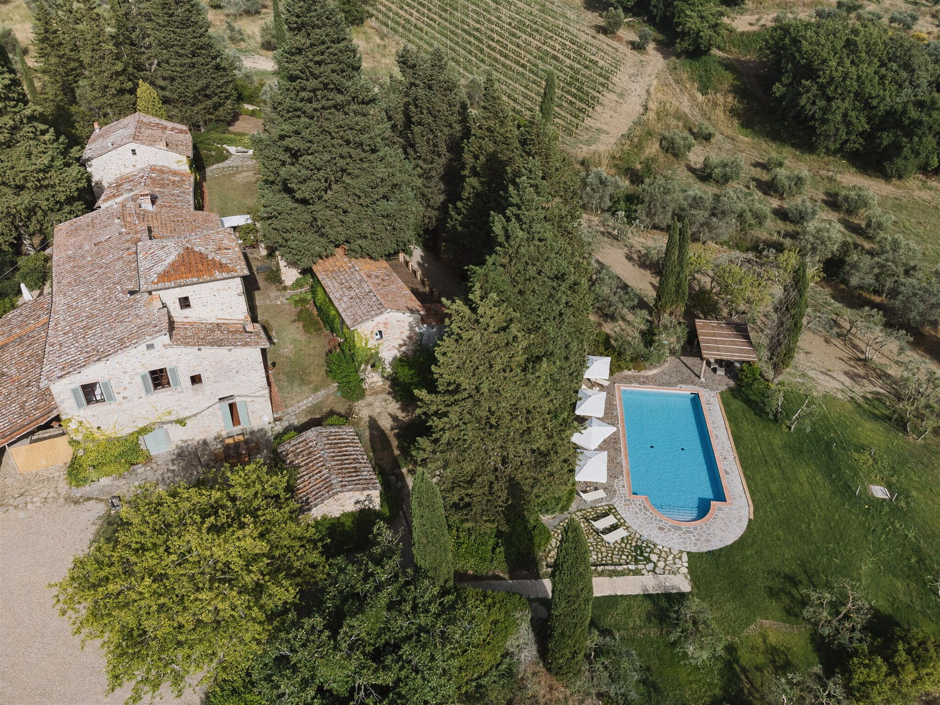 Complexe composé de 6 appartements de vacances confortables en Toscane situé sur les collines de Panzano in Chianti, à mi-chemin entre Florence et Sienne, au cœur du Chianti Classico.
