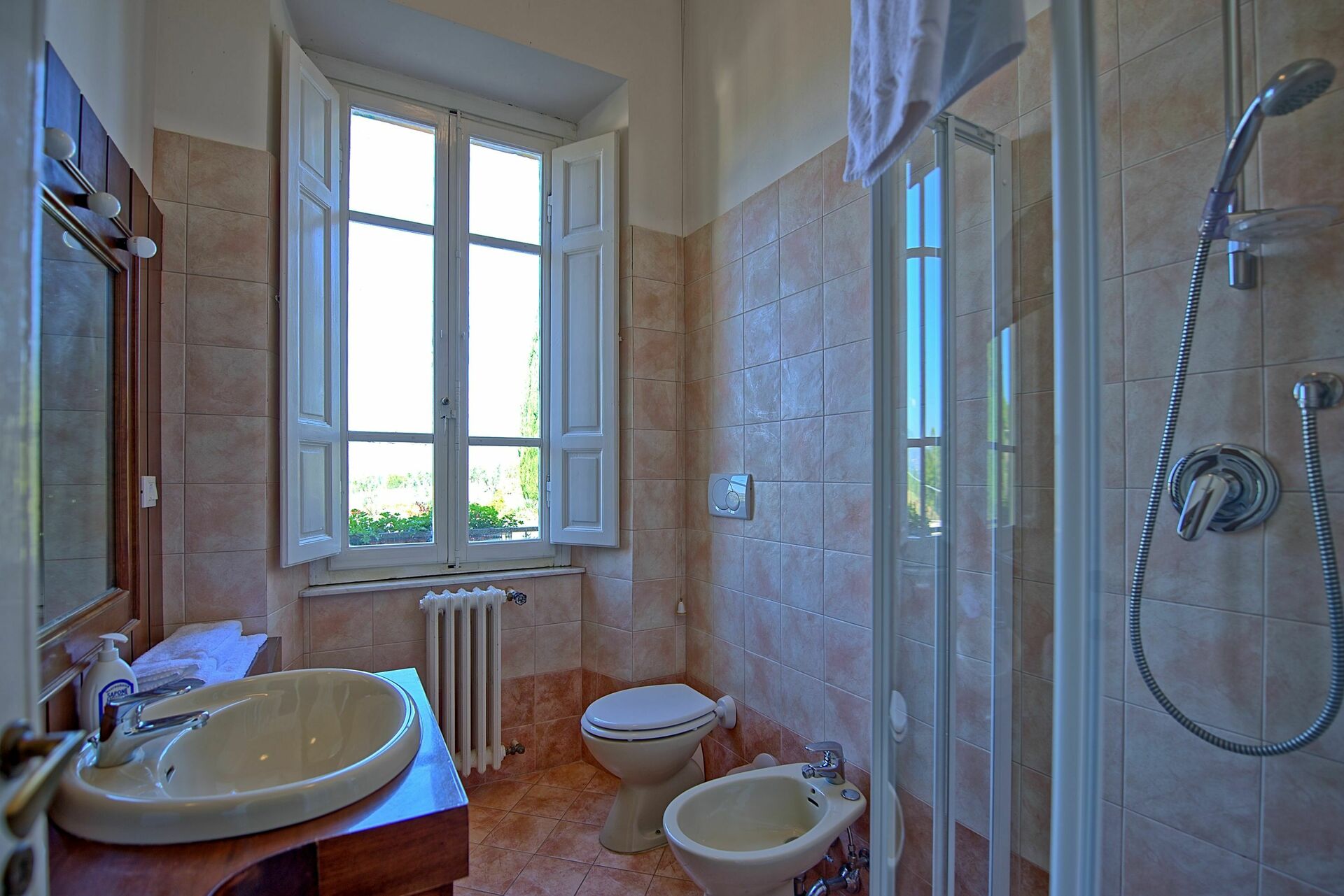 Das Haus ist herrschaftlich und elegant ausgestattet. Das schönste Haus für so eine grosse Gruppe, dass wir je gemietet haben. Abgesehen von den vielen verschiedenen Möglichkeiten die man direkt am Haus und in der Umgebung hat, kann man auch sehr gut Städte in der Toskana und auch in Umbrien besichtigen. Ein Tipp von uns ist es nach Gubbio zu fahren. Es ist zwar etwas weiter und kurviger, aber die kleine Stadt ist ganz besonders schön und im Simmer werden in dem kleinen Amphie-Theater in dem Park vor der Altstadt Konzerte aufgeführt, was wunderschön ist.