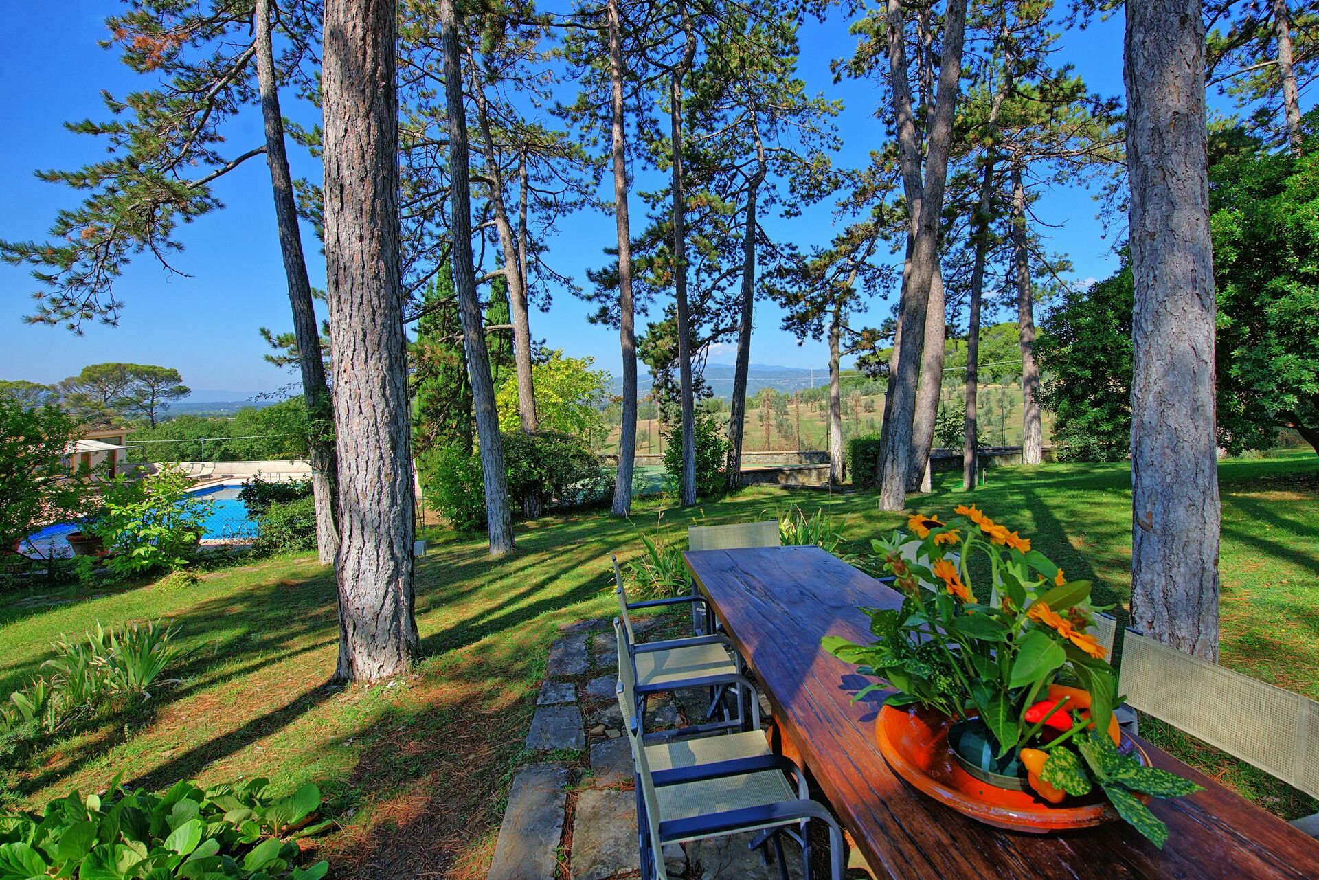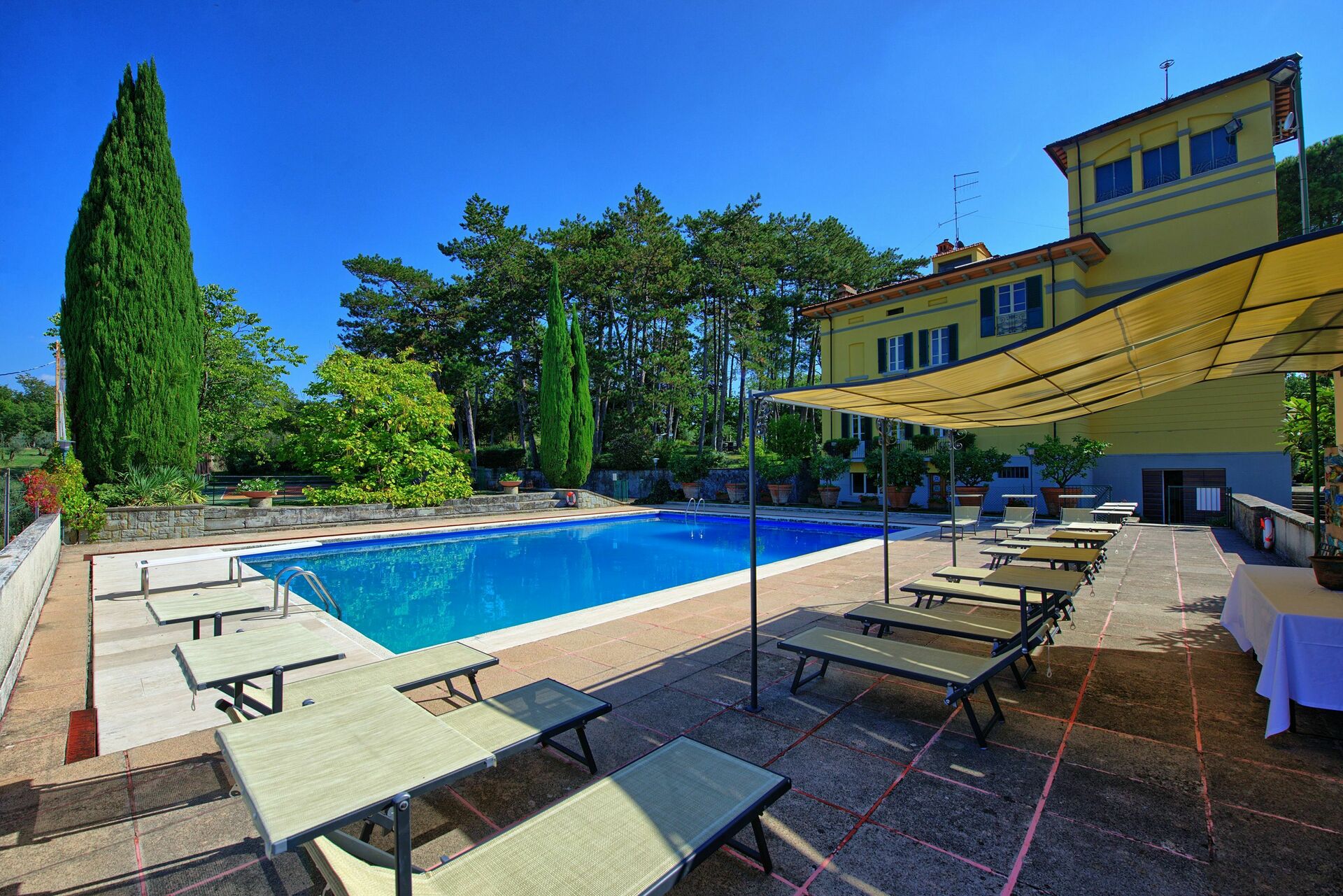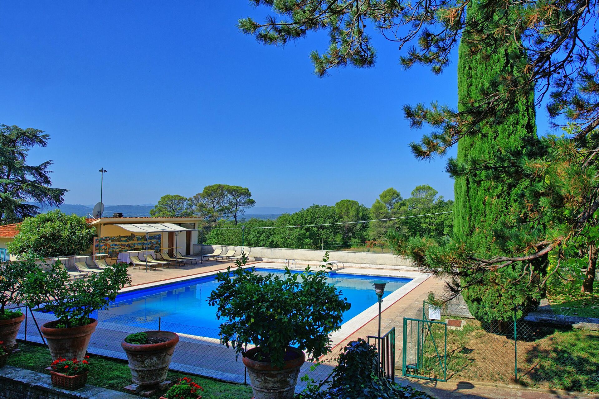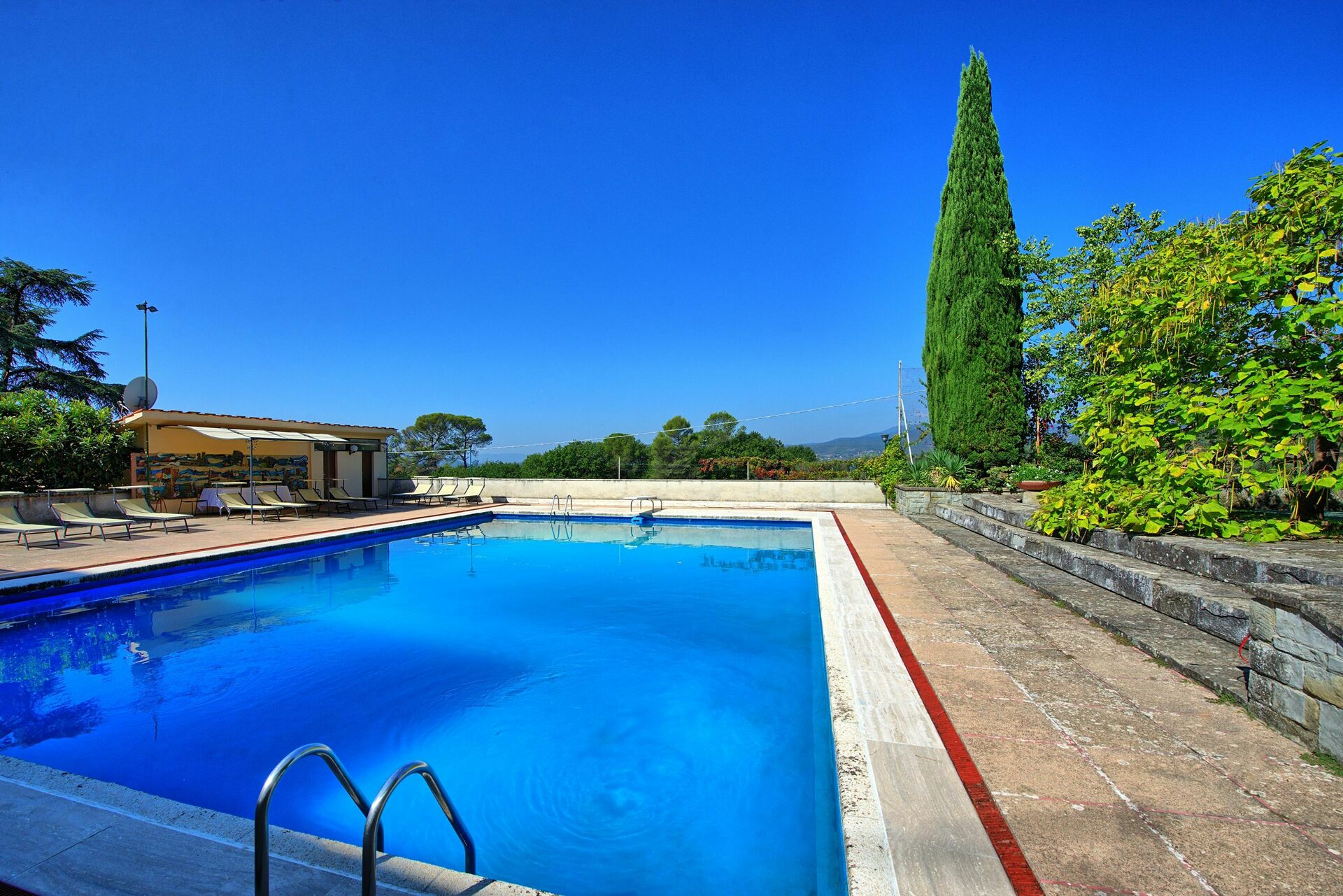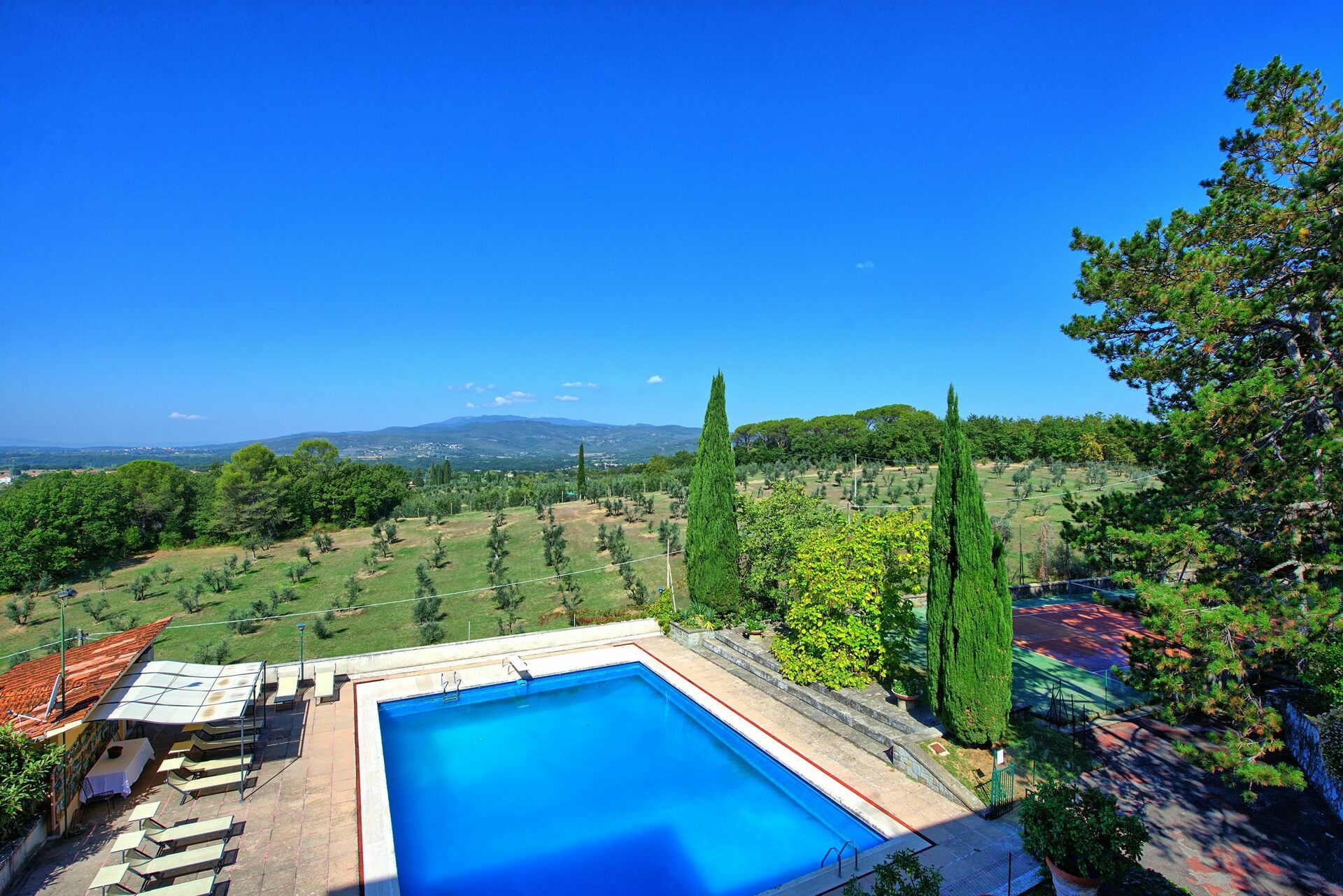 Cette belle villa avec piscine privée en Toscane dispose de vastes espaces intérieurs et extérieurs. Une demeure idéale pour qui souhaite passer ses vacances à l’enseigne du repos et de la détente. Un grand parc avec tennis et piscine en position panoramique assure intimité et tranquillité aux hôtes.