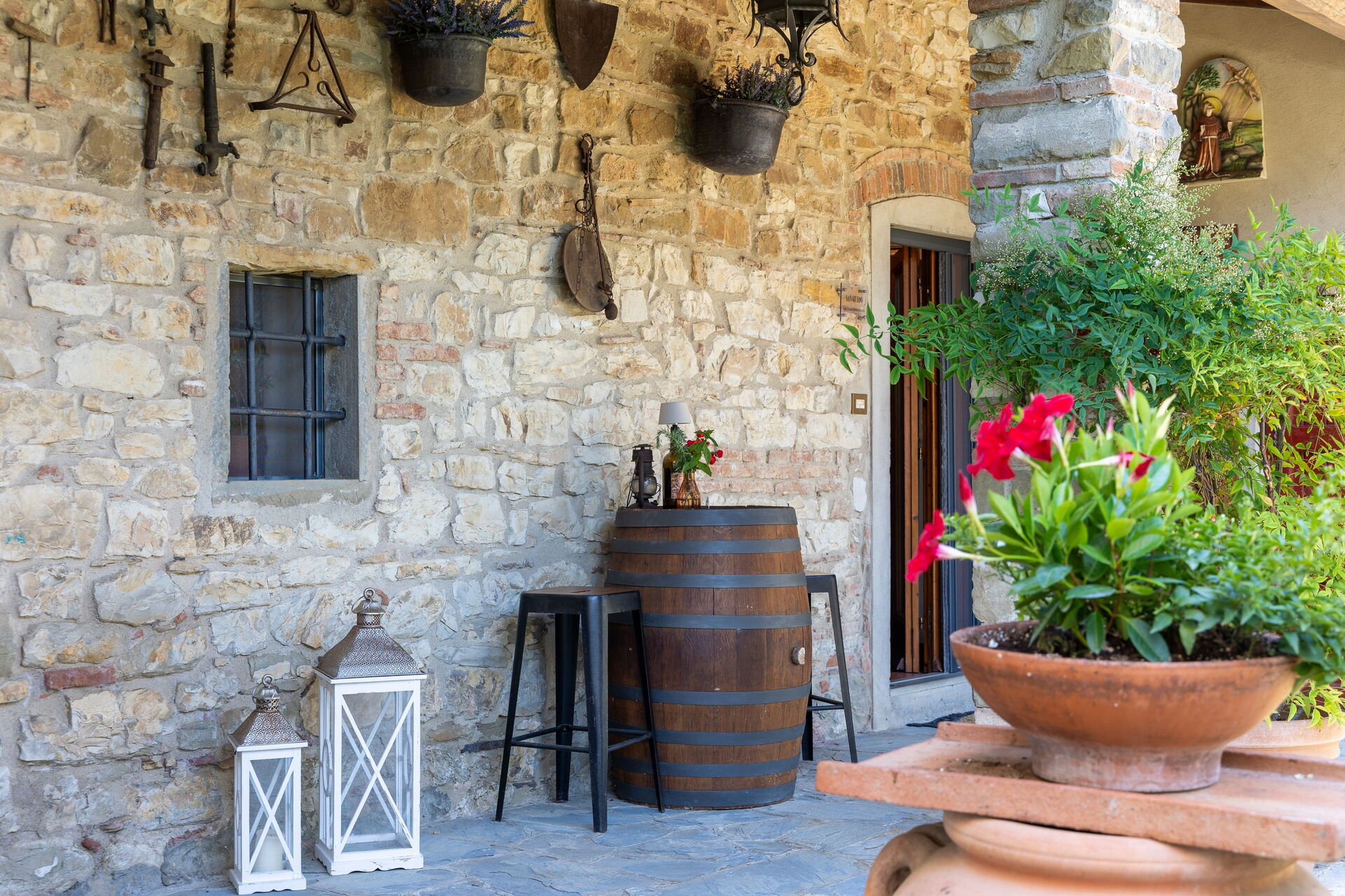 Tout autour, la typique campagne toscane faite de magnifiques vignobles et d’oliveraies. A 2km, le village de Pelago avec magasins variés et Florence à 20 km. Pour qui ne souhaite pas aller à Florence en voiture, il est possible de prendre le train. A 5km, la gare ferroviaire de Pontassieve permet de faire le voyage en train et d’arriver au centre historique de la ville, sans stress ni problème de parking.