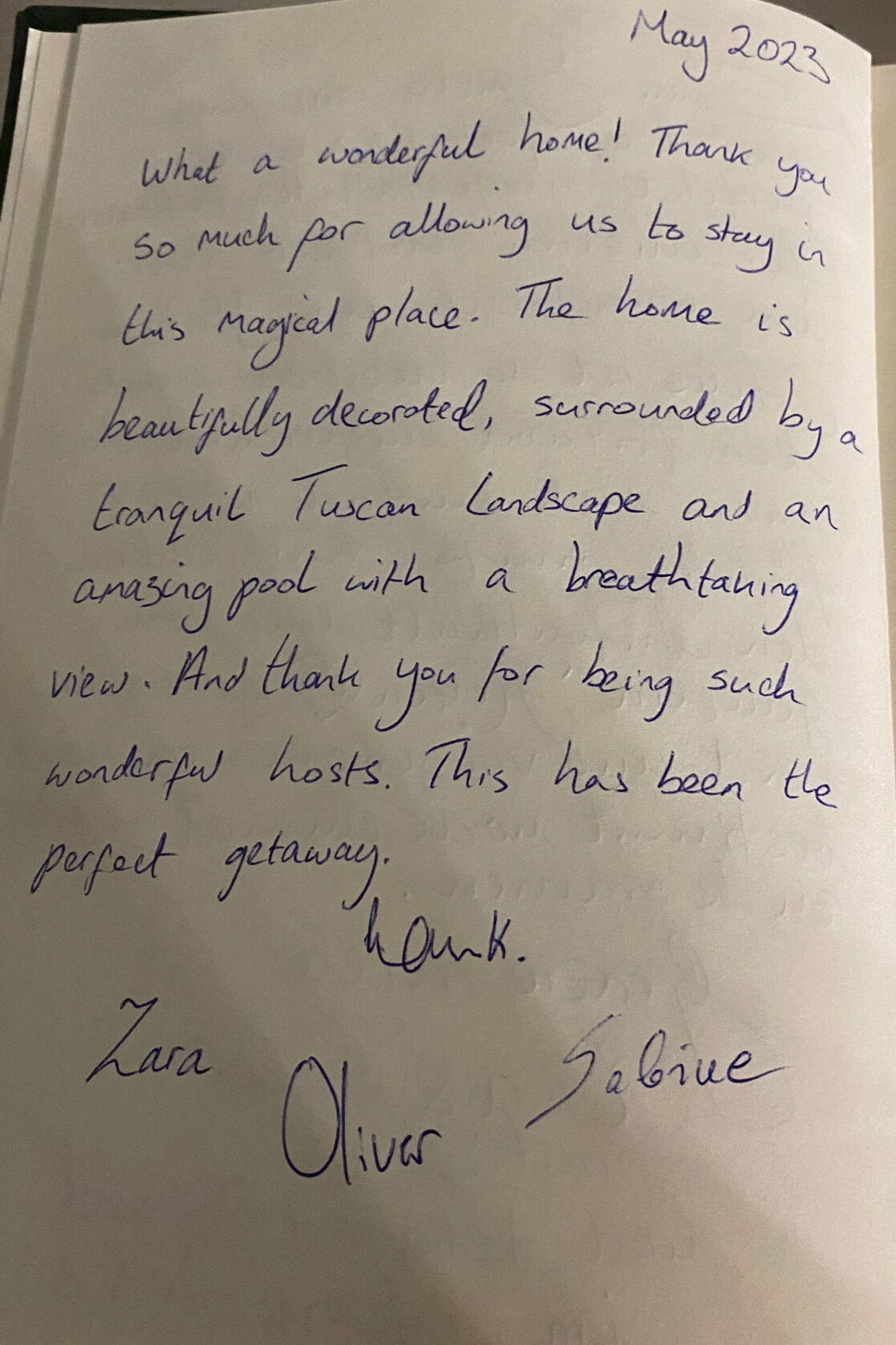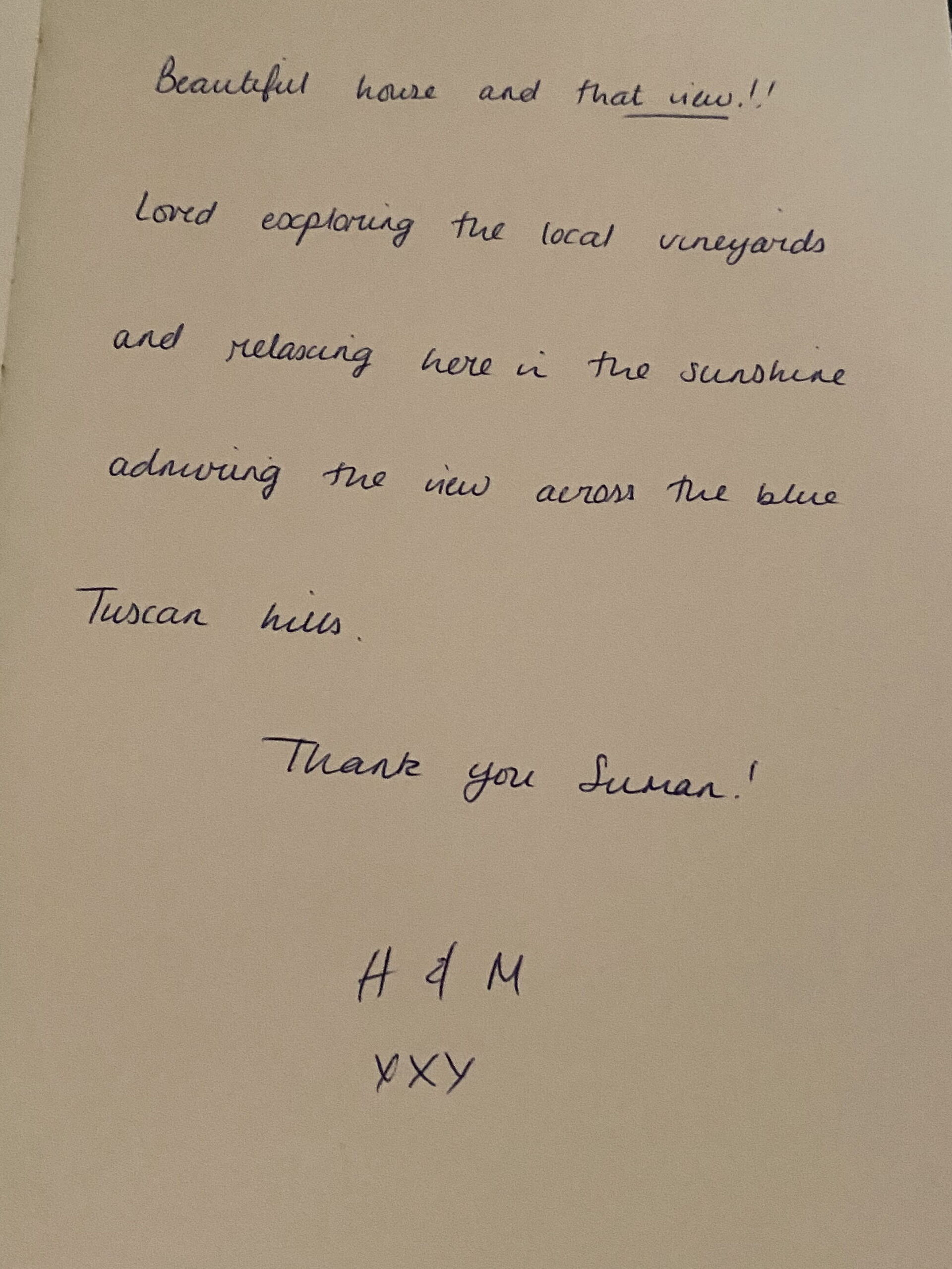 What a wonderful home! Thank you so much for allowing us to stay in this magical place. The home beautifully decorated, surrounded by a tranquil Tuscan Landscape and an amazing pool with a breathtaking view. And thank you for being such wonderful hosts. This has been the perfect getaway.