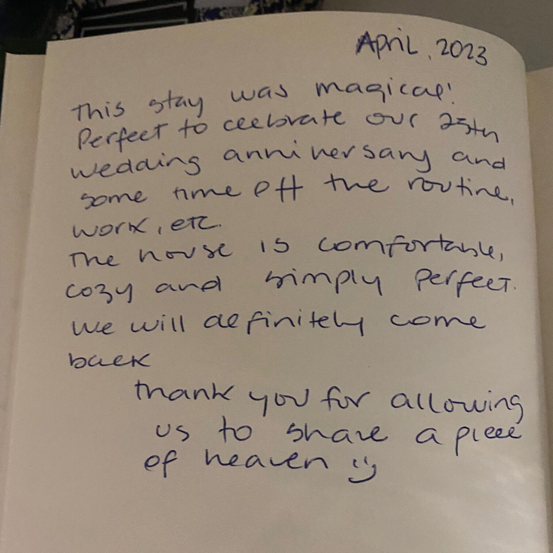 Thank you for allowing us to share a piece of heaven