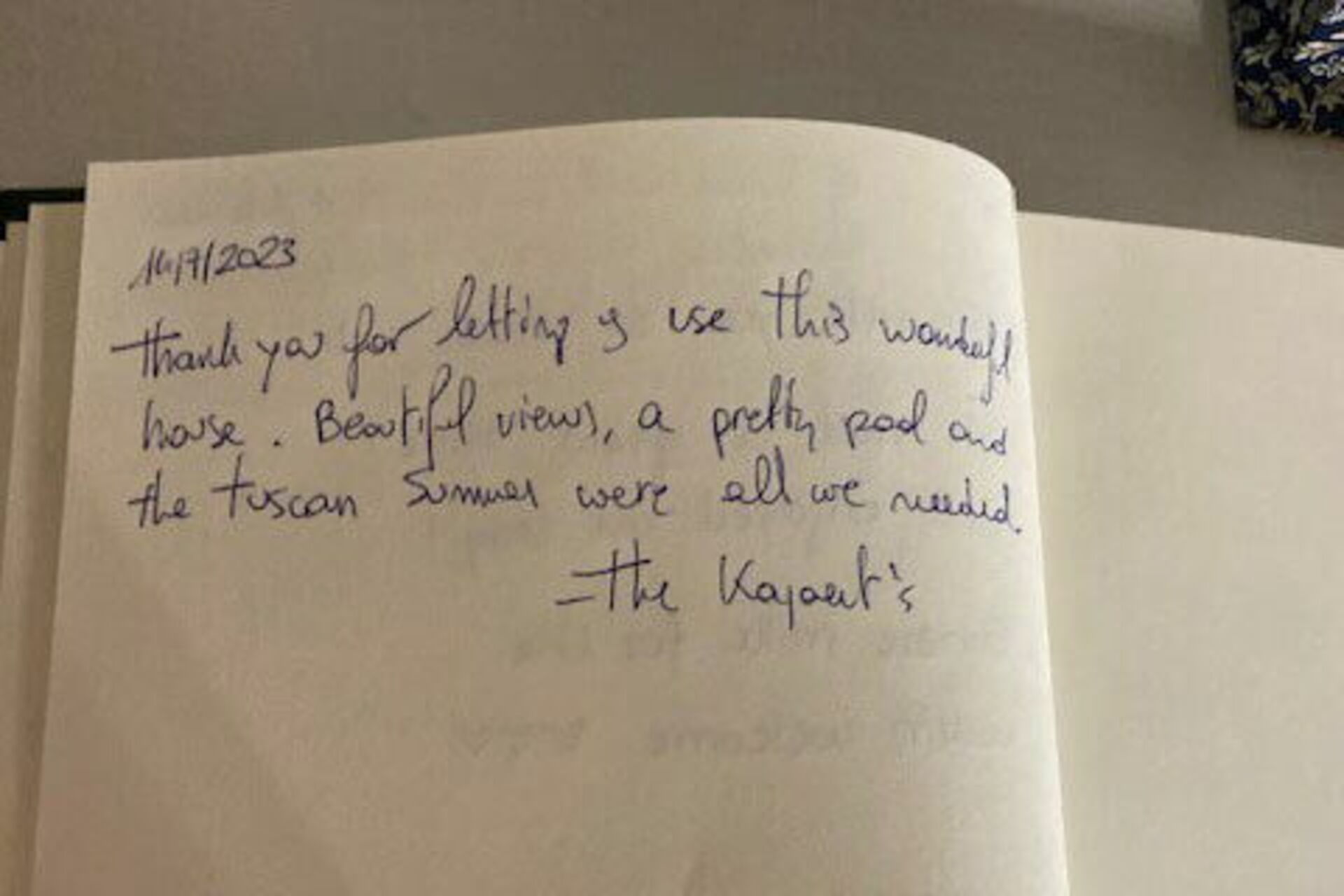 Merci à nos hôtes de tres bons Souvenure de Toscane en Famille.