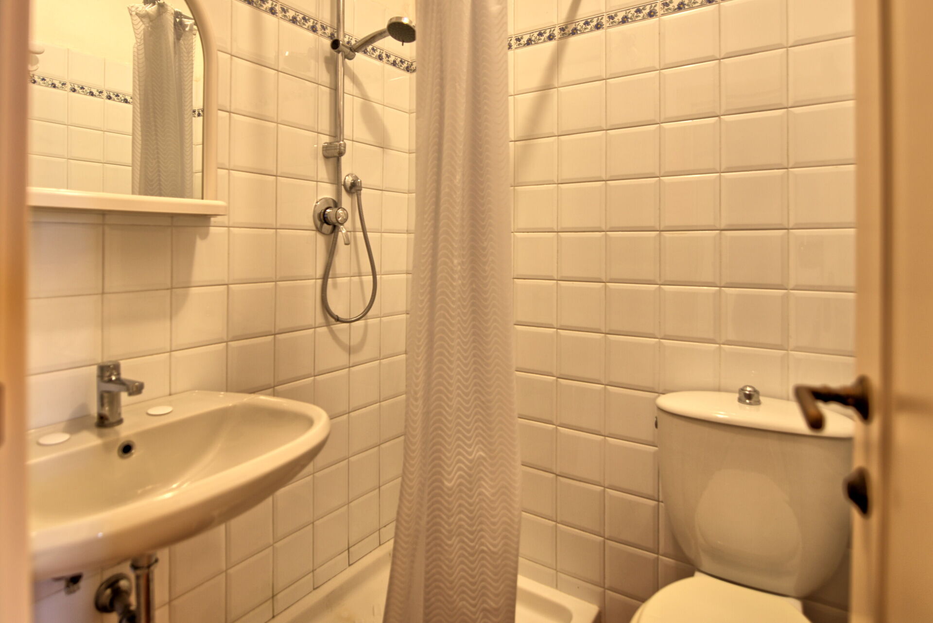 Ground floor: large living/dining room with open fireplace and TV, 3 double bedrooms, 1 twin bedroom, 3 bathrooms with shower, 2 small kitchens with ovens (one kitchen has a washing machine and a dishwasher).