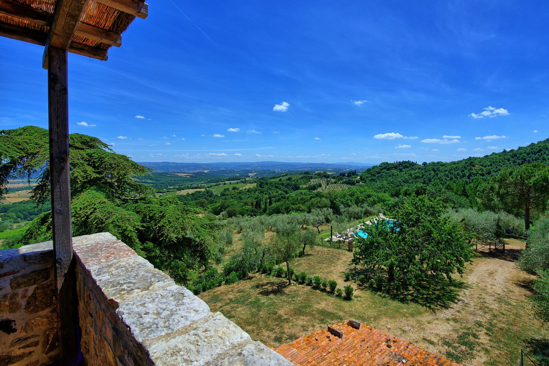 This is an awesome holiday house! It was perfect for the 6 of us. Good location with all the beautiful little medieval towns within 1 hr drive. Beautiful location, the environment was super nice, amazing view from the terrace, great pool to relax, cosy spacious apartment with everything you need. Olivia, the owner, was super friendly and incredibly helpful. We loved the little attentions (pasta, water, wine, passata, biscuits,...) when we arrived completely exhausted from the long drive. We will definitely come back !