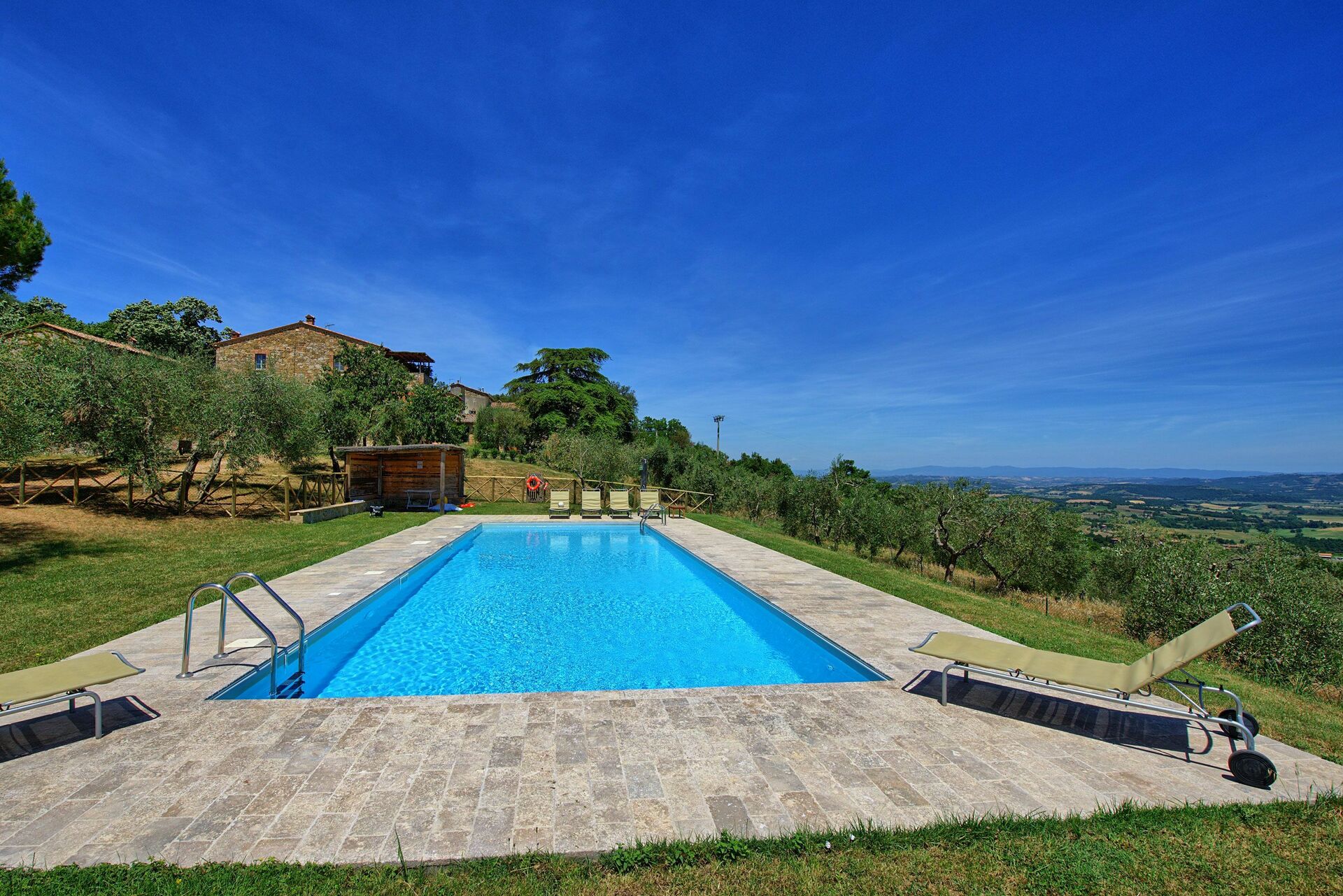 Wir hatten Mitte Mai eine traumhafte Woche in der CASA OLIVIA. Wir wurden herzlich von einer tollen Gastgeberin empfangen, die uns immer mit guten Tipps und Ratschlägen zur Seite stand. Die großzügige Wohnung befindet sich im ersten Stock eines riesigen Steinhauses und ist absolut geschmackvoll und hochwertig eingerichtet. Große bequeme Betten, moderne Bäder, eine riesige perfekt ausgestattete Küche und ein riesiges Wohn- und Esszimmer mit kamin. Man kann aber auch ganz gemütlich in der Küche sitzen und essen. Wir haben mehrmals ein Feuer in dem gut funktionierenden Kamin gemacht und dafür immer reichlich trockenes Holz auf dem großen Grundstück gefunden. Sonst hätte es aber auch Holzvorräte direkt vor dem Haus gegeben. Das Haus ist in einem top Zustand, war super sauber und wurde während unseres Aufenthalts noch zweimal geputzt. Der Pool ist ebenfalls groß und traumhaft gelegen und ist natürlich noch ein zusätzliches Highlight des Hauses. Obwohl die Vermieterfamilie mit auf dem Grundstück lebt waren wir sowohl im Haus als auch am Pool die ganze Zeit über völlig ungestört. Der nächste kleine Supermarkt ist in Piazze nur 3km entfernt und ein größerer in Fabro in 11km Entfernung. Fazit: Traumhaus, mit tollem Pool und hervorragender Ausstattung in großartiger Umgebung. Das alles noch gepaart mit tollen Gastgebern und vielen tollen Ausflugszielen in der Nahe Umgebung. Und fällt nichts ein, was hier noch besser sein könnte. Wir kommen gerne wieder!