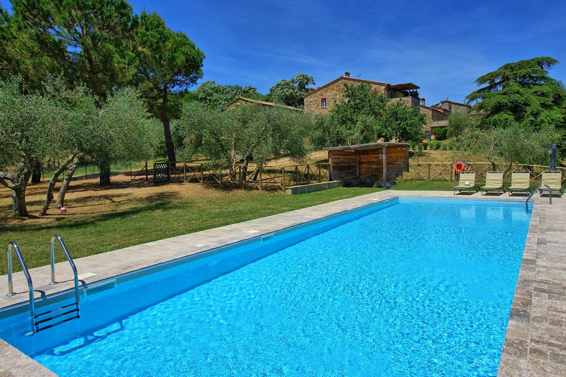 Distances: Le Piazza avec magasins alimentaires, bar, restaurants, poste à 4km, San Casciano dei Bagni avec magasins variés et établissement thermal à 12km, Città della Pieve à 13km, Chiusi avec gare ferroviaire à 17km, Montepulciano à 40km, Pienza à 50km, Orvieto à 50km, Cortona à 60km, Montalcino (capitale du fameux vin ”Brunello”) à 70km, Sienne à 100km.