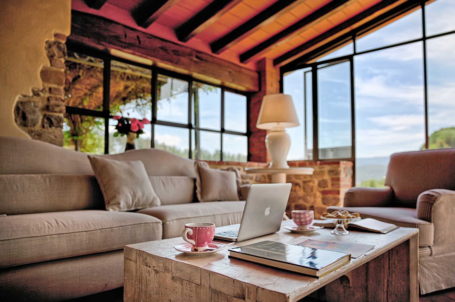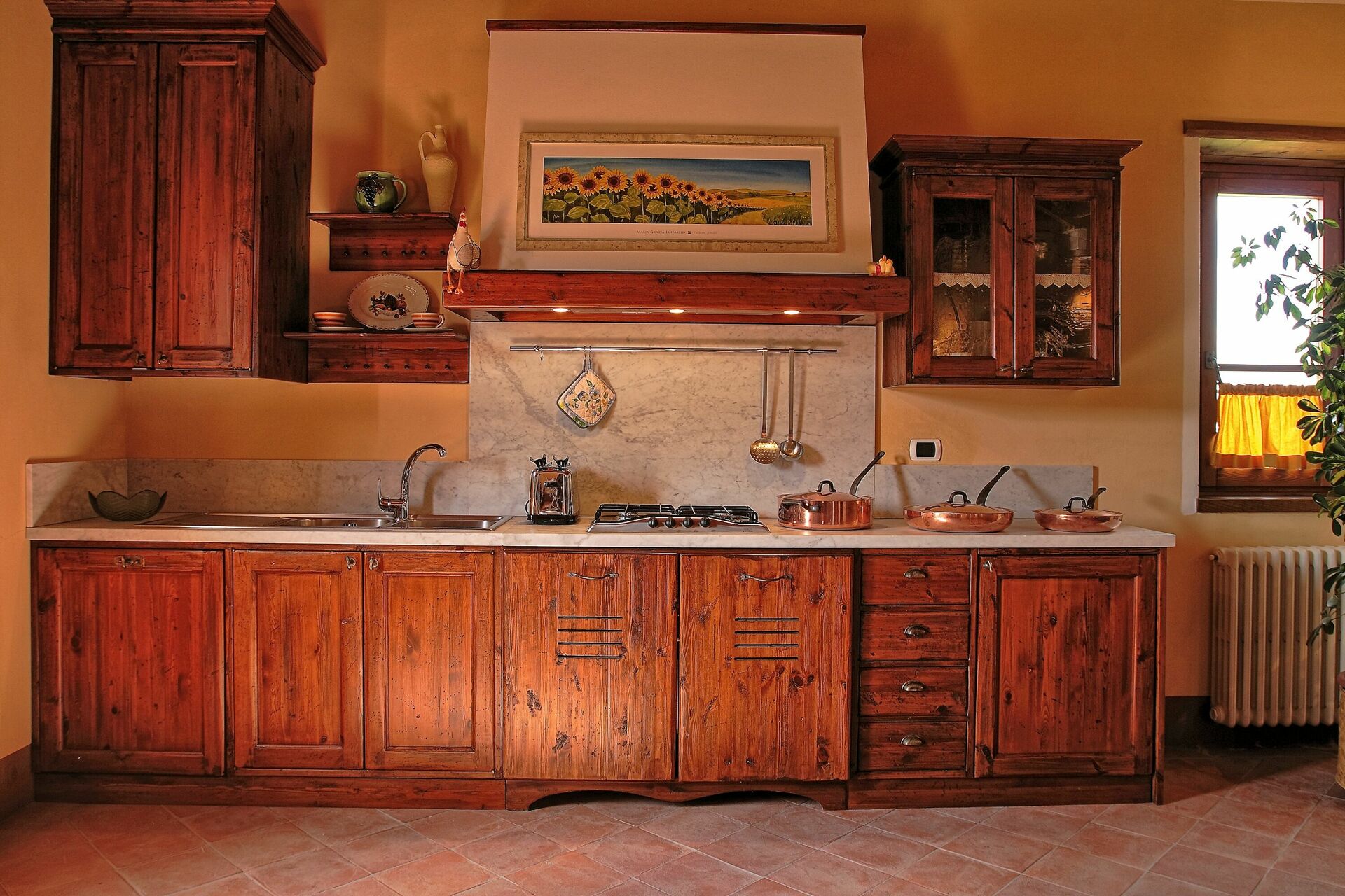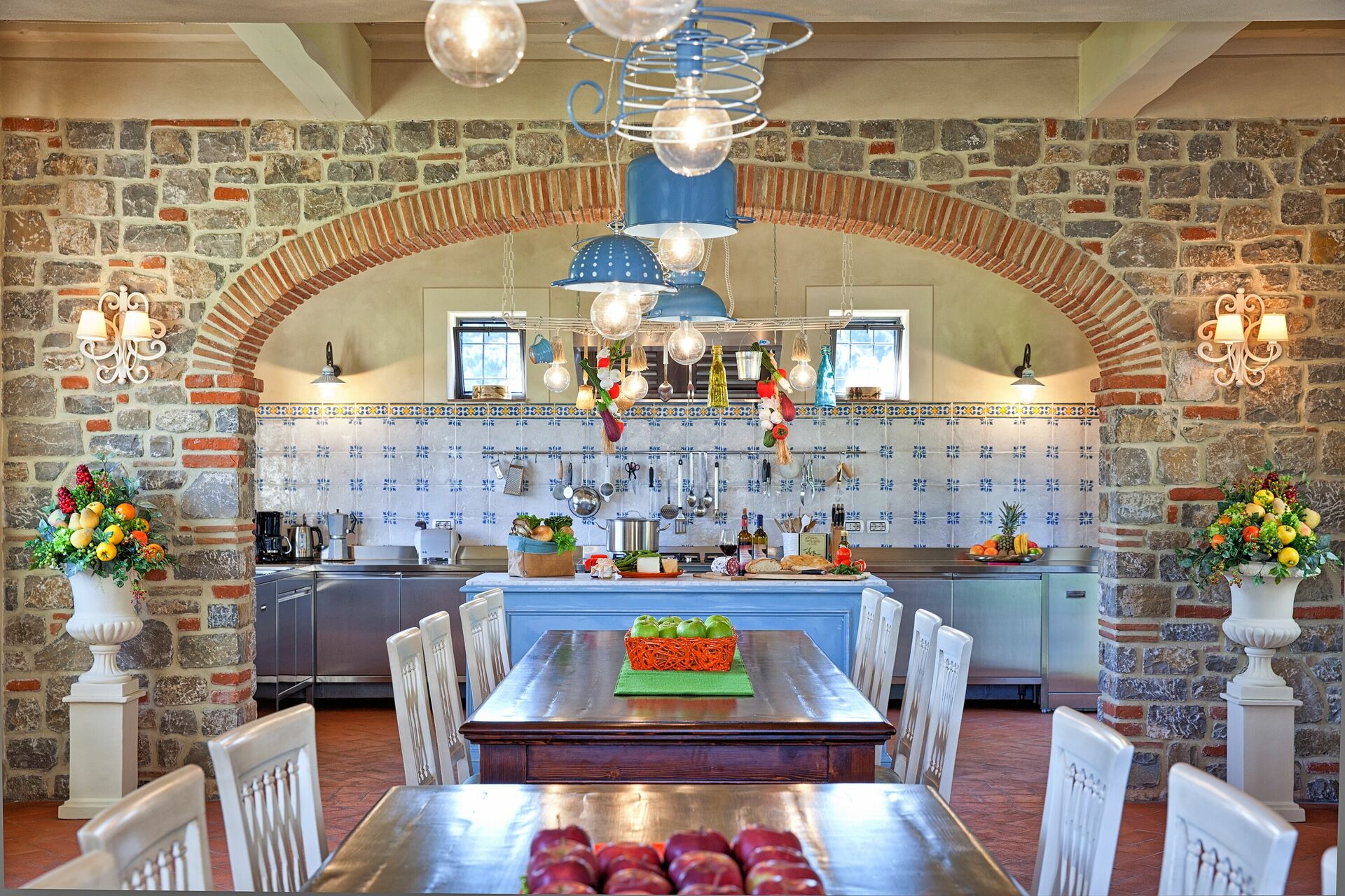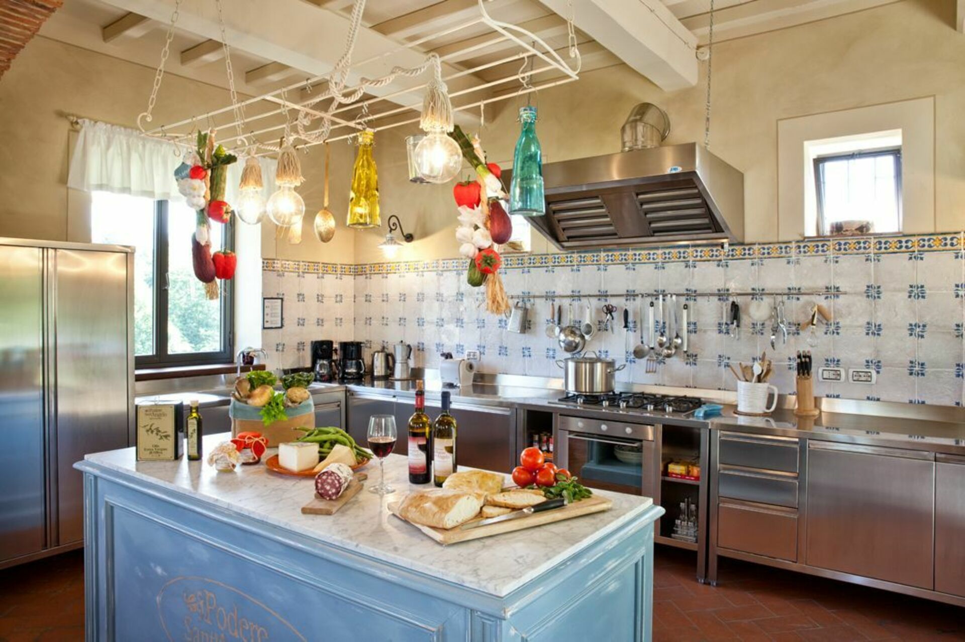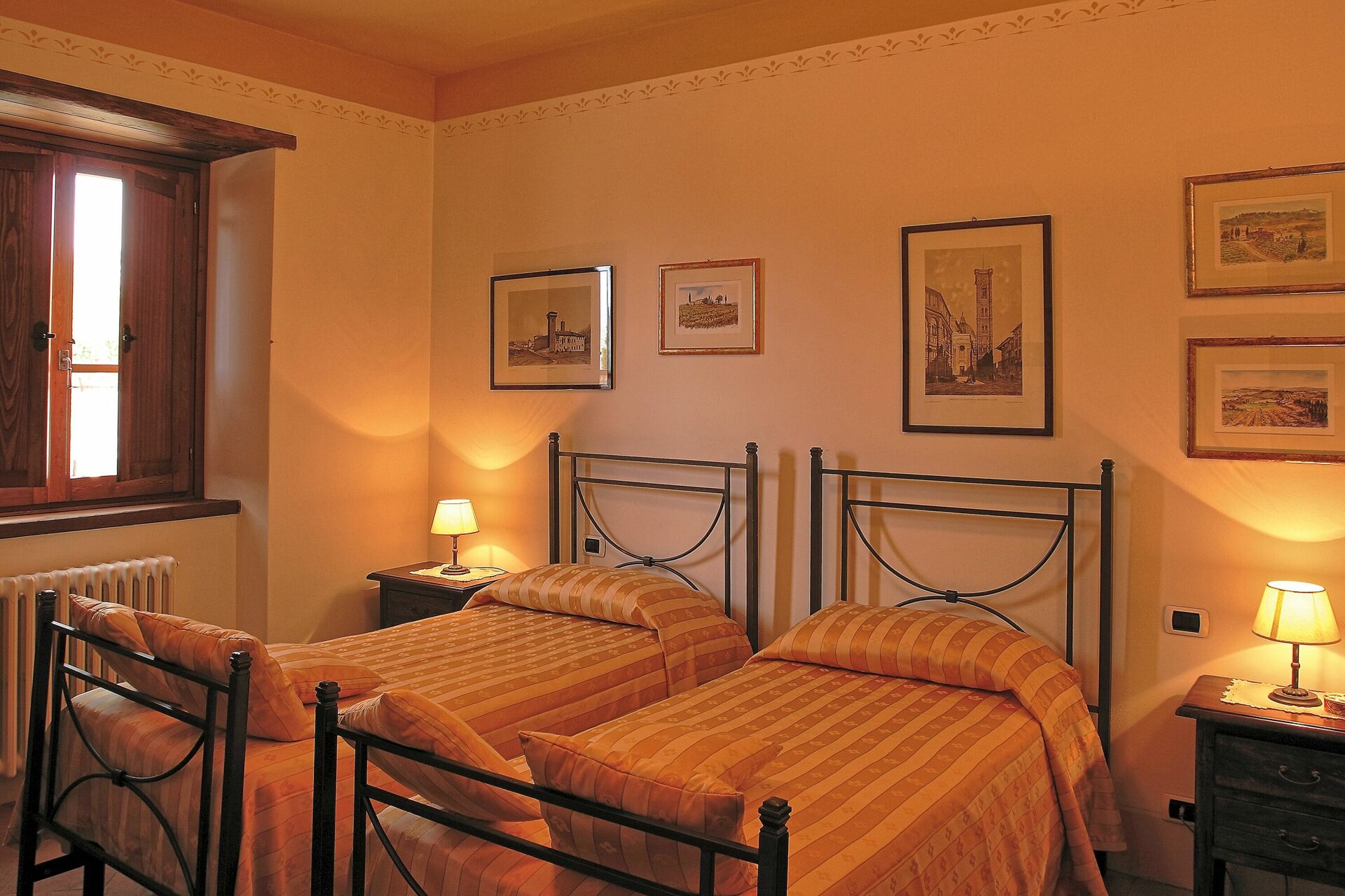 Récemment rénovée, elle a conservé son charme d'origine grâce à ses finitions soignées, comme les anciennes poutres en bois, les sols en terre cuite et les cheminées en pierre dans les salons, le choix des couleurs et les pièces vastes et lumineuses. Le mobilier, choisi avec soin, est tout à fait fonctionnel et confortable, mais il se distingue par le raffinement des compléments et la chaleur apportée par les meubles typiquement toscans, comme il convient à toute maison toscane classique.