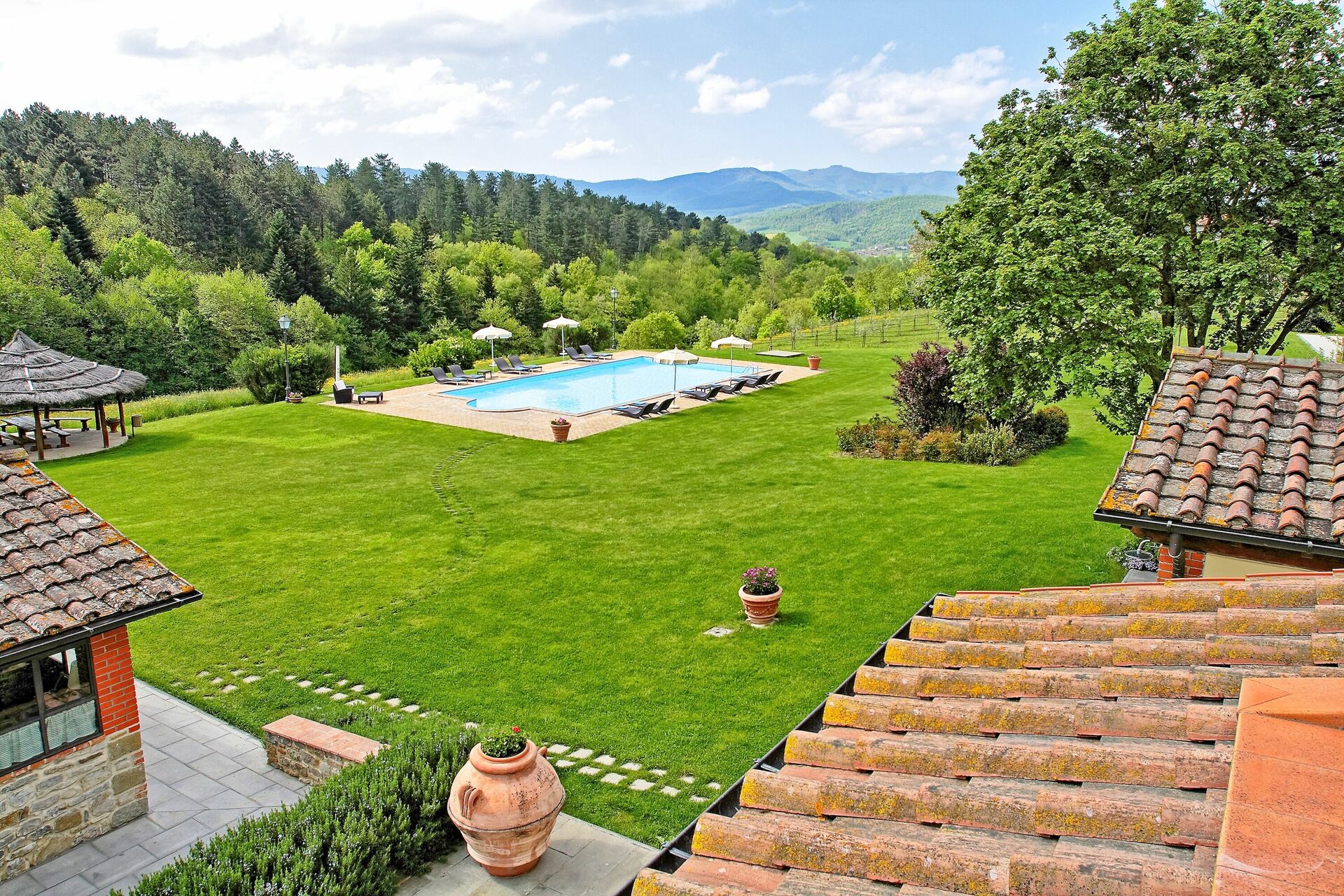 Communication with the hosts regarding this Villa was excellent from the beginning. The Villa itself was fantastic, offering lots of space, walks, tennis court, fishing lake. The hosts were on site briefly every morning to maintain the pool and the vast surrounding area. They were always friendly and helpful but never intrusive. If we had questions or needed anything then they responded very quickly. We were a group of 14 family/friends and the Villa provided more than enough space for everyone. The wood fired pizza oven and barbecue were a brilliant addition and we used them on several occasions. The views from the Villa were breathtaking and it is a couple of minutes drive to a shop and nearby town of Poppi.