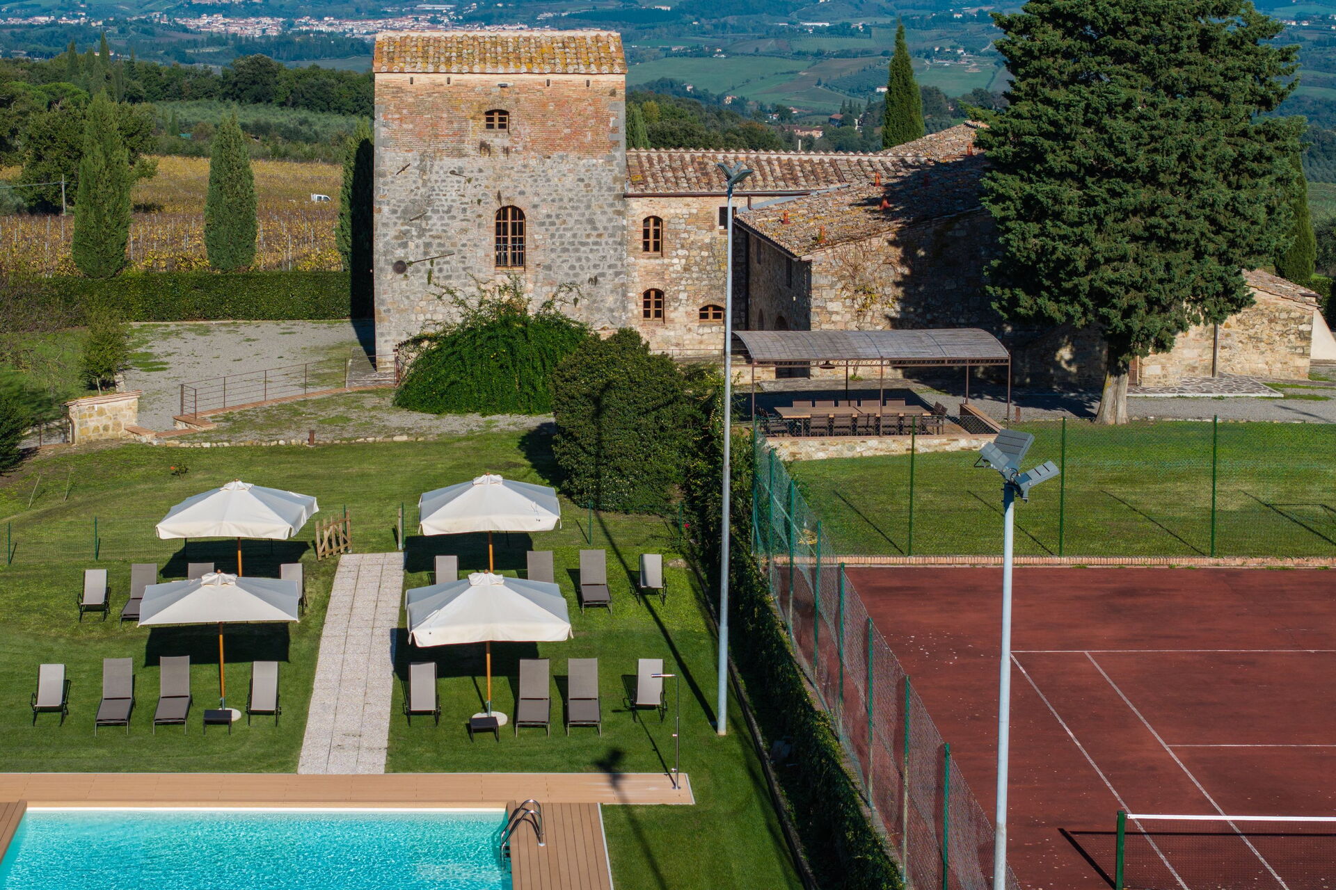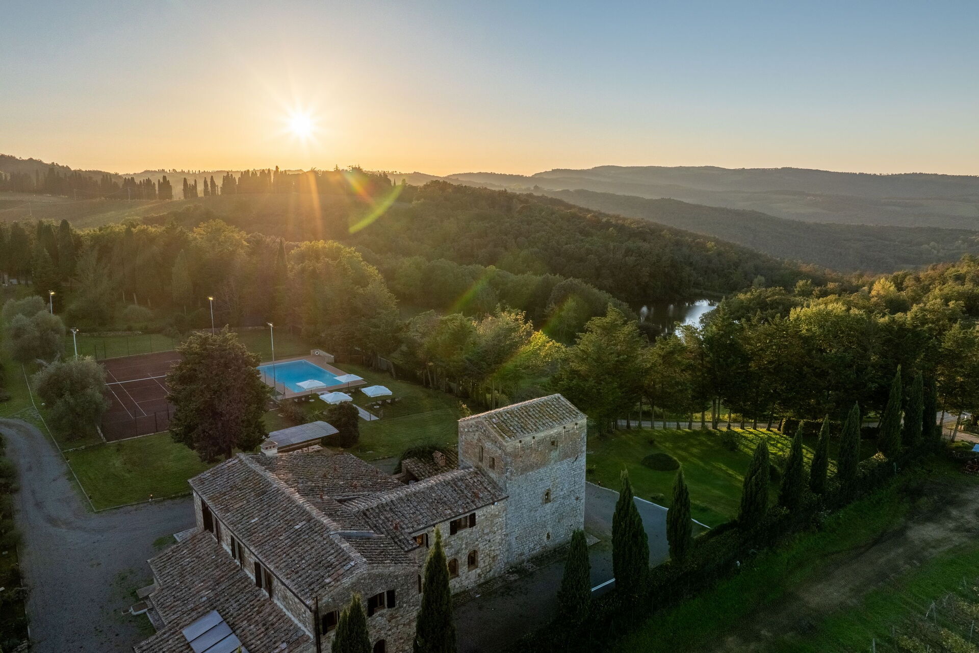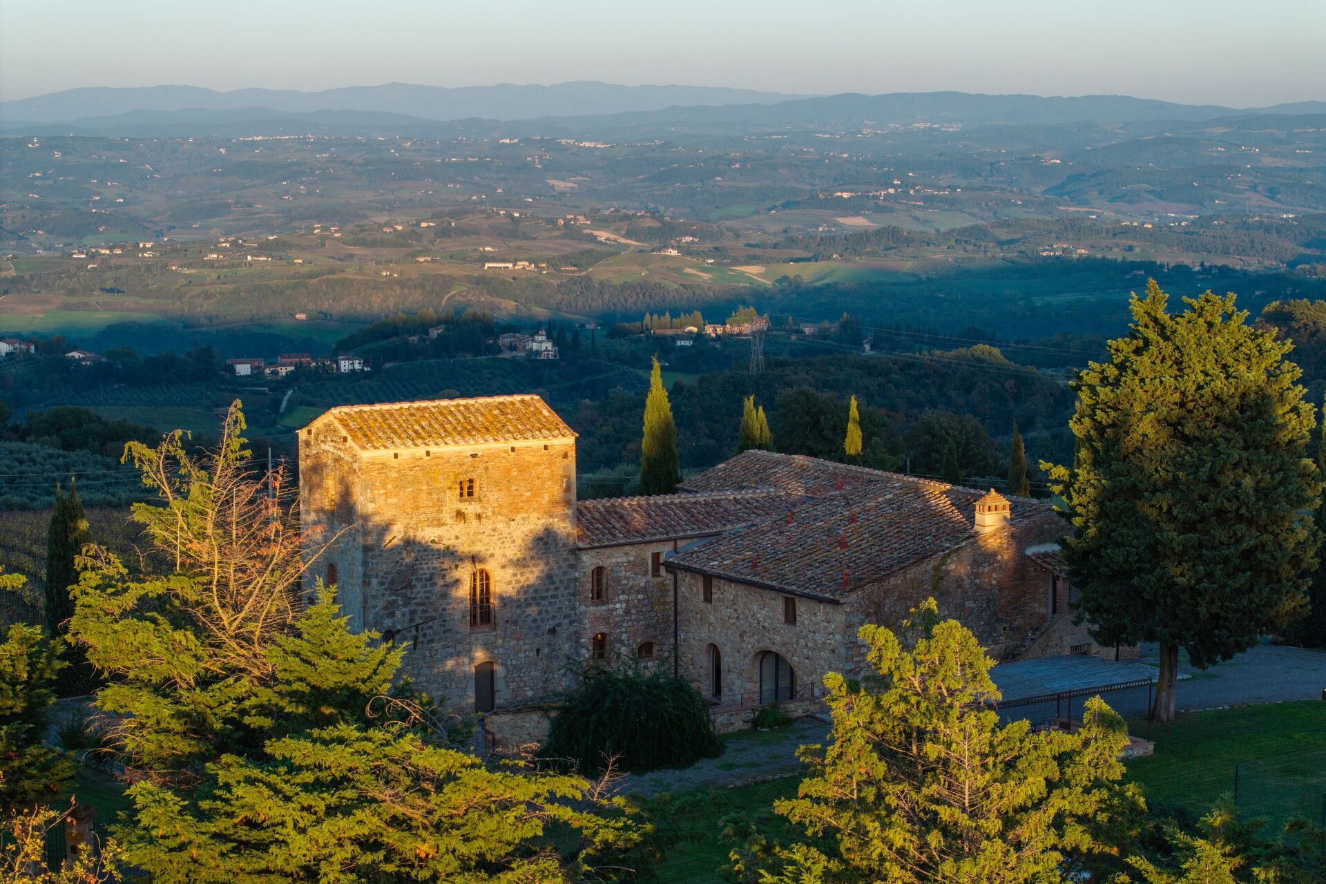 Villa Simone est une villa de luxe datant du XVe siècle, construite autour d'une tour de guet millénaire, située dans une position tranquille et très panoramique sur les collines du Chianti en Toscane, près de la ville médiévale de San Gimignano.